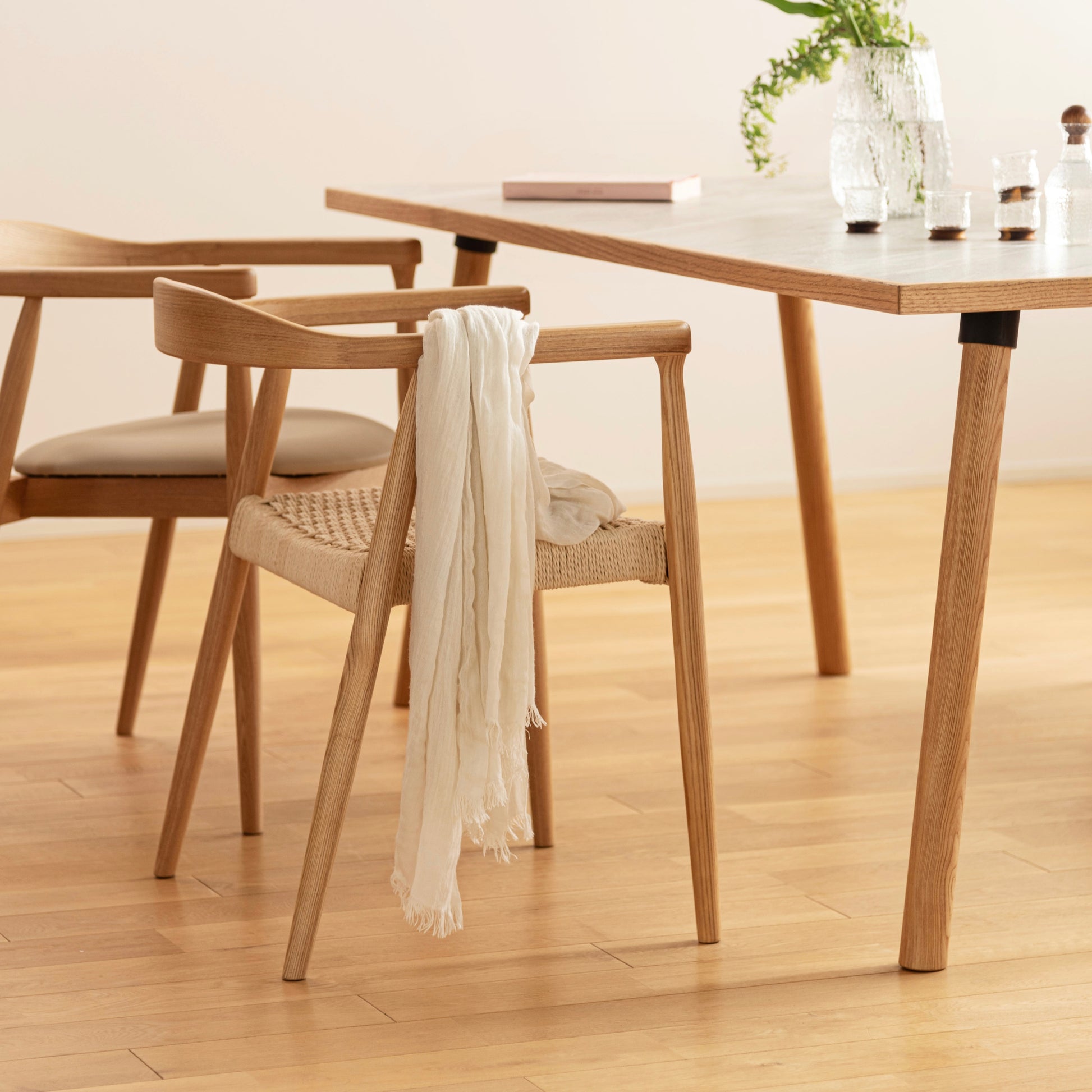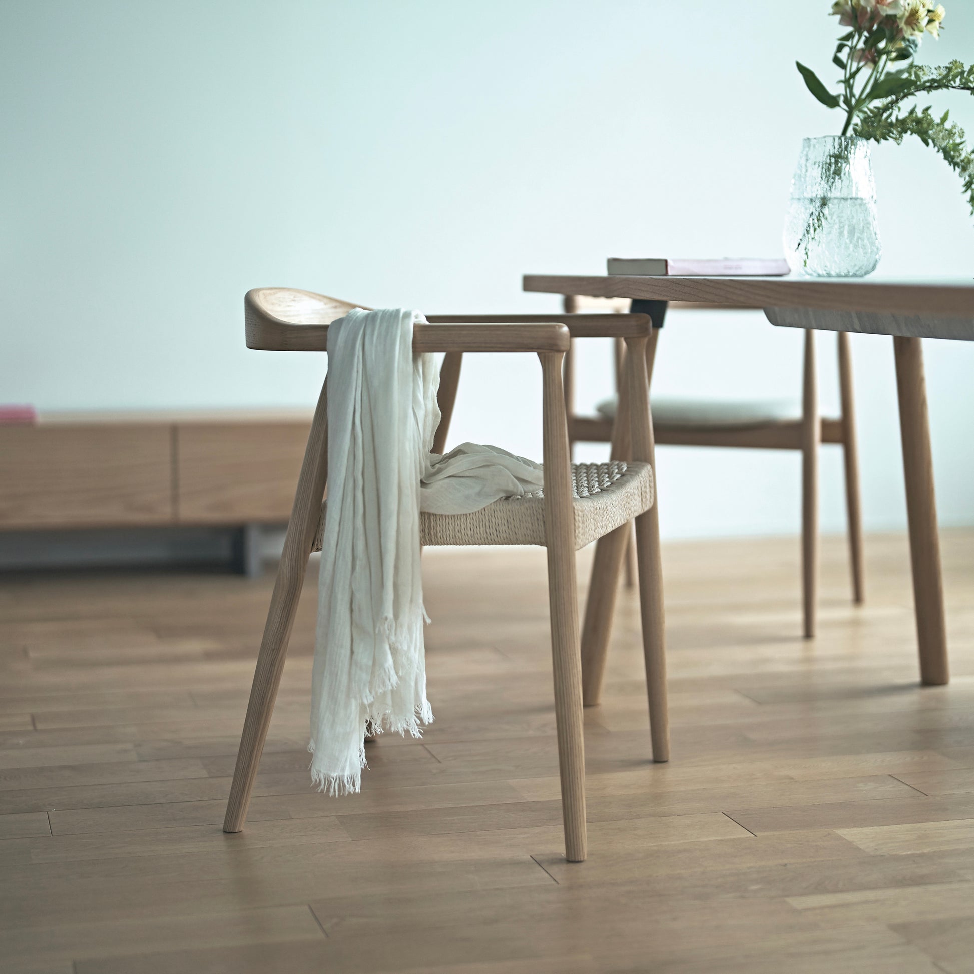 木フレームにペーパーコードの座面を合わせた、やさしい雰囲気のアームチェア。