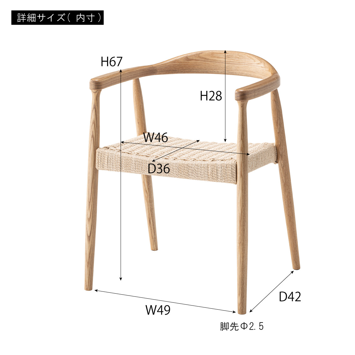 素材 天然木(アッシュ)ウレタン塗装、ペーパーコード