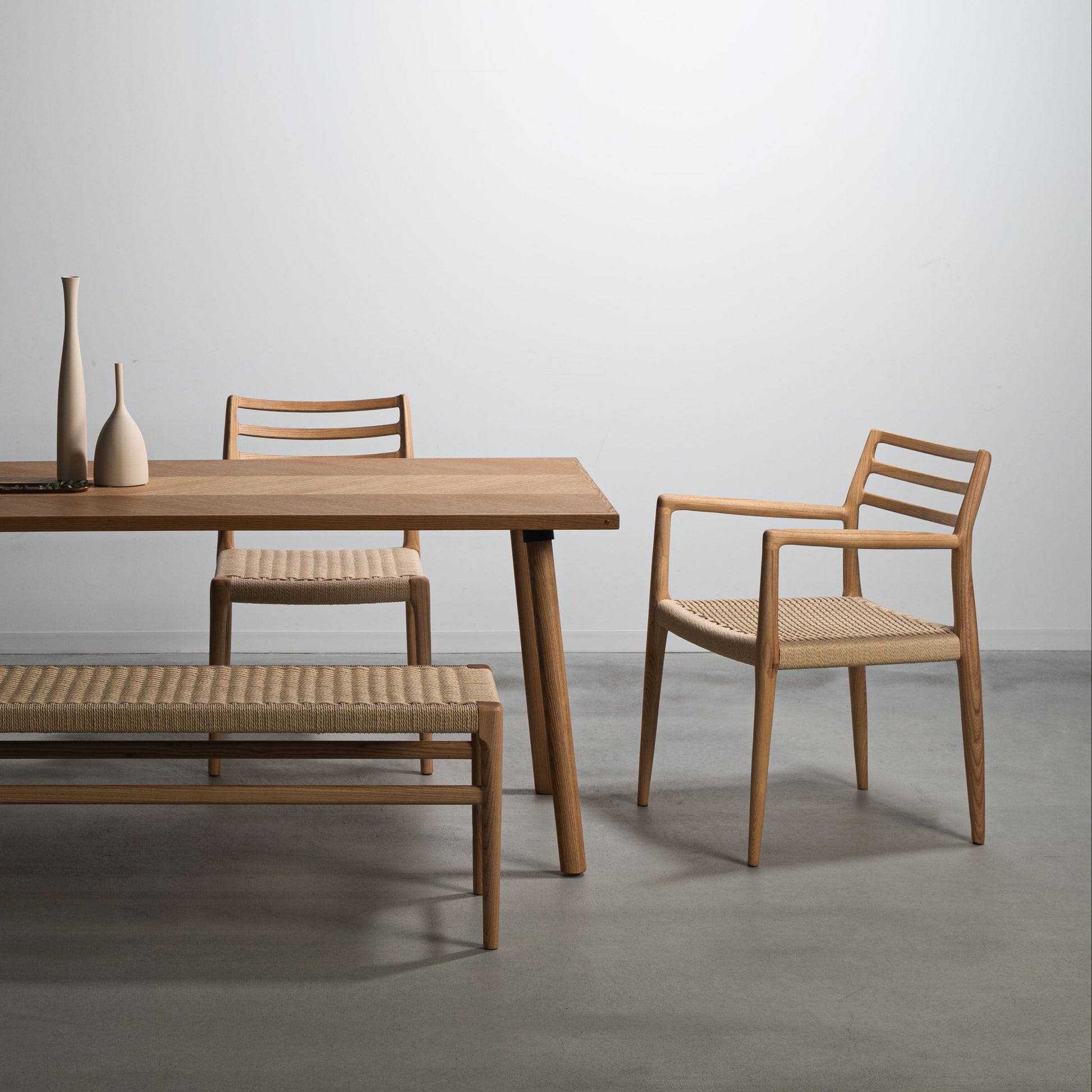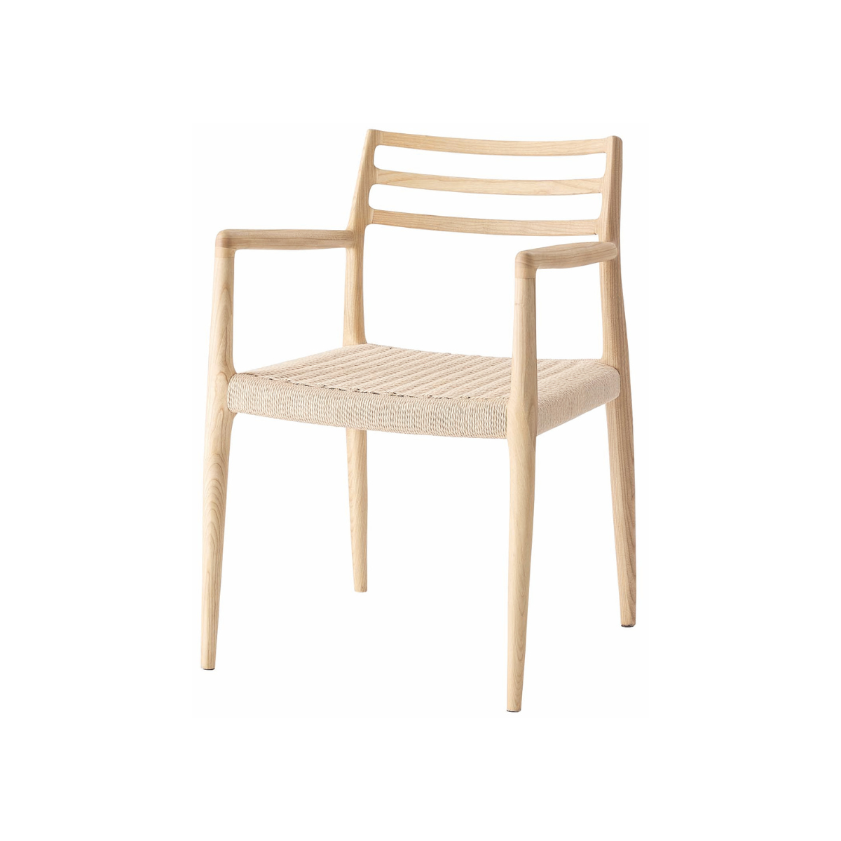 天然木(アッシュ)のフレームに、ペーパーコードの座面を組み合わせたアームチェア。