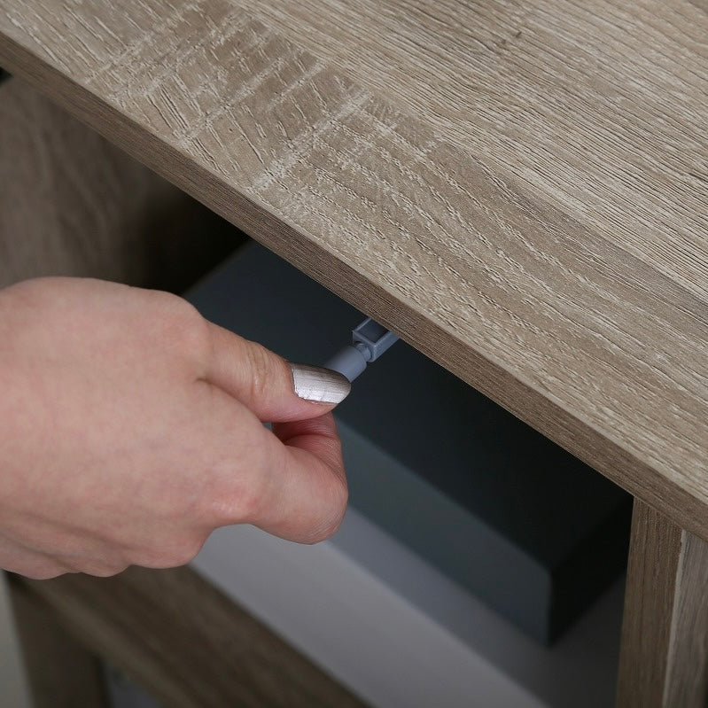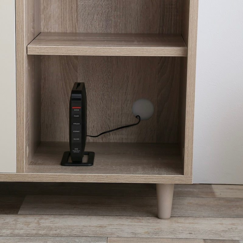 背面のコード穴を使えば、ルーターや小型家電を中に置いたまま配線でき天板には時計や雑貨を置いてスペースを有効に使えます。 表面はメラミン加工素材を使用しており、汚れが付きにくく日常のお手入れも簡単です。収納と配線のしやすさを考えた、実用的なキャビネットです。