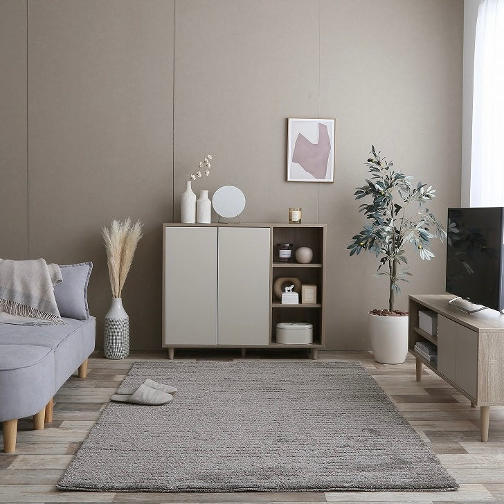 扉内には衣類や書類を収納でき、見せたくない物の整理に便利です。オープン棚には小物や日用品を並べたり、よく使う物の定位置として使えます。