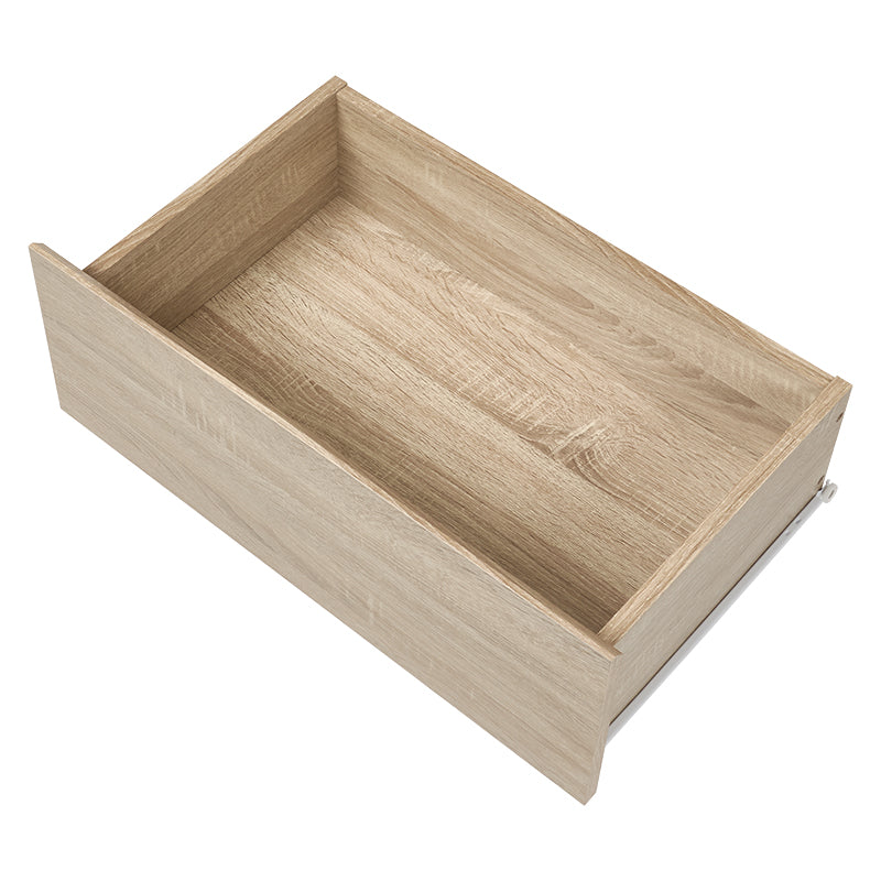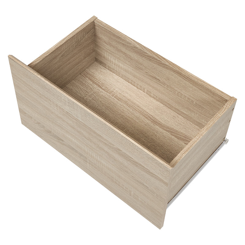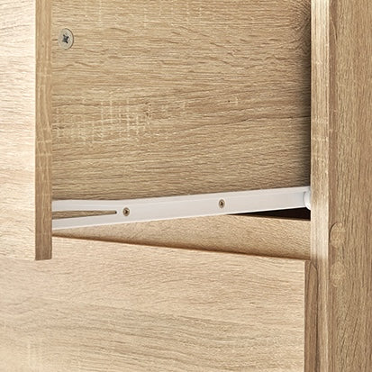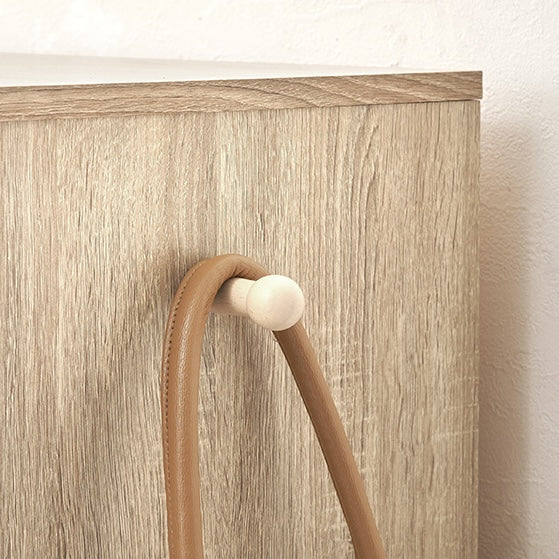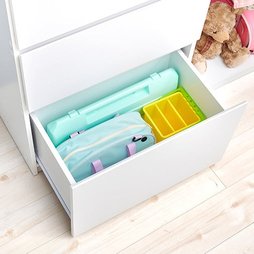 ハンガーポール付きのチェスト構造で、収納量をしっかり確保しています。引出しは大容量設計で、かさばりやすい衣類も収まります。カラーはナチュラル、ホワイト、ダークブラウンの3色展開で、部屋に合わせて選べます。