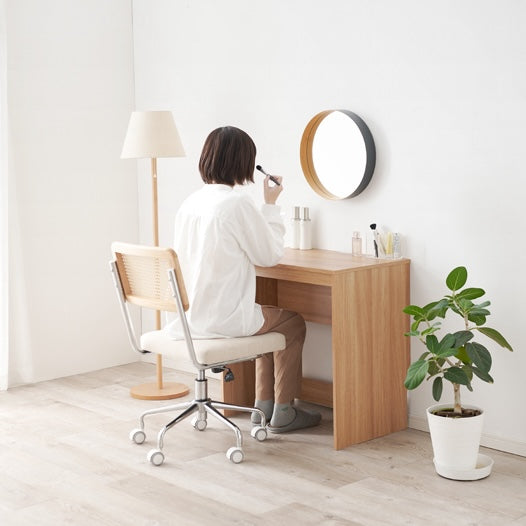 PC作業用のワークデスクとしてはもちろん、鏡を合わせてドレッサーにしたり、ミシンやクラフト作業用の台として使ったりと、使い方は自由。お子さまの学習机としても取り入れやすく、成長に合わせて長く使えます。