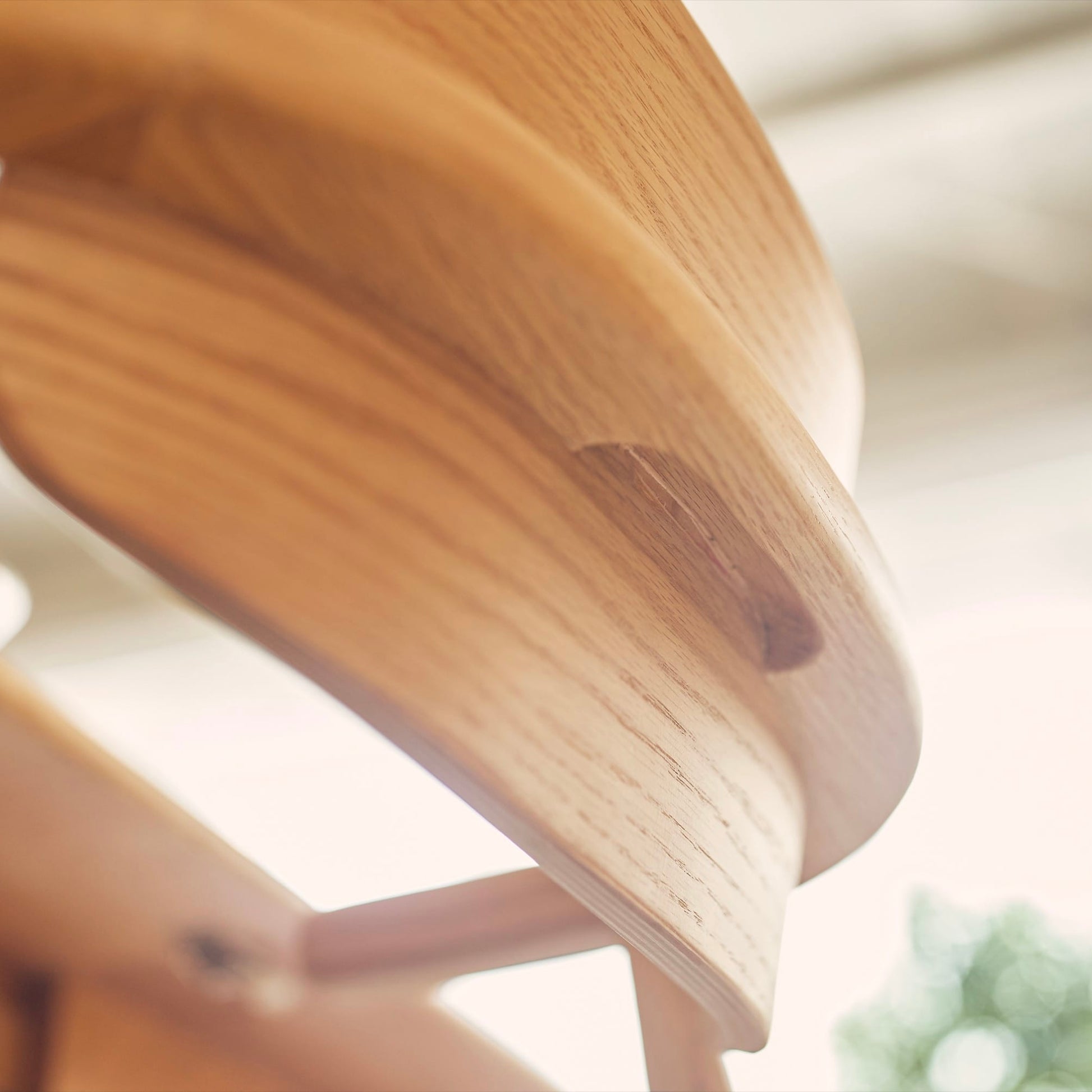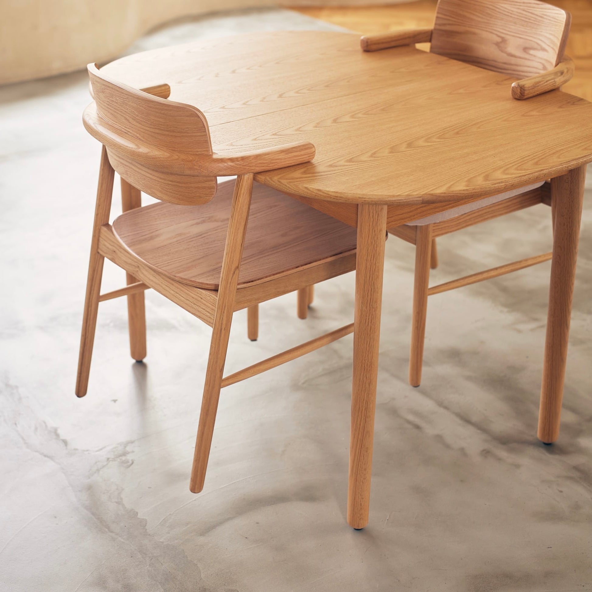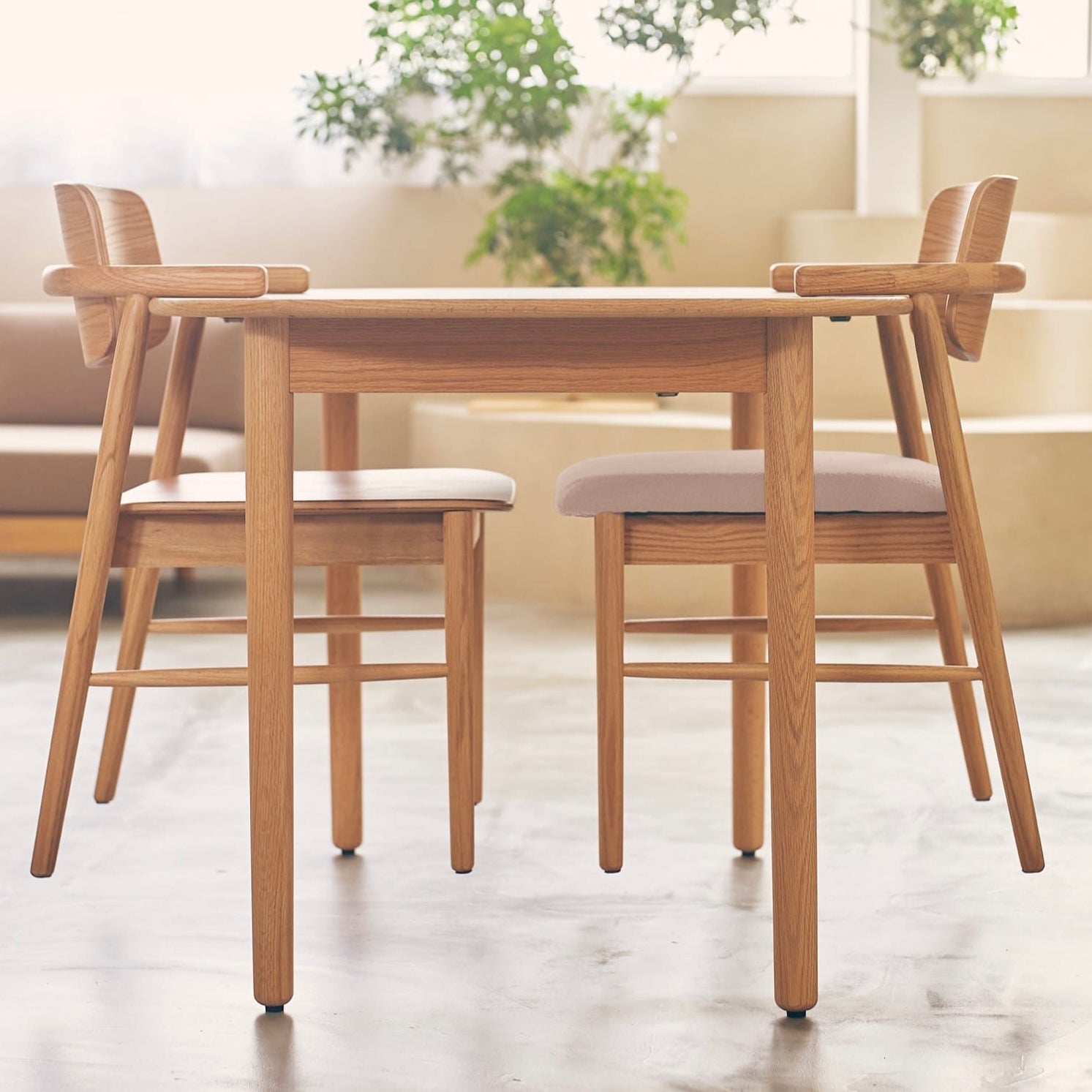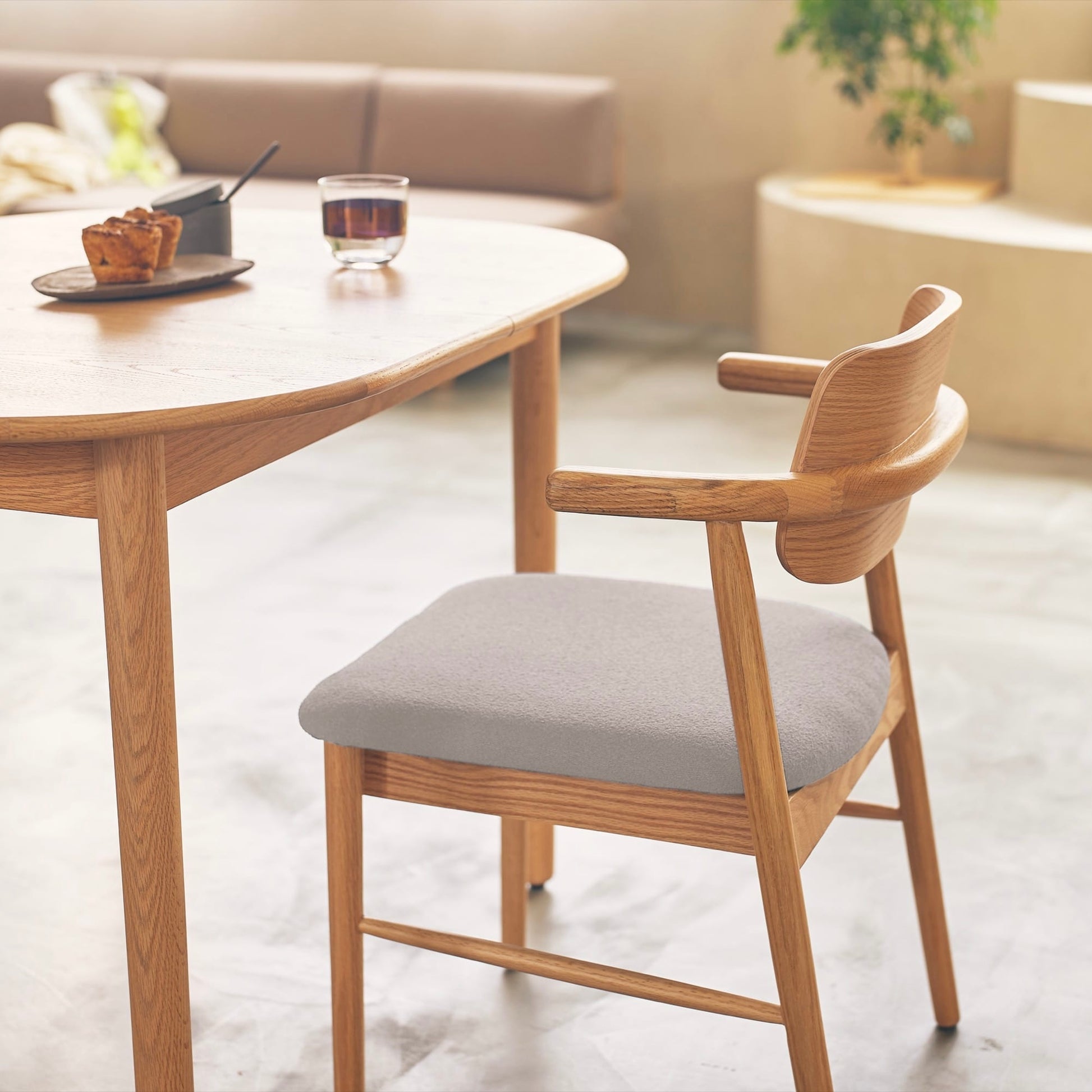 カラーは、木の風合いを楽しめるナチュラルに加え、やわらかな印象のサンドベージュ、落ち着いたグレーベージュの3色展開。見た目の心地よさと使いやすさを両立した、暮らしに寄り添うダイニングチェアです。