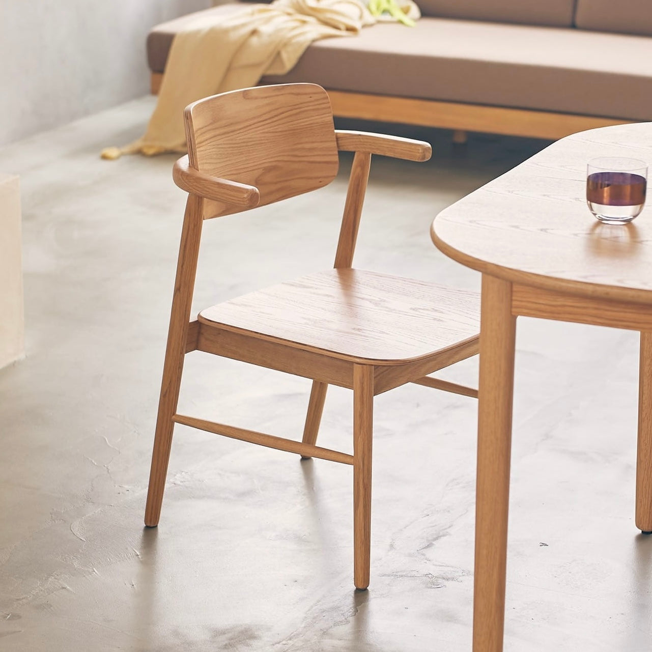 天然木のあたたかみと、すっきりとした佇まいが魅力のダイニングチェアです。木目の表情を活かしたナチュラルなデザインで、ダイニングはもちろん、リビングやキッチンにも自然と馴染みます。主張しすぎないのに、空間をやさしく引き締めてくれる一脚です。
