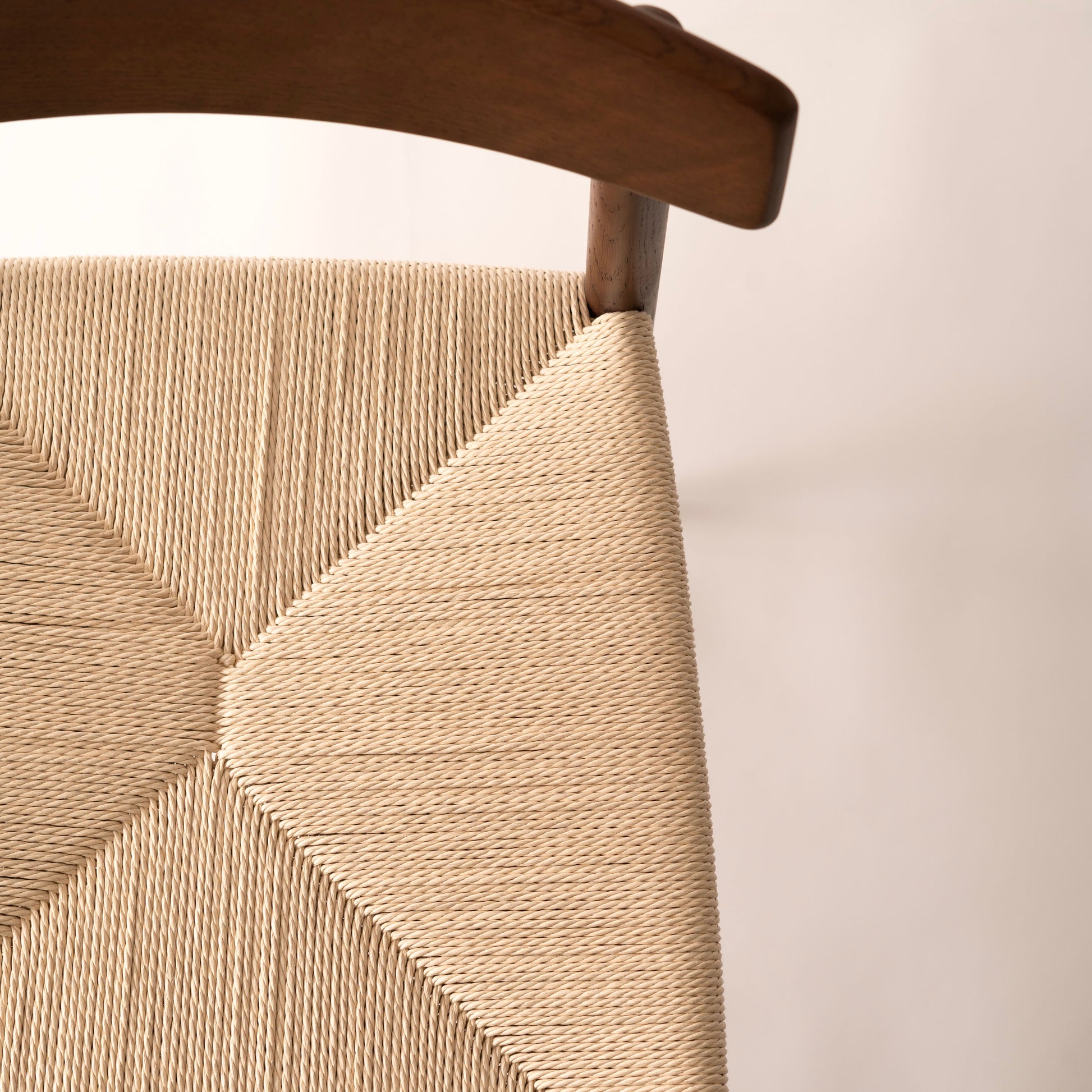 天然木のフレームに、ペーパーコードの座面を組み合わせたダイニングチェア。