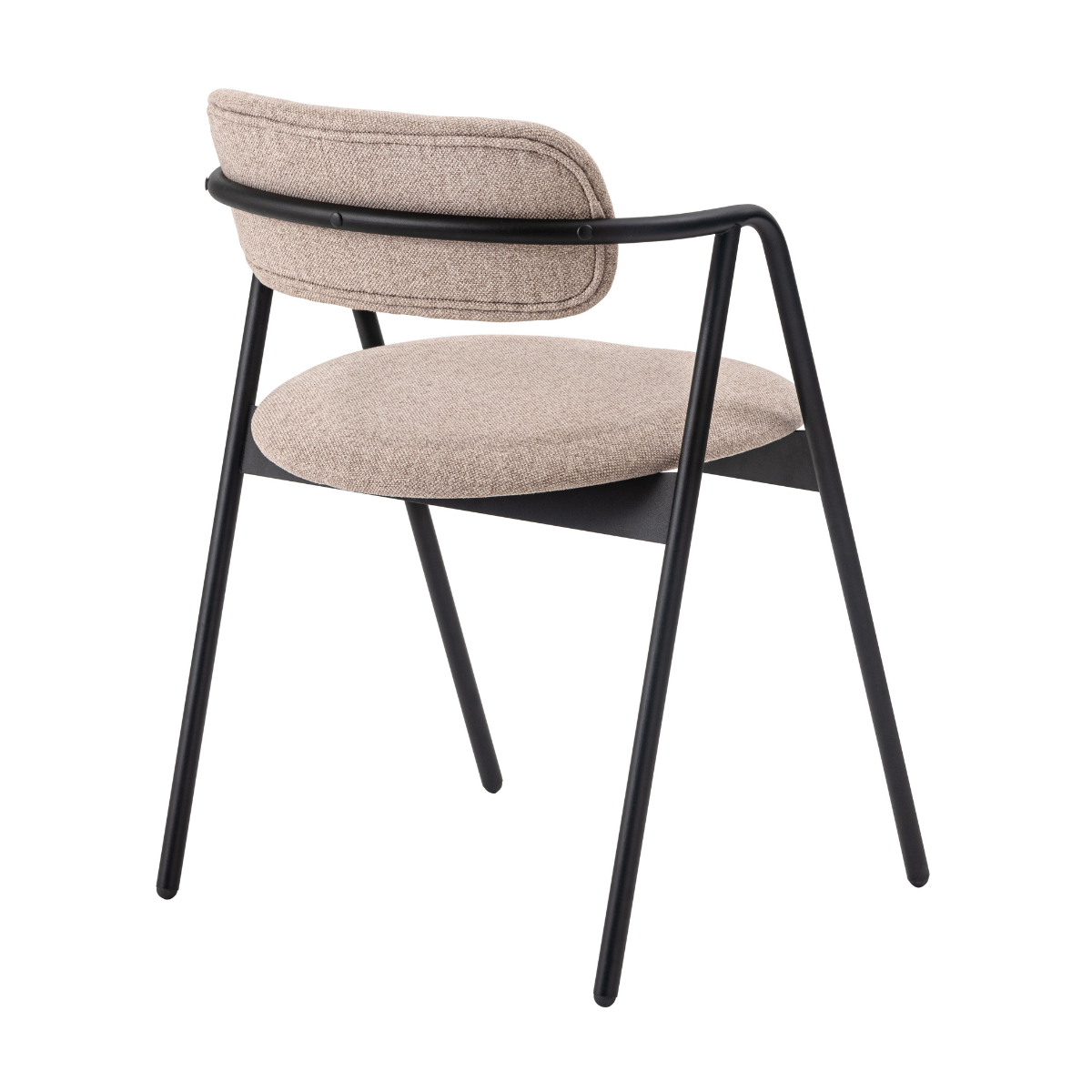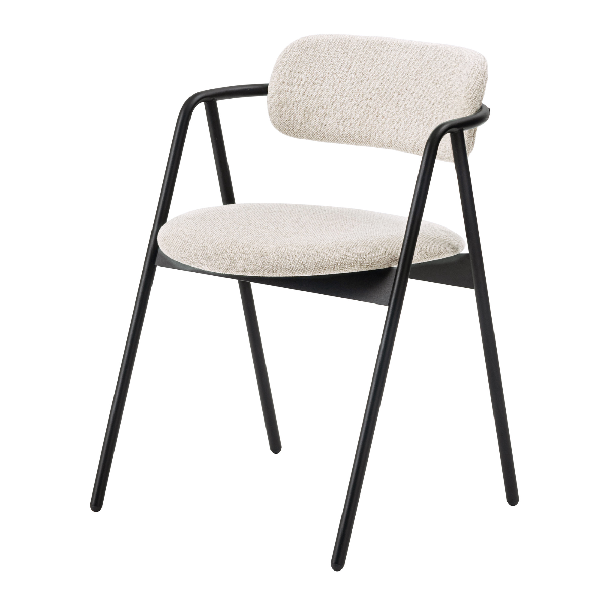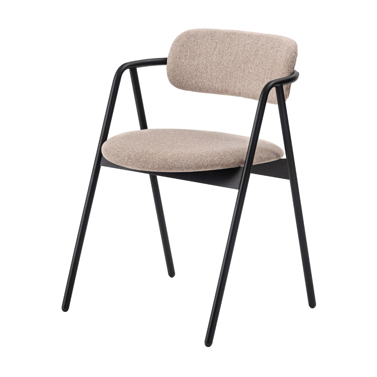 やわらかなファブリック座面と、すっきりとしたスチールフレームを組み合わせたダイニングチェア。
