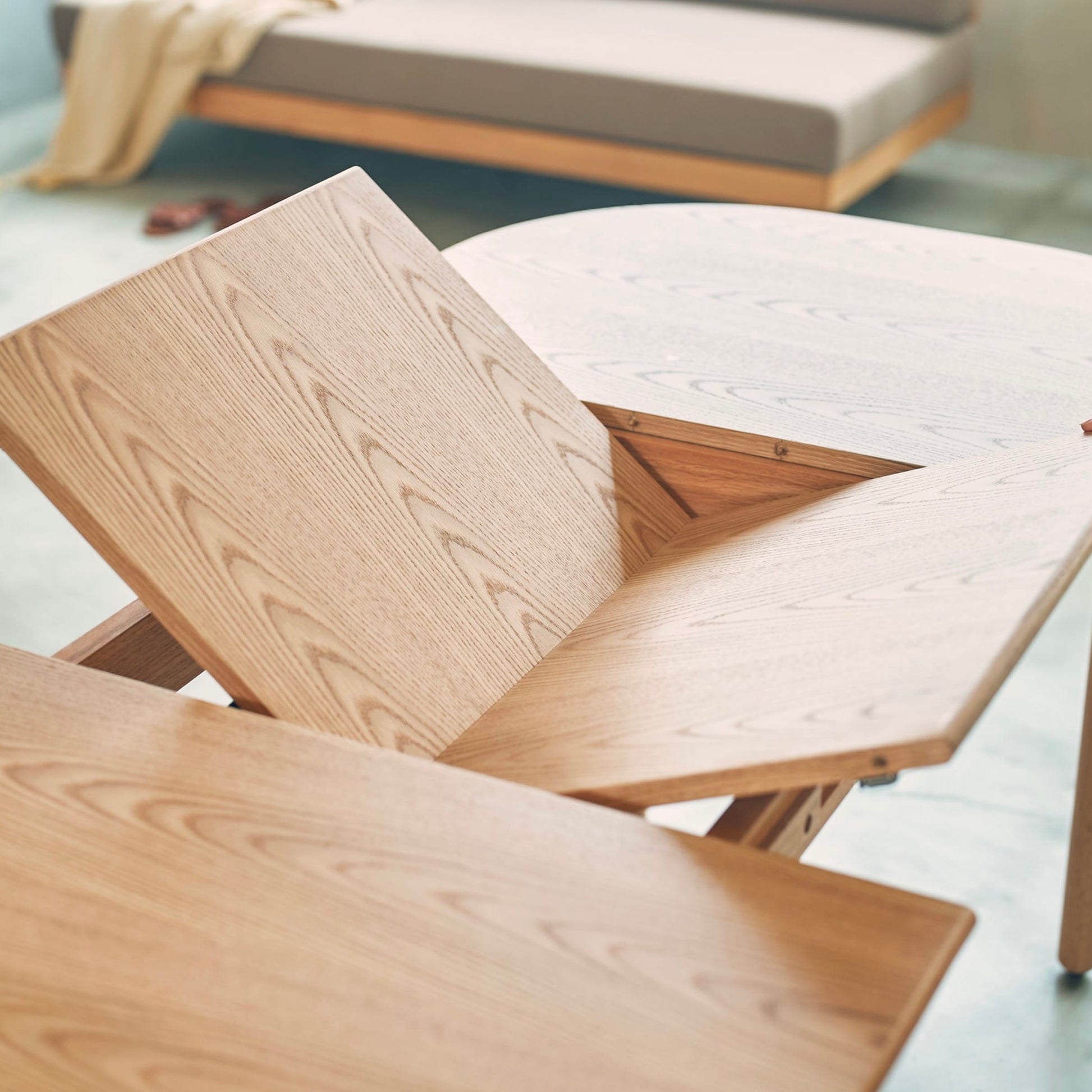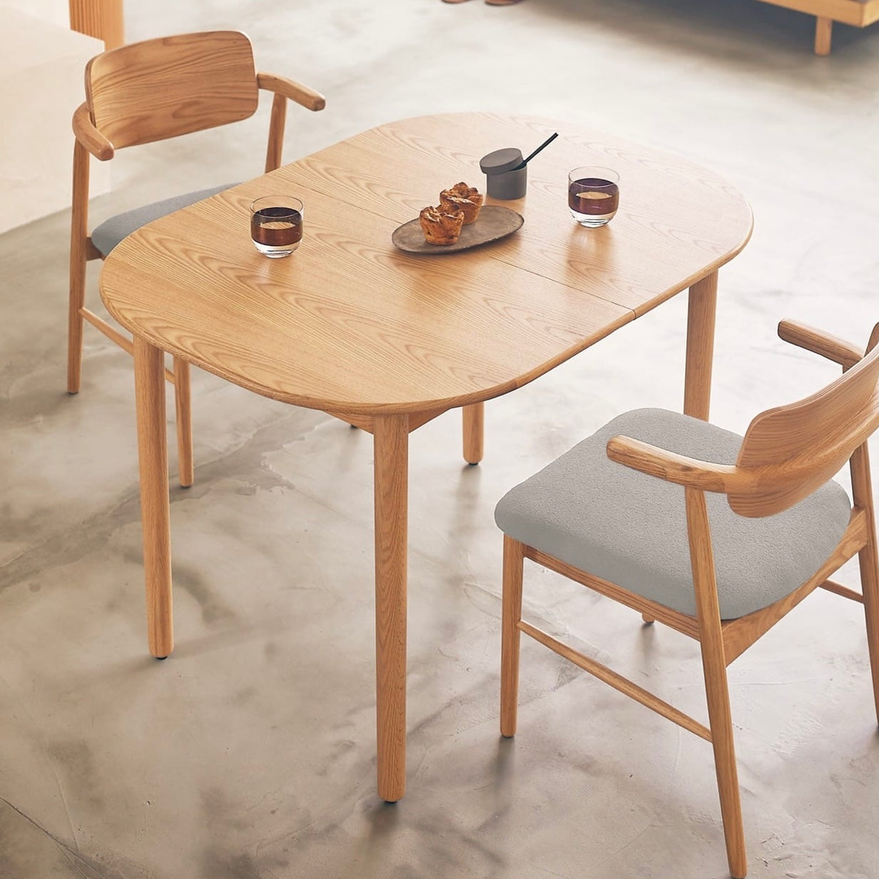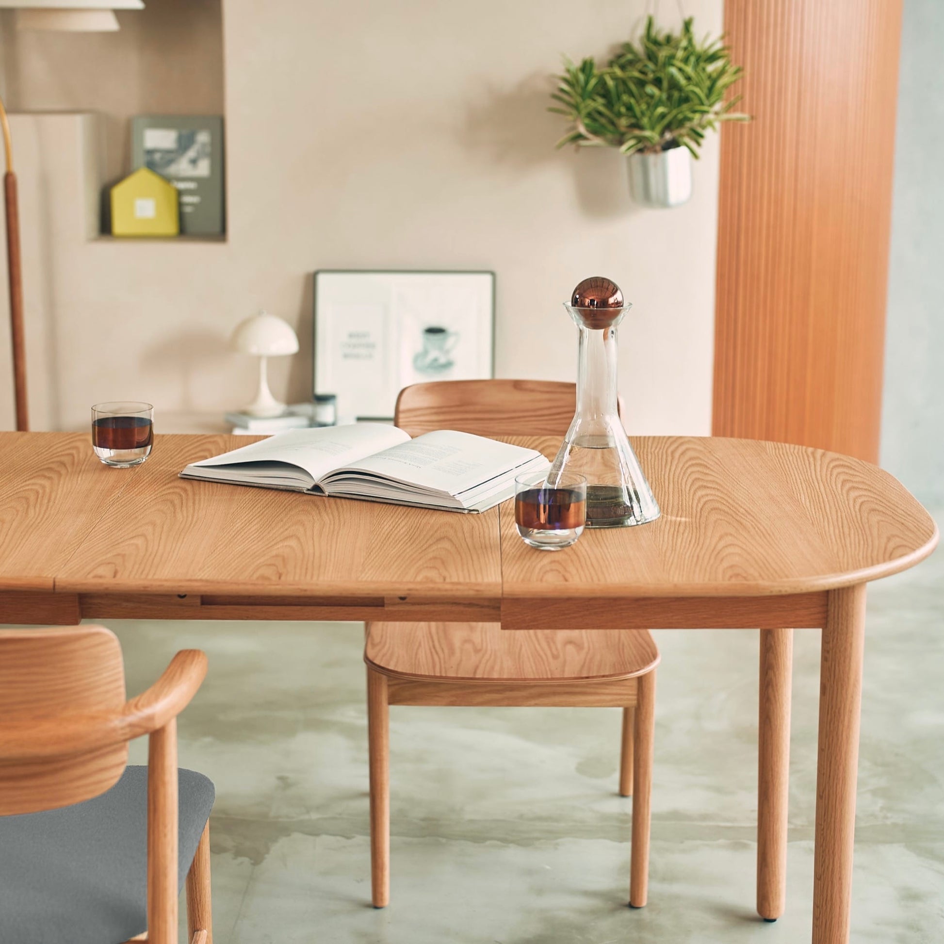 人数やシーンに合わせて形を変えられるので、「普段使い」と「おもてなし」のどちらもこれ一台でカバー。ダイニングとしてはもちろん、会話が弾む団らんの場や、作業スペースとしても活躍してくれる、暮らしに寄り添うテーブルです。