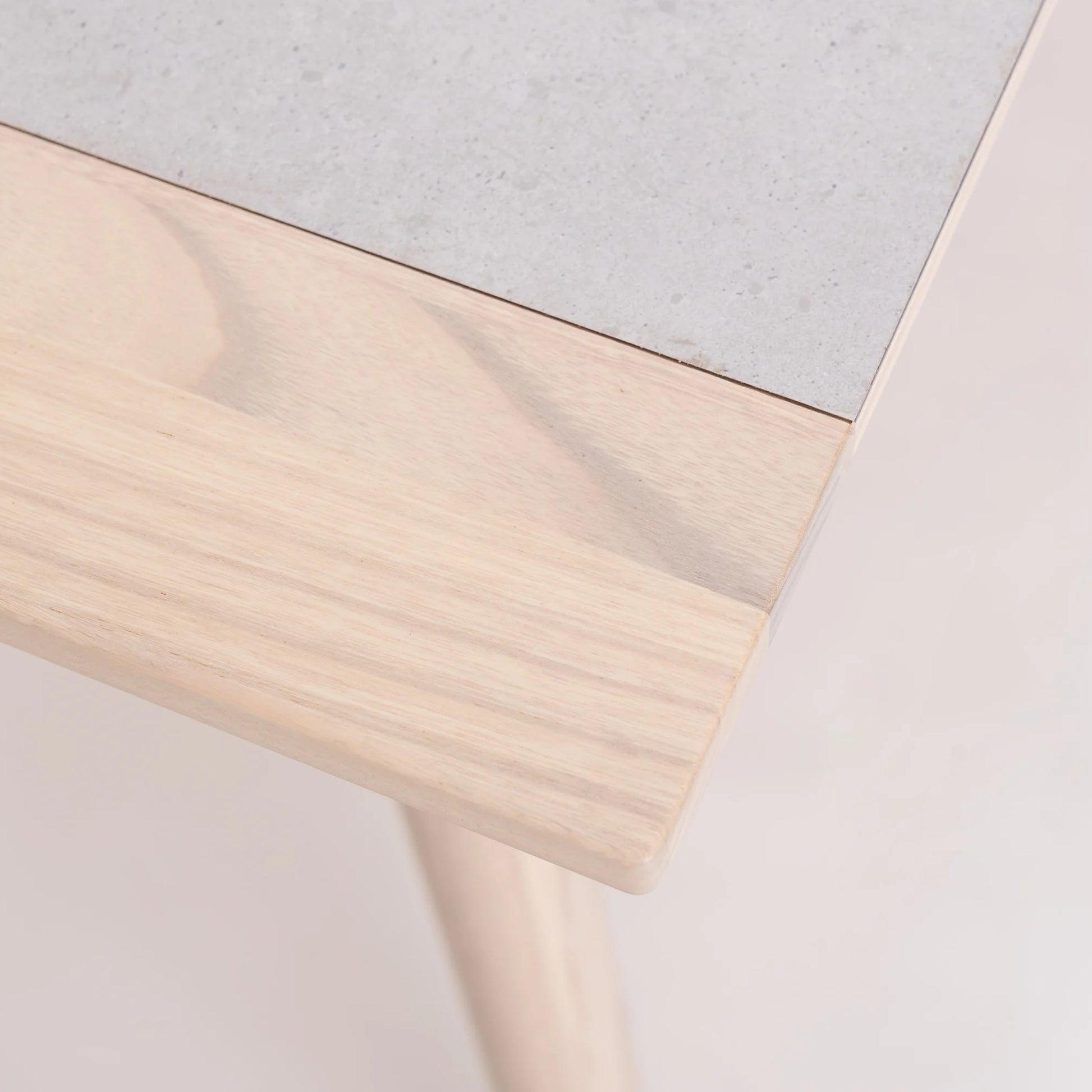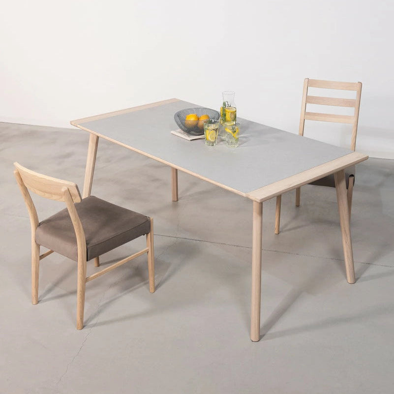 天然木風のデザインと、すっきりとした直線フォルムが印象的なダイニングテーブル。モルタル調の天板と天然木(スンカイ)を組み合わせています。ウレタン塗装仕上げで、日常使いしやすいのもポイント。カラーはナチュラルとブラウンの2色展開で、お部屋の雰囲気に合わせて選べます。