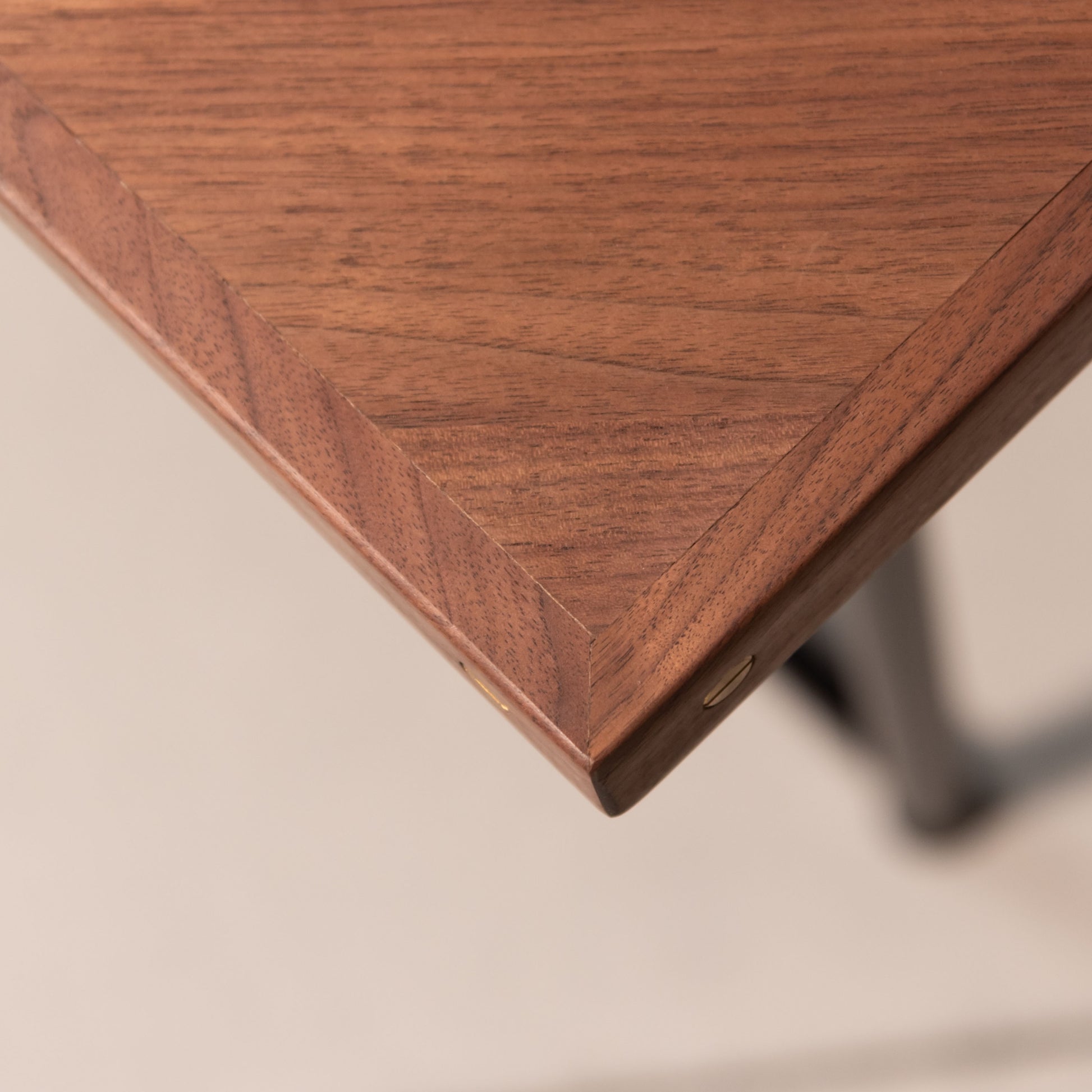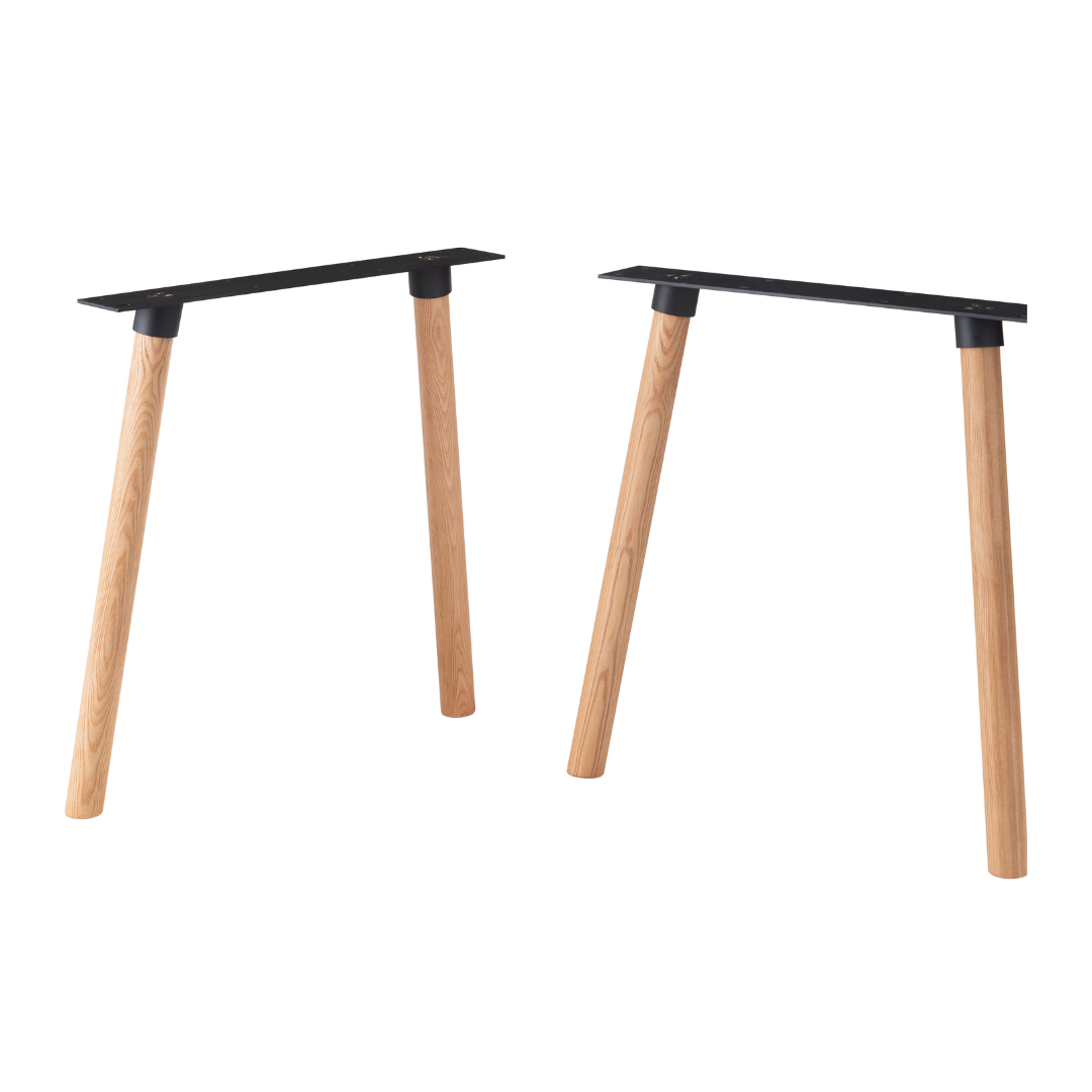 脚部の先端にはアジャスターが付いており、床のわずかな段差によるガタ付きを簡単に調節できます。天板は2色、脚は3タイプから組み合わせを選べるため、手持ちの家具や部屋の建具の色味に合わせてカスタマイズが可能です。