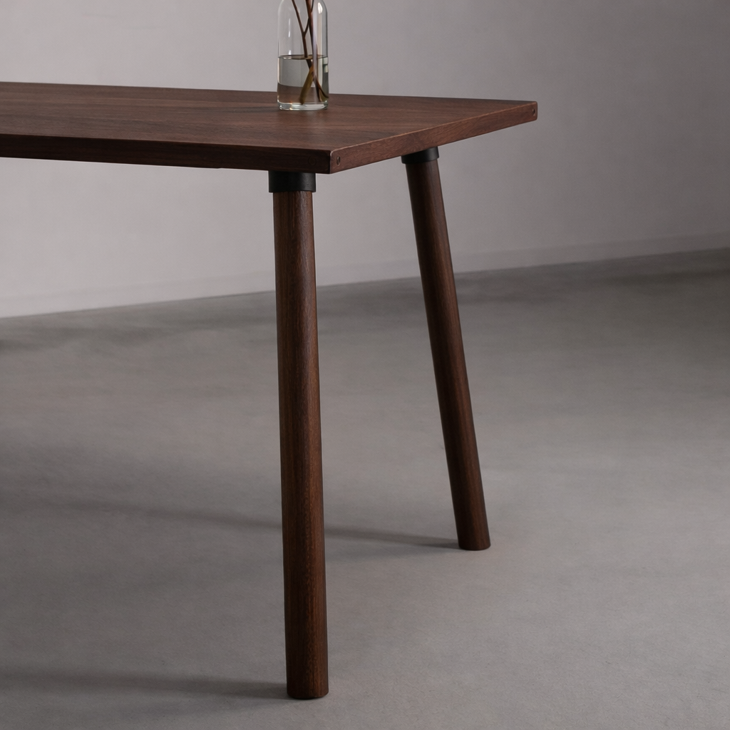 土台には天然木の脚を採用しており、どっしりとした安定感があります。4人から6人で囲めるワイドなサイズ感で、ダイニングやキッチンの中心に置くメインテーブルとして使いやすい一台です。
