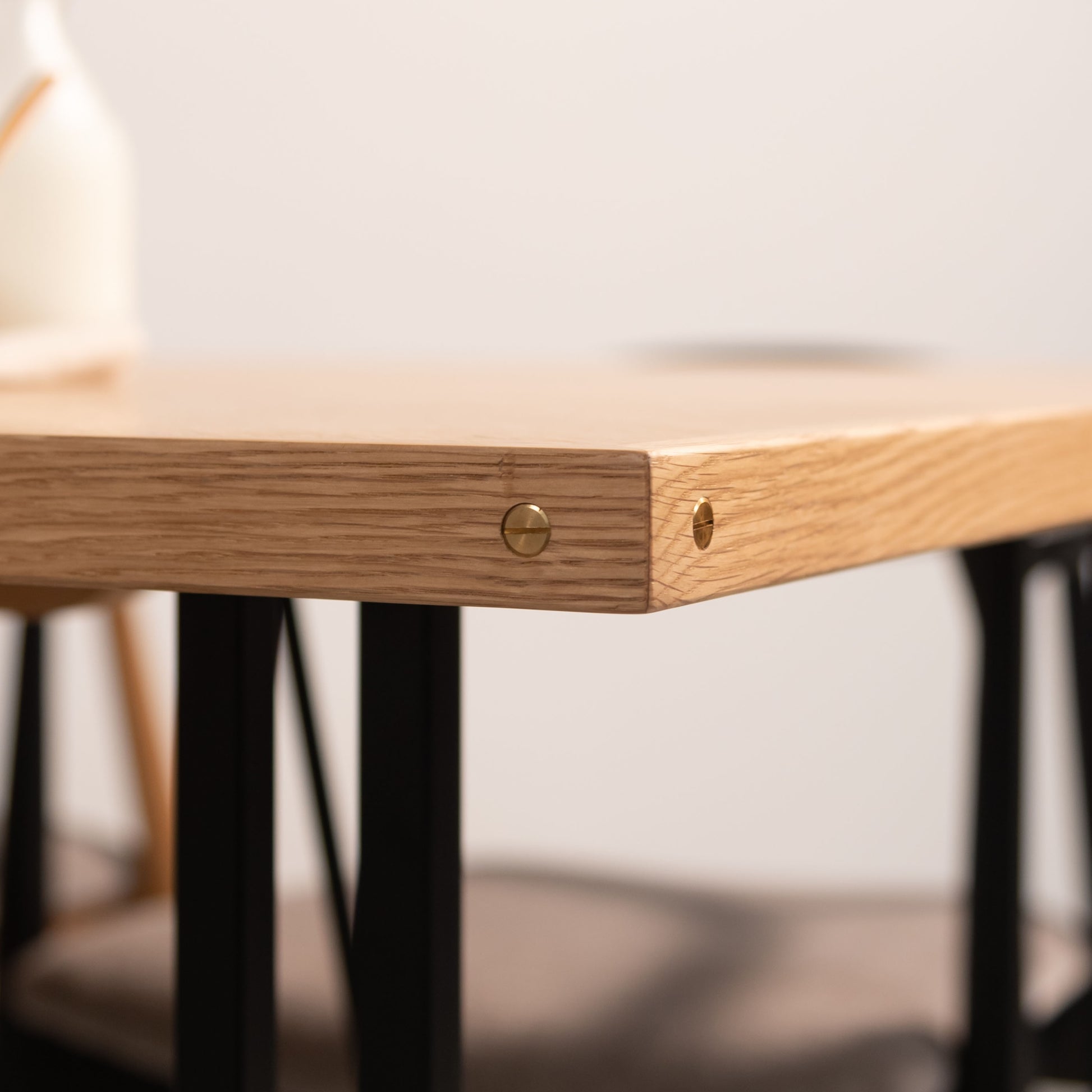 素材 天板:天然木化粧繊維板(オーク) 天然木(オーク) ウレタン塗装 脚部:天然木(オーク) ウレタン塗装 スチール(粉体塗装) アジャスター付き