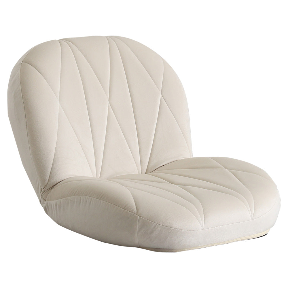 キルティングベロア座椅子 アイボリーは、なめらかなベロア素材と、シェルのようなキルティングデザインが目を引く座椅子。やわらかなカラーが空間に自然な明るさを添えつつ、甘くなりすぎない落ち着いた印象に仕上げてくれます。さりげなく置くだけで、お部屋の雰囲気をぐっとやさしく整えてくれる一脚です。