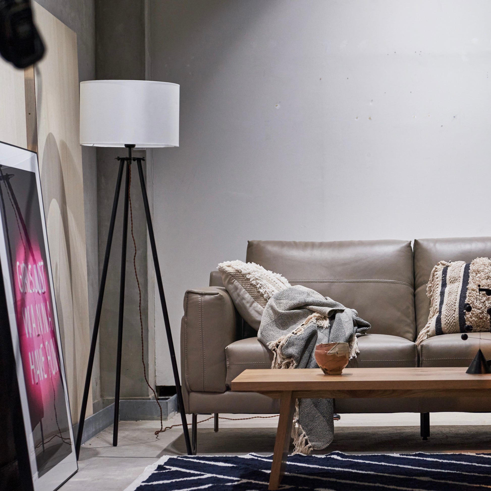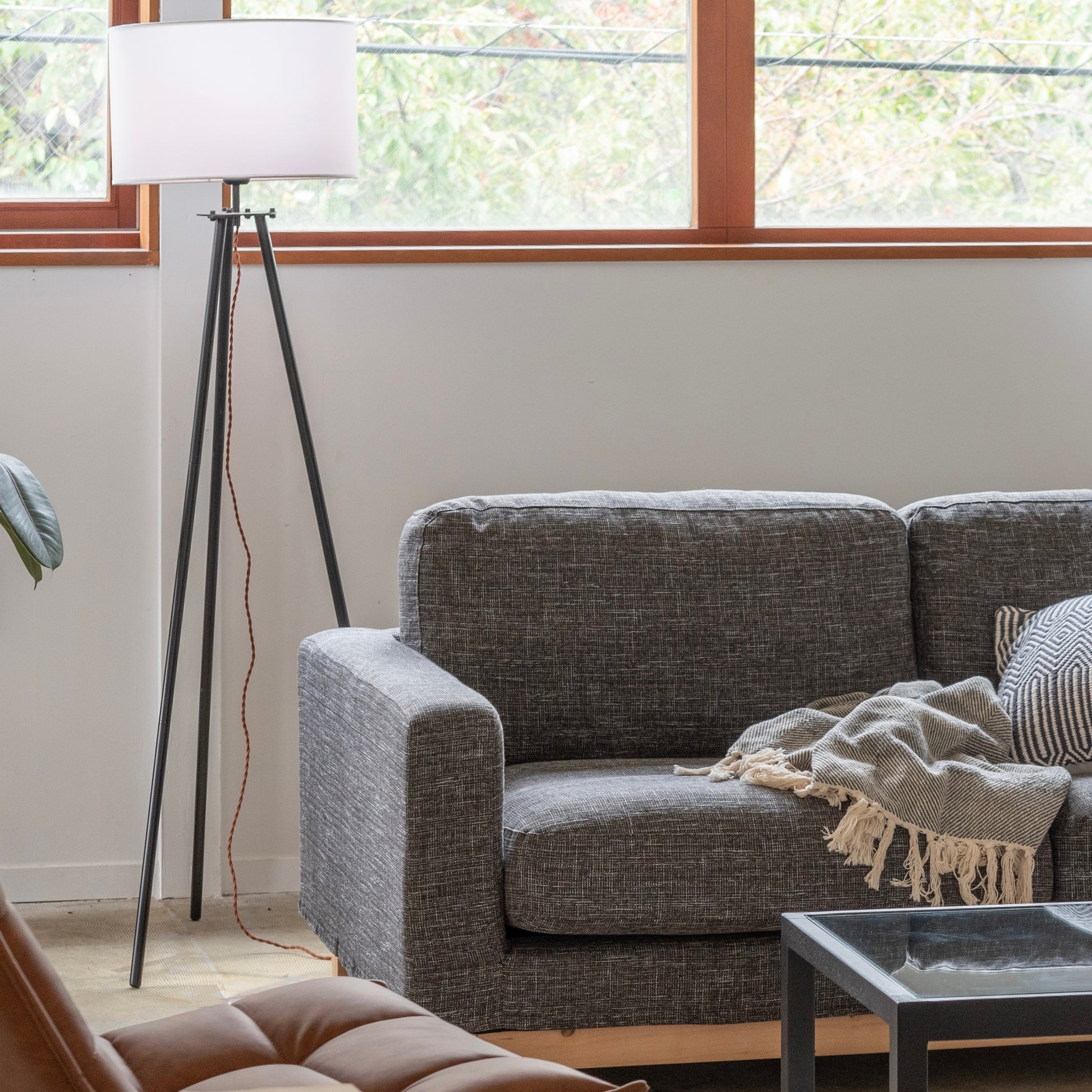 シンプルスチールスタンドライトは、スチールの細身フレームと布製シェードを組み合わせた、すっきりとした佇まいのフロアライト。ホワイトカラーと三脚デザインが、空間に軽さを出しつつ、さりげなく存在感を添えてくれます。主役になりすぎないデザインだからこそ、どんなインテリアにも自然となじみます。