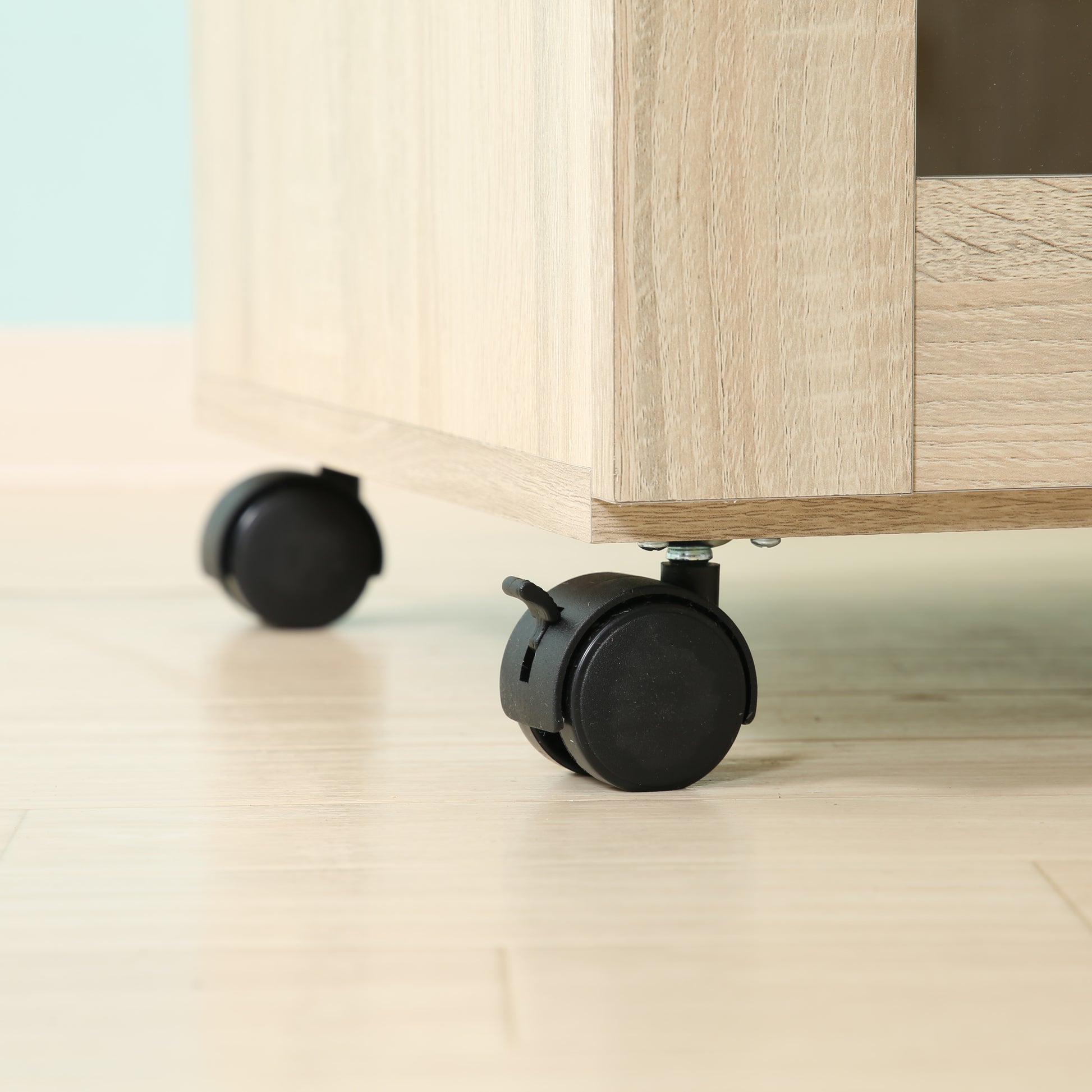 ナチュラルな木目調で仕上げた、キャスター付きの収納キャビネットです。