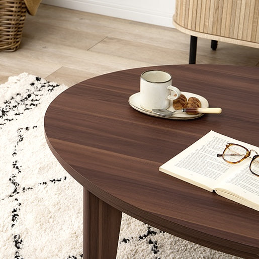 木目調のデザインと柔らかな楕円形フォルムが特徴で、お部屋に落ち着いた雰囲気を演出します。
