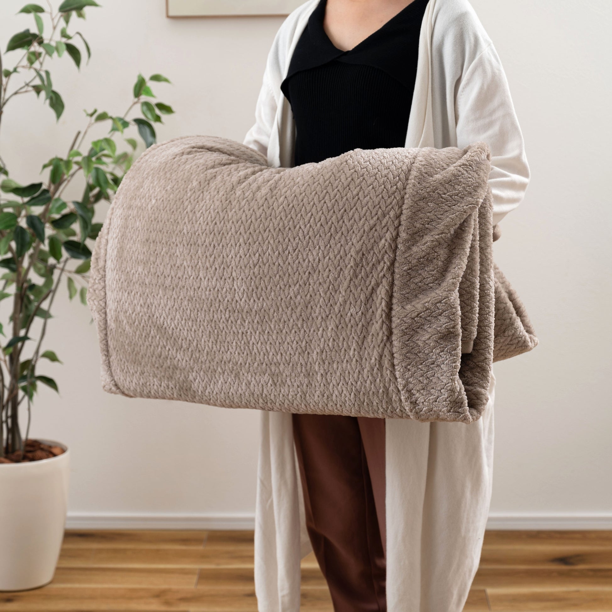 アイボリー、グレー、ベージュの3色展開で、リビング、ダイニング、和室といった様々なお部屋の雰囲気に自然に溶け込みます。薄手の仕上がりながら、あたたかさを提供し、空間をすっきりと見せる効果も期待できます。