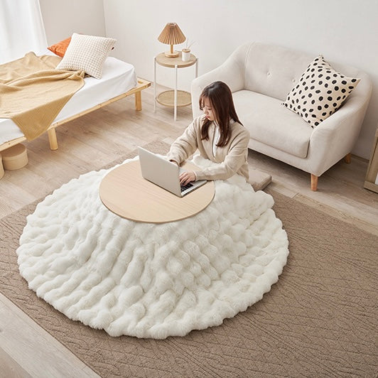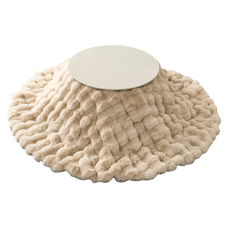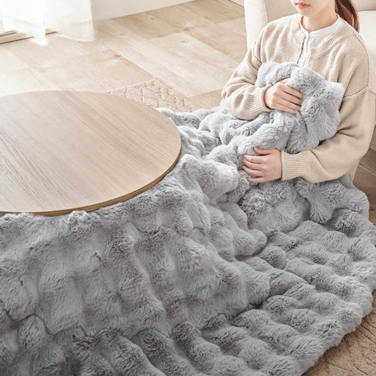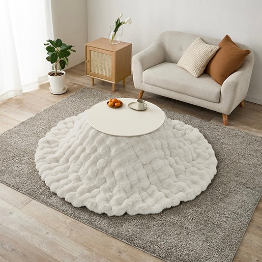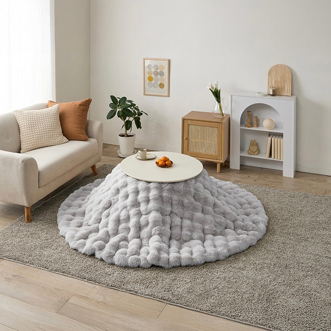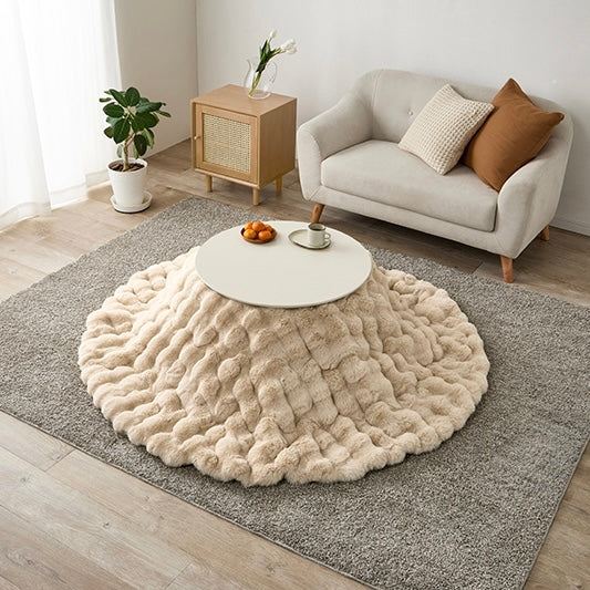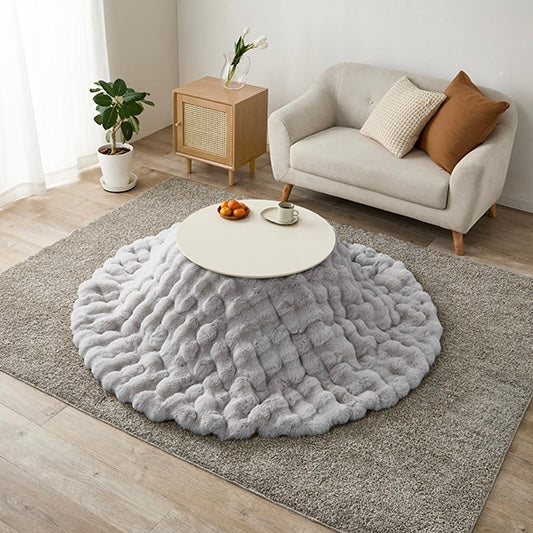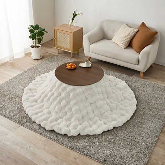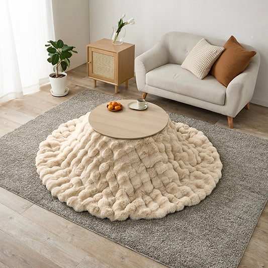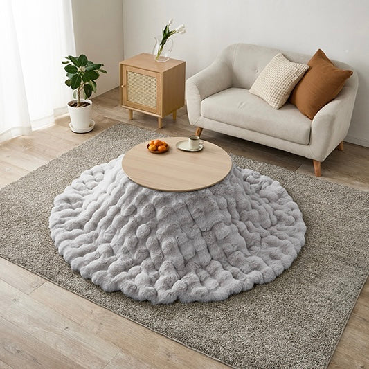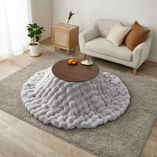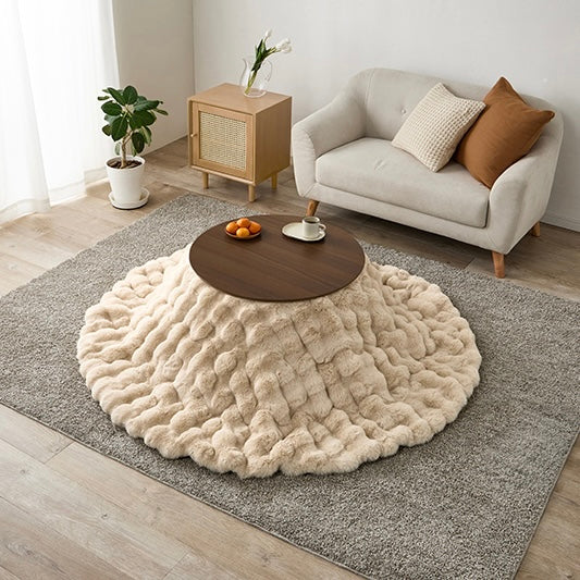 ころんとした直径68cmの円形こたつに、思わず触れたくなる“ふわとろ”の掛け布団を合わせた、届いてすぐ使える2点セット。
