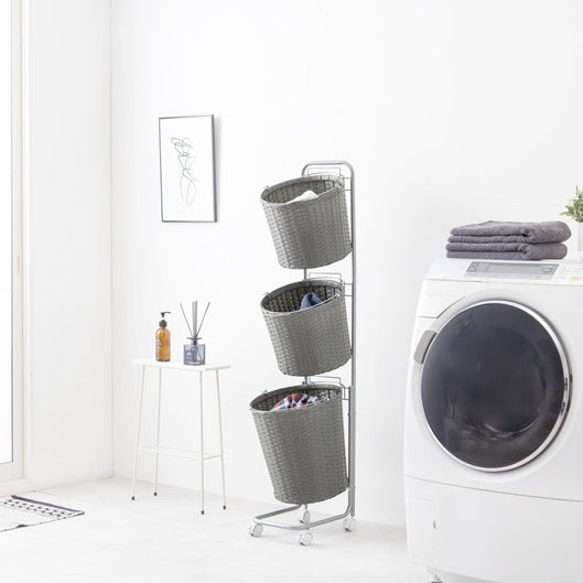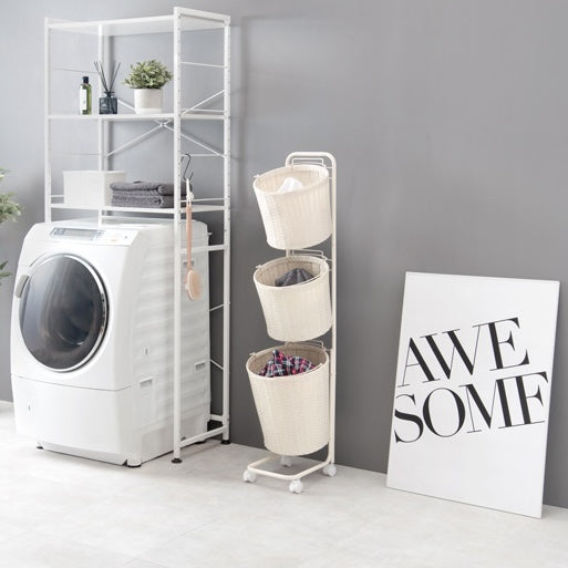 色物と白物を分けたり、家族ごとに分別したりと使い分けに便利。脱衣所や洗面所はもちろん、室内干しスペースでも活躍します。省スペース設計なので、限られた空間にもすっきり収まります。