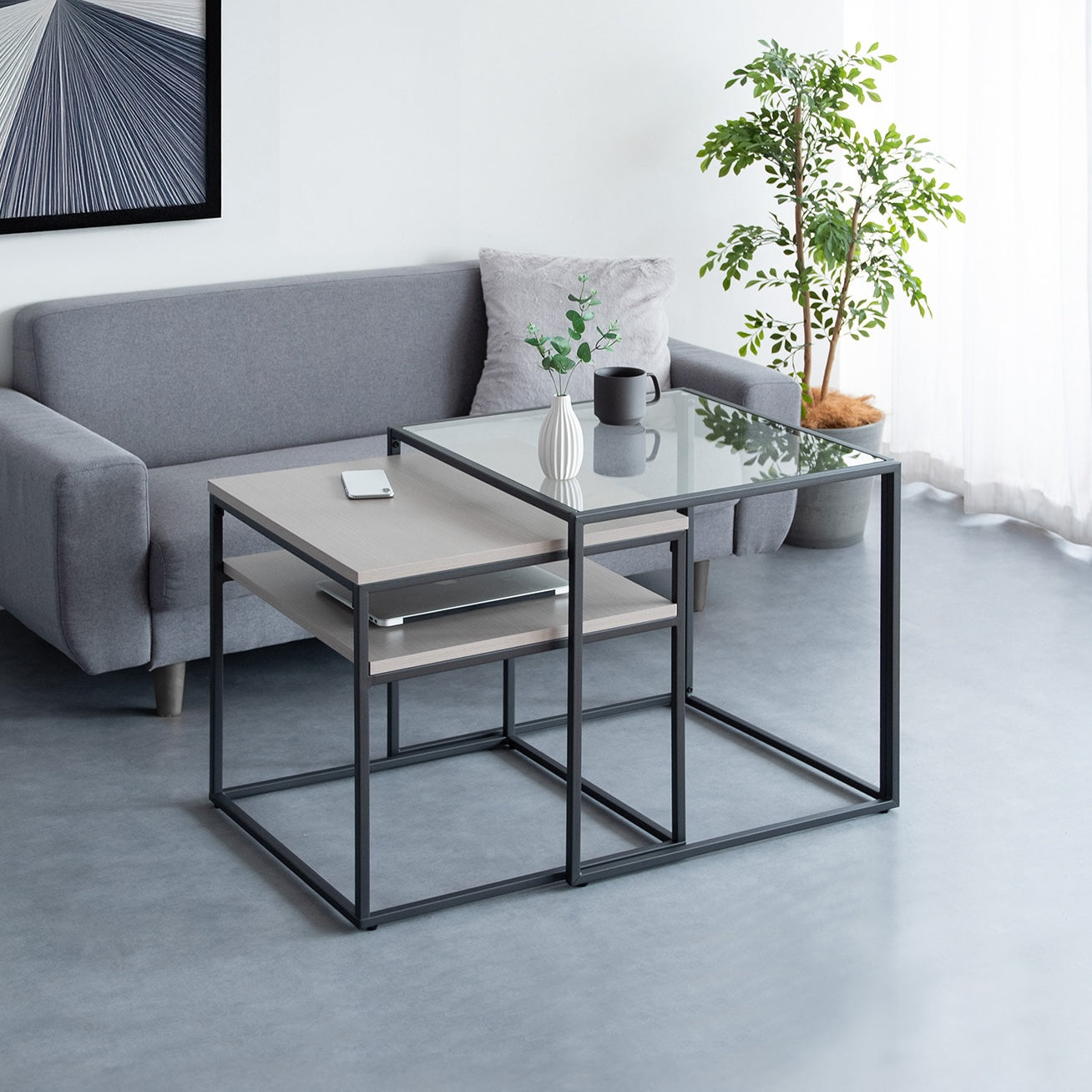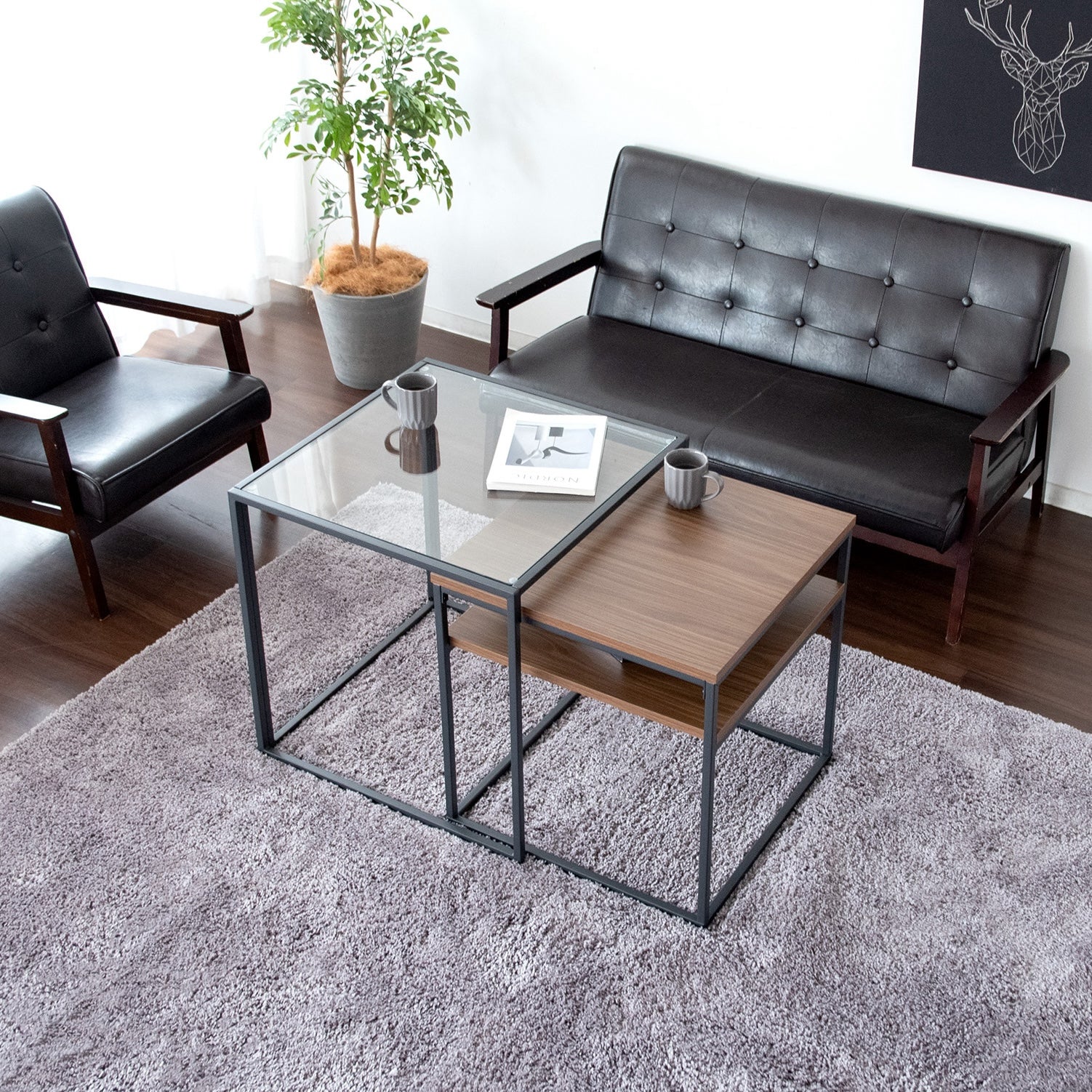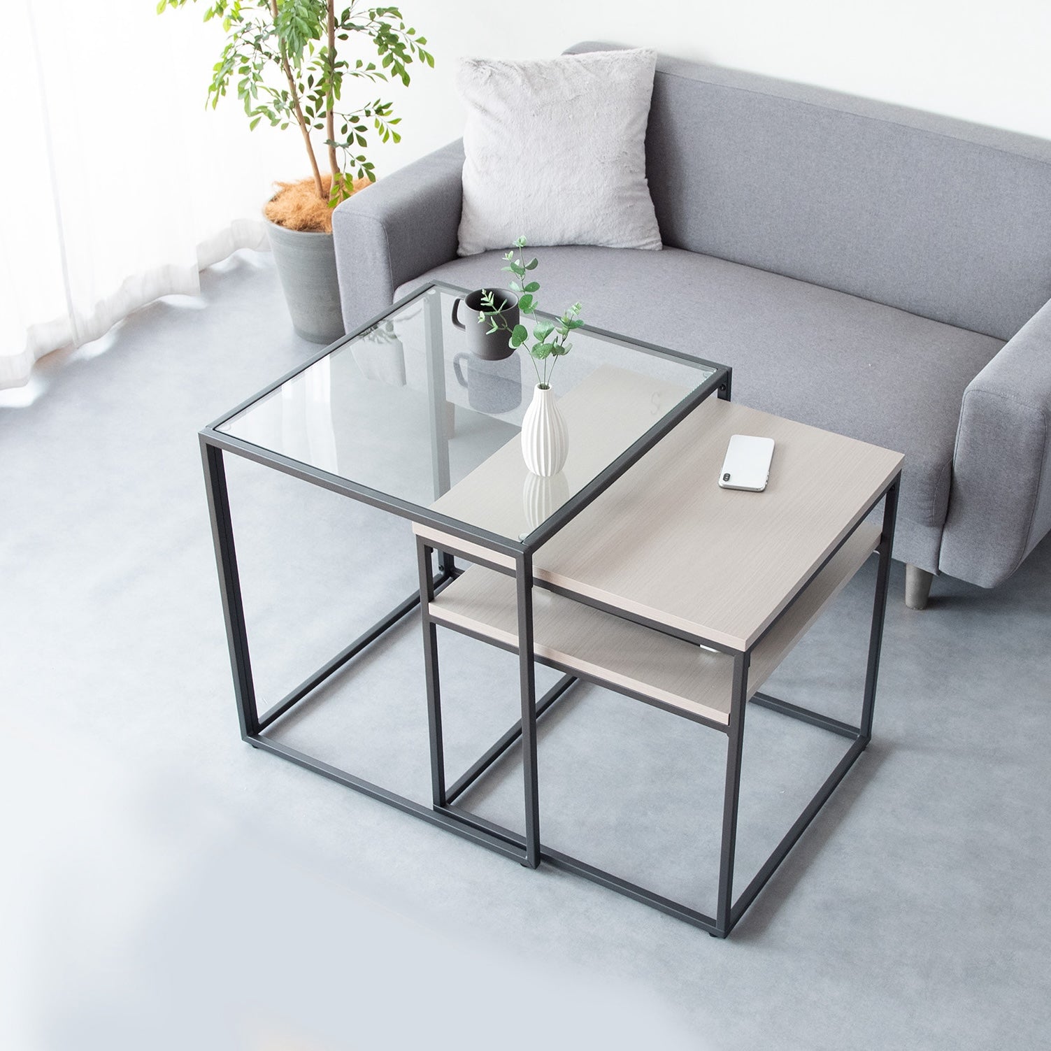 リビングで使いやすい、ネストタイプのスクエアローテーブルです。大小2台のテーブルを組み合わせた入れ子式デザインで、使わない時は重ねてコンパクトに、必要な時は広げて使えるのが特徴です。空間やシーンに合わせて、柔軟にレイアウトを変えられます。