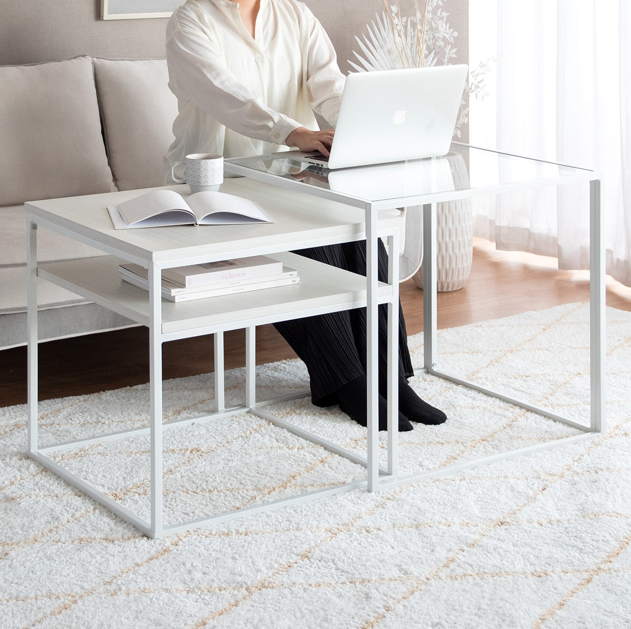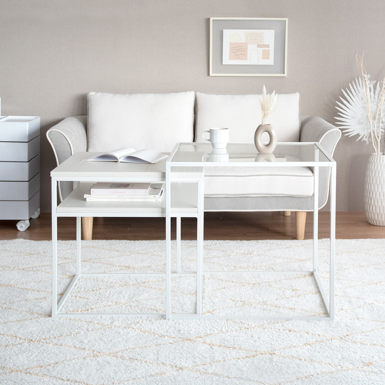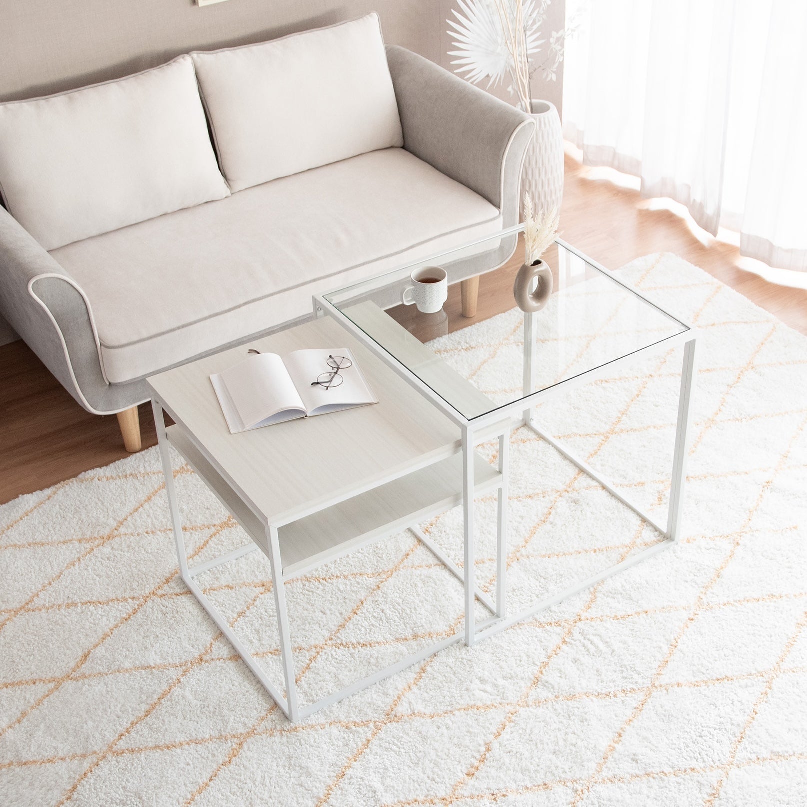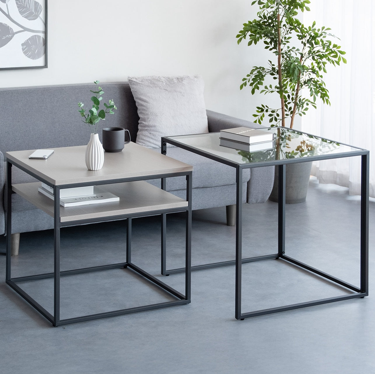リビングで使いやすい、ネストタイプのスクエアローテーブルです。大小2台のテーブルを組み合わせた入れ子式デザインで、使わない時は重ねてコンパクトに、必要な時は広げて使えるのが特徴です。空間やシーンに合わせて、柔軟にレイアウトを変えられます。