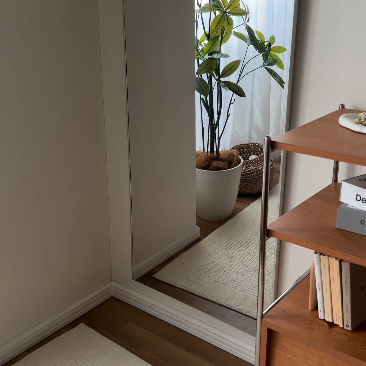全身をしっかり映せるサイズで、毎朝の身支度やお出かけ前のチェックにもぴったり。