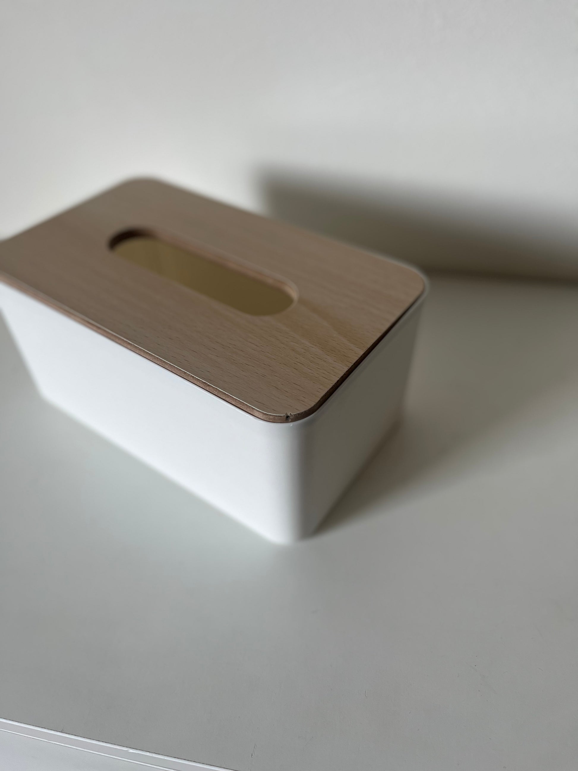 【outlet】シンプルウッド蓋ティッシュケース ホワイト