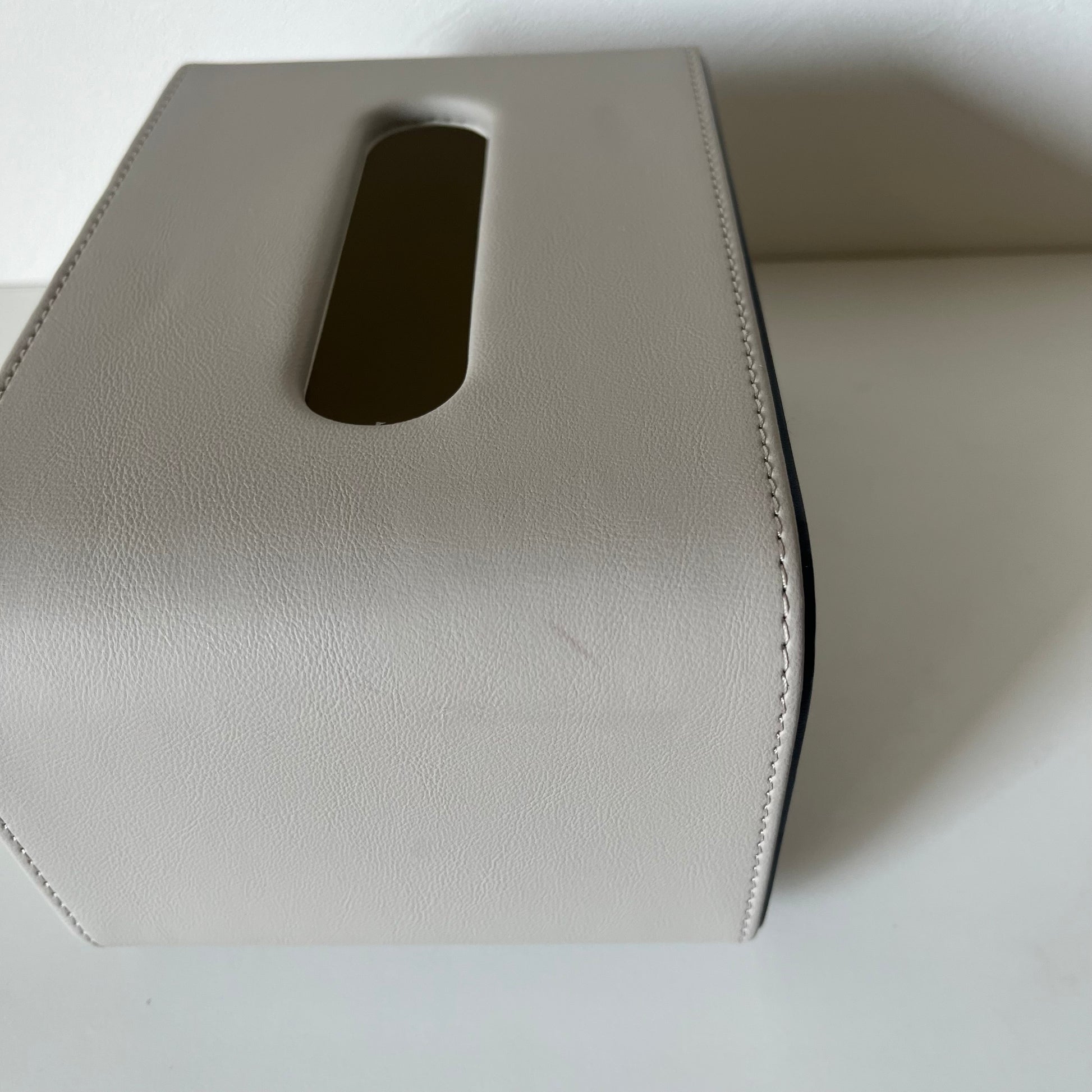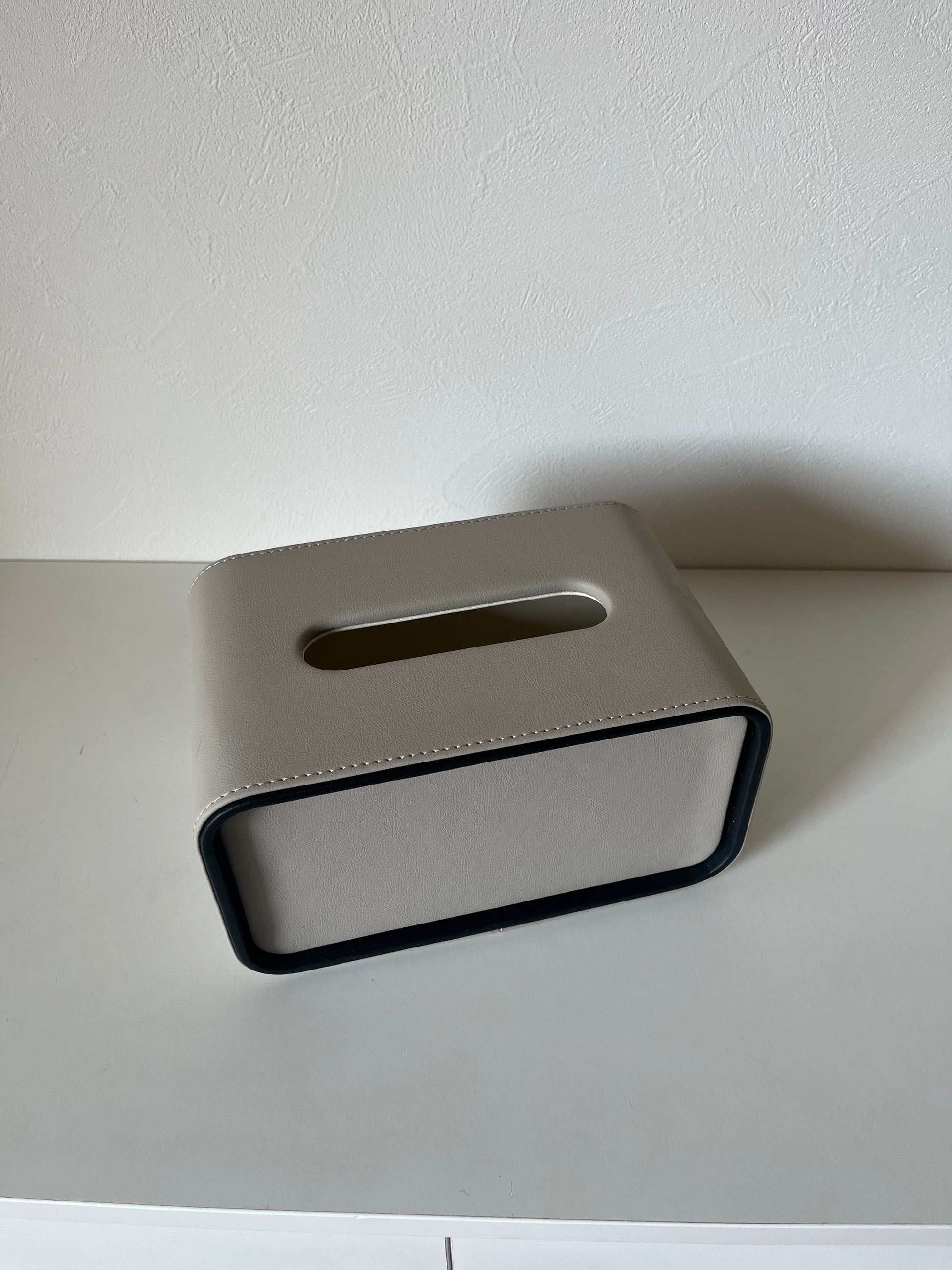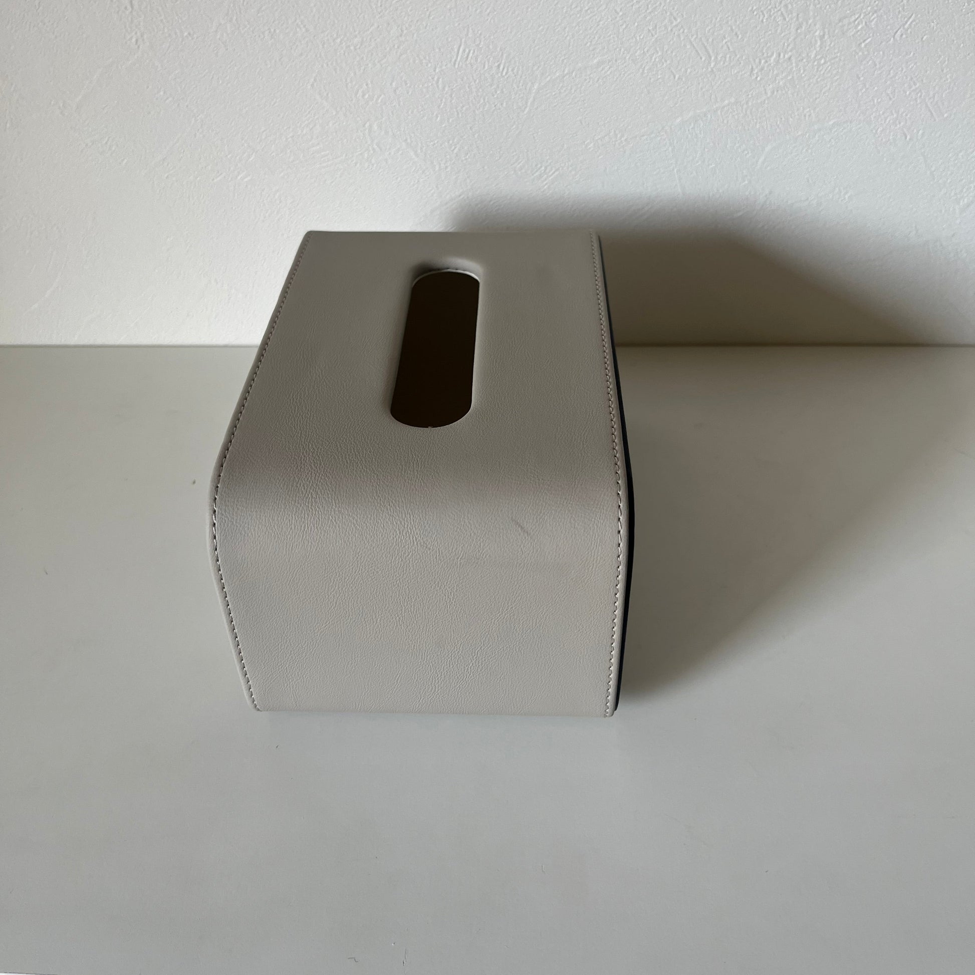 【outlet】スクエアレザー調ティッシュケース グレージュ