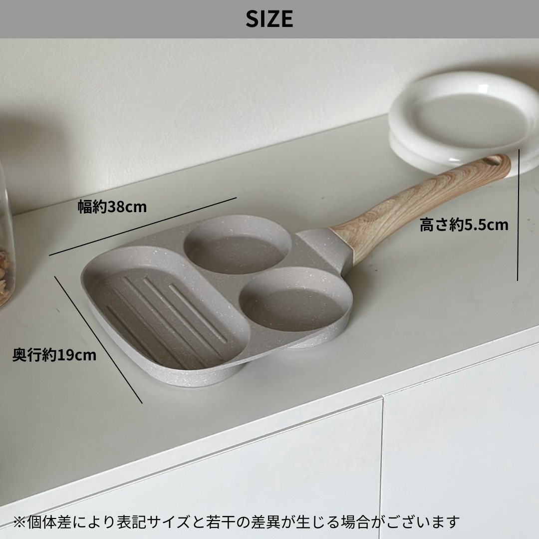 3つの仕切りがあるマルチフライパンです。