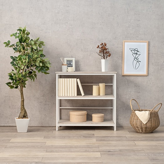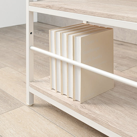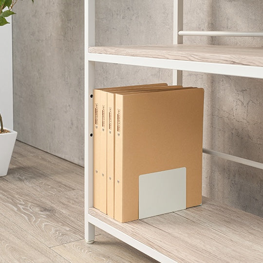 棚板は10cmピッチで3段階の高さ調節が可能。収納する物に合わせて調整できるため、本や書類、小物から日用品まで幅広く対応します。見せたい物と隠したい物をバランスよく整理できるのも、オープンラックならではの使いやすさです。