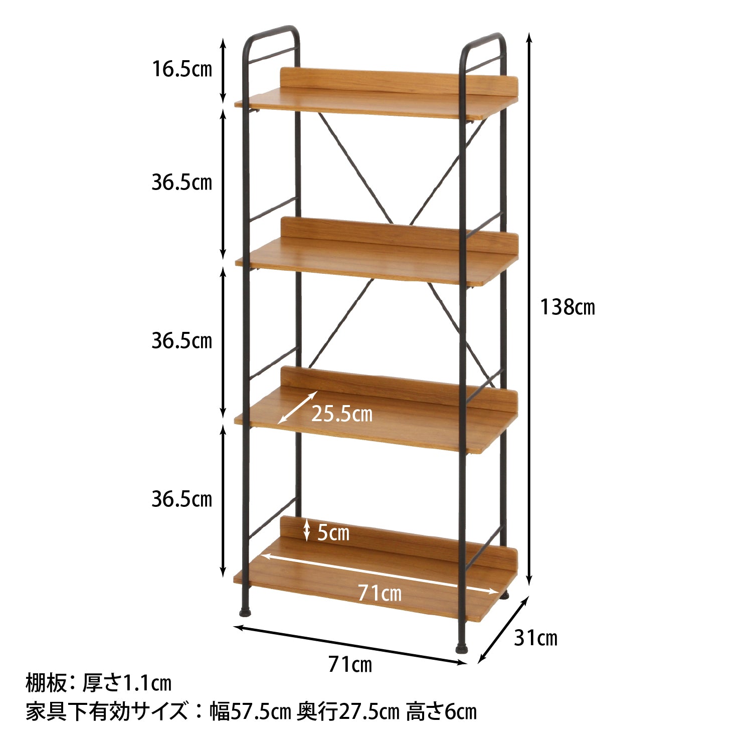 サイズ 3段:幅約71cm×奥行約31cm×高さ約101cm 4段:幅約71cm×奥行約31cm×高さ約138cm