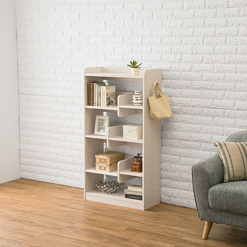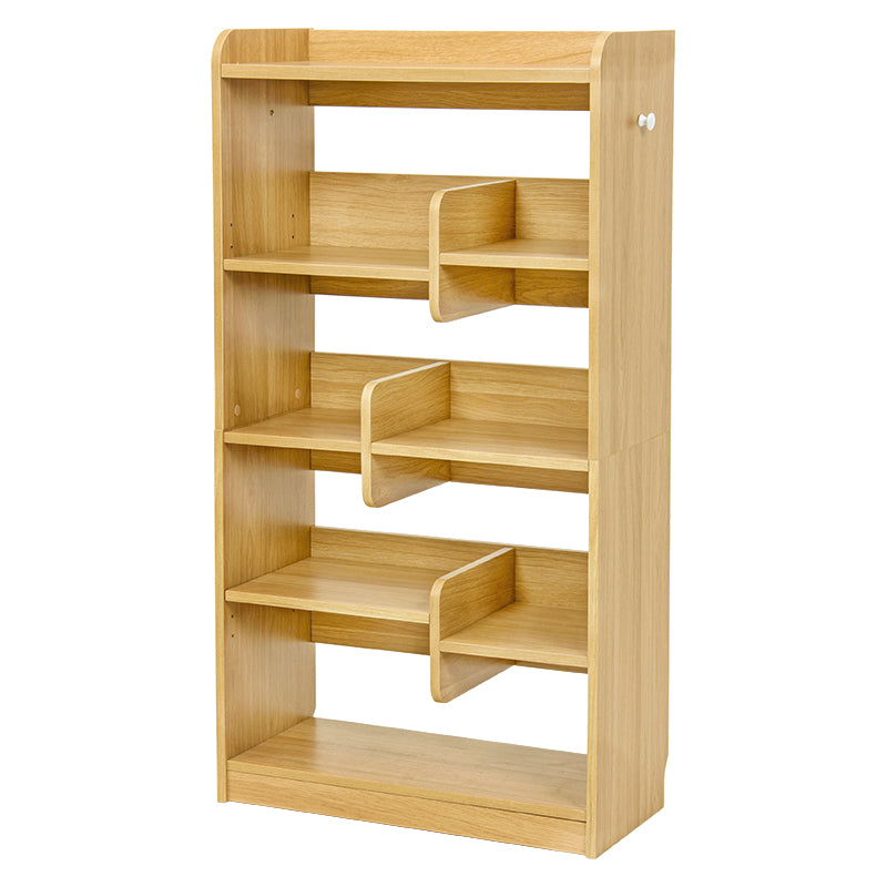 ブックエンド一体型構造で、本が倒れにくく整理しやすい設計です。両面使用に対応しており、置き場所に合わせて使い方を変えられます。カラーはナチュラルとホワイトウォッシュの2色展開で、部屋の雰囲気に合わせて選べます。