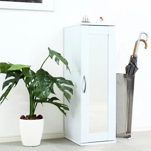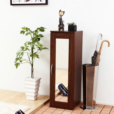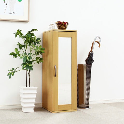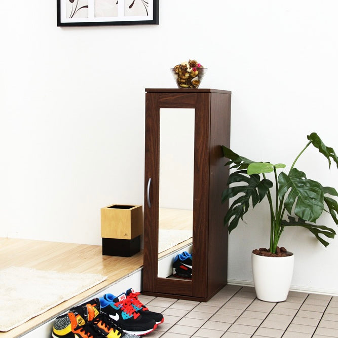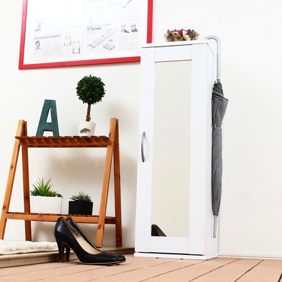 縦型収納なので、コンパクトながら靴を効率よくしまえます。前面にはミラーが付いていて、靴を選びながらそのまま身だしなみチェックができるのも嬉しいポイントです。