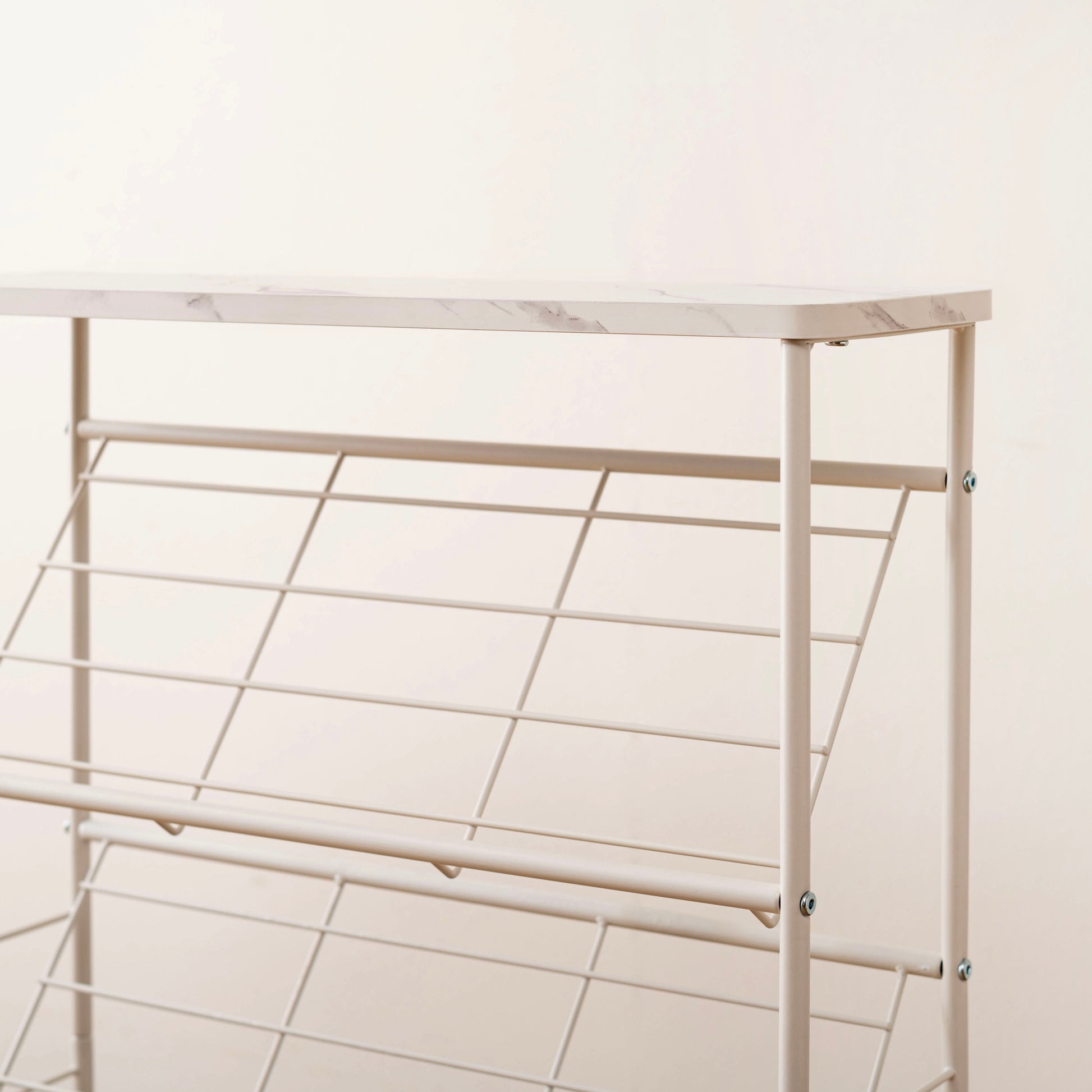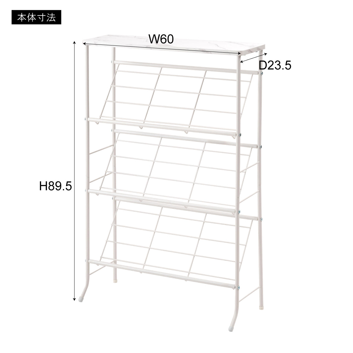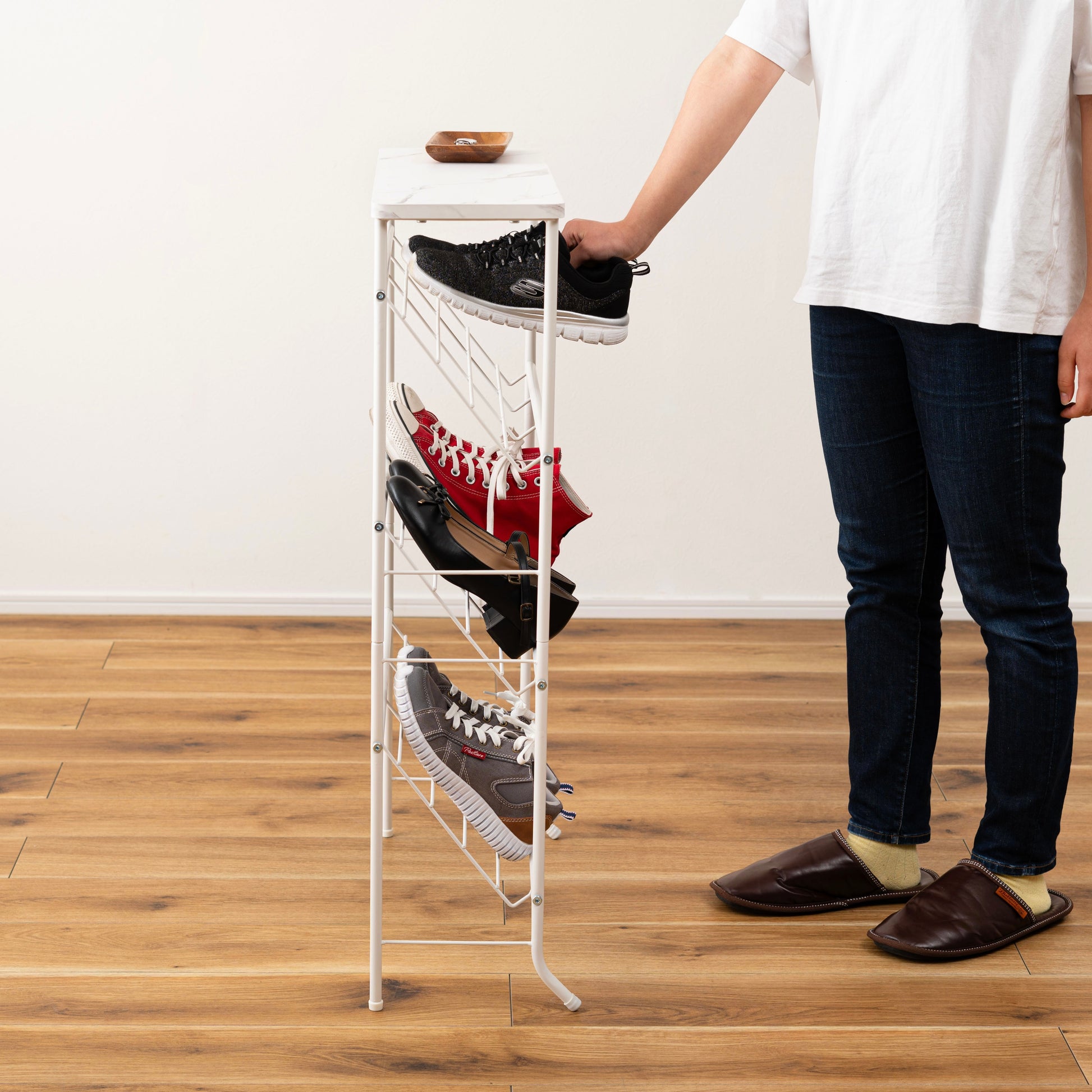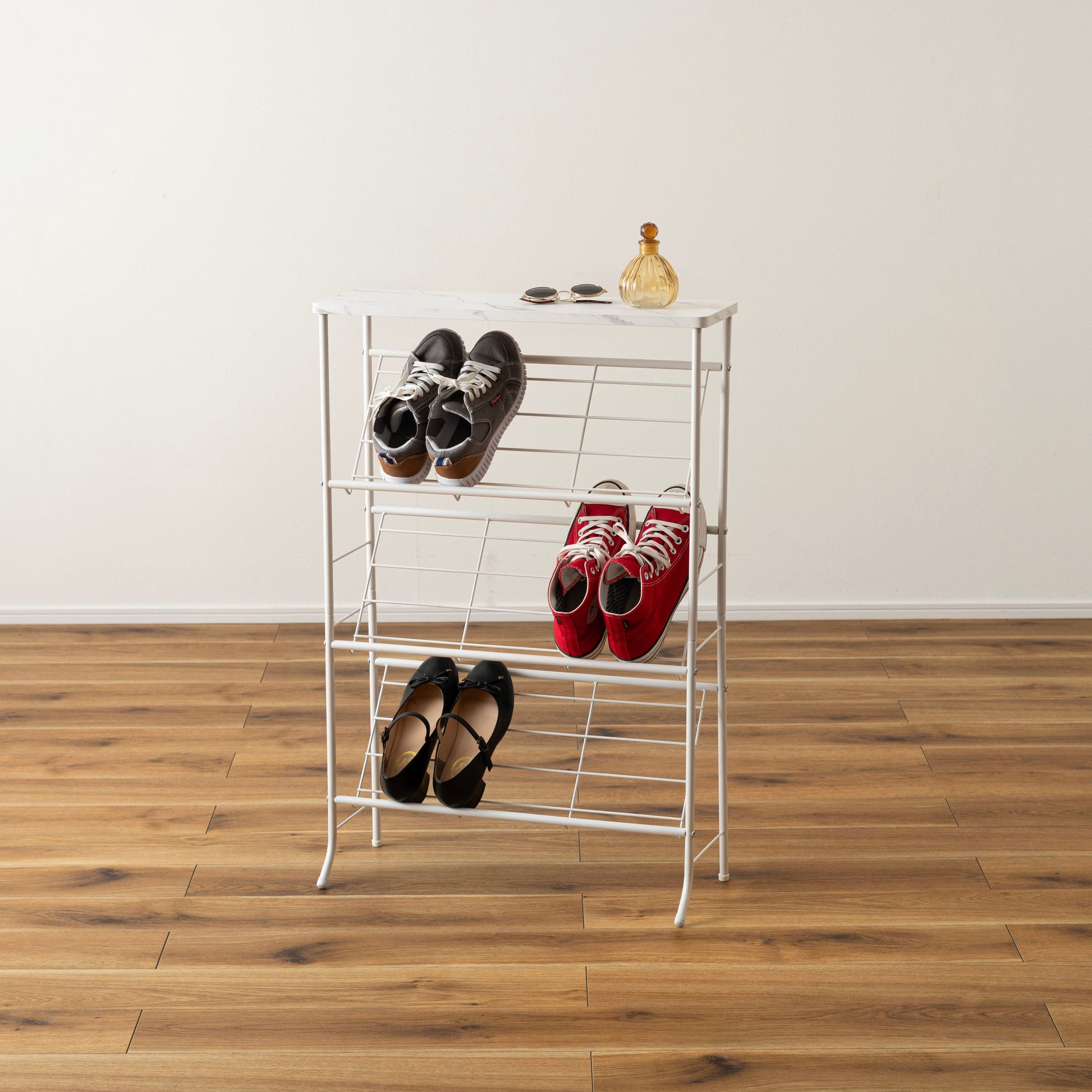 落ち着いた石目調デザインが、玄関をすっきり大人っぽく整えてくれるシューズラック。
