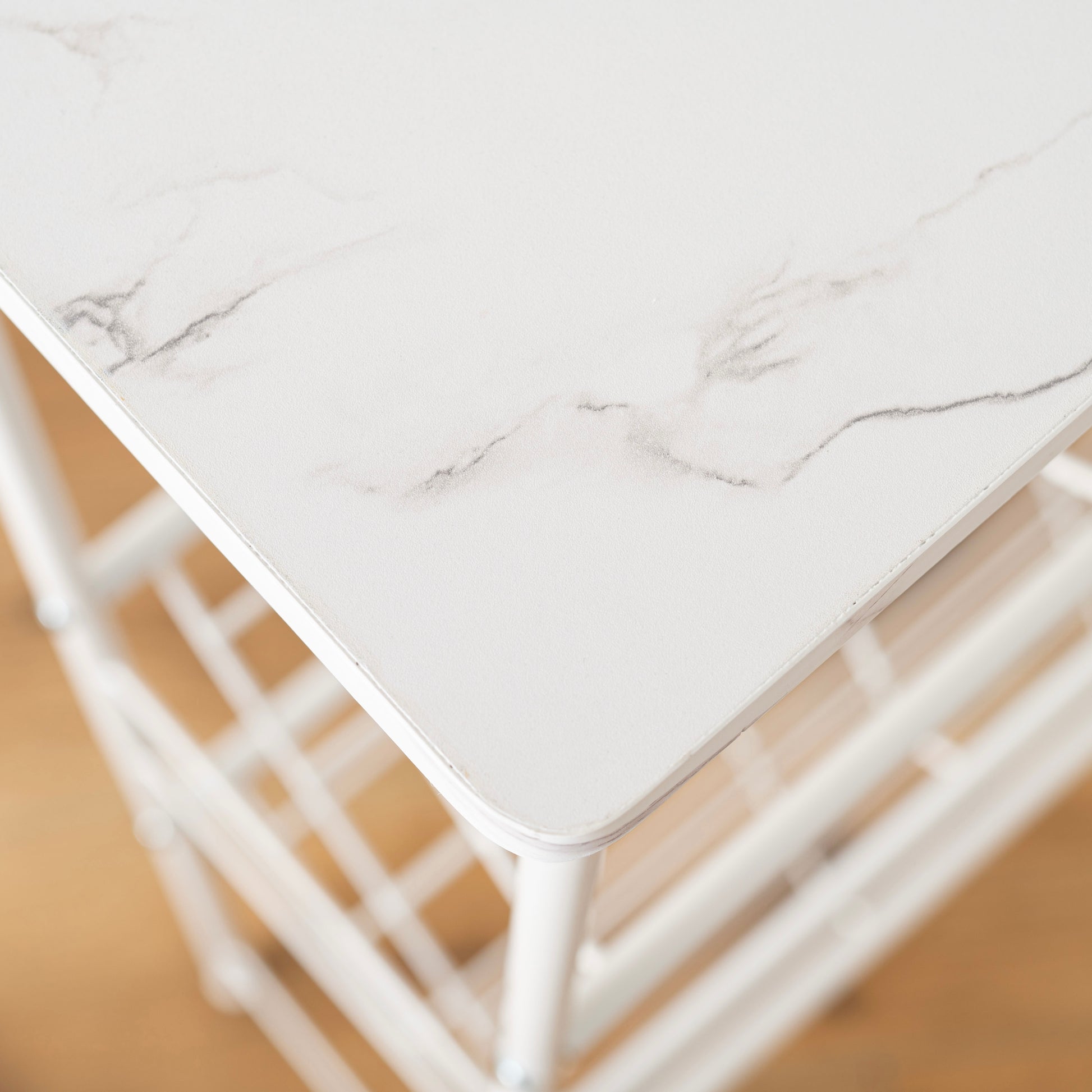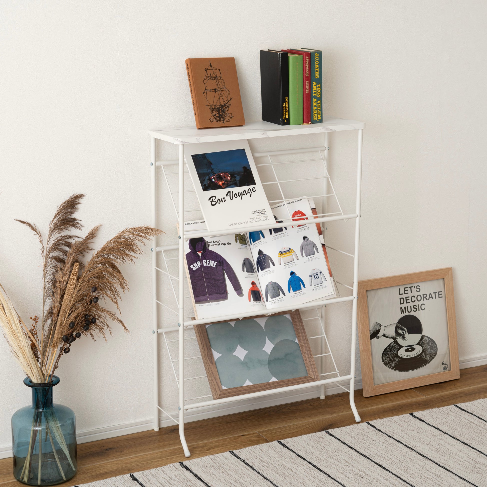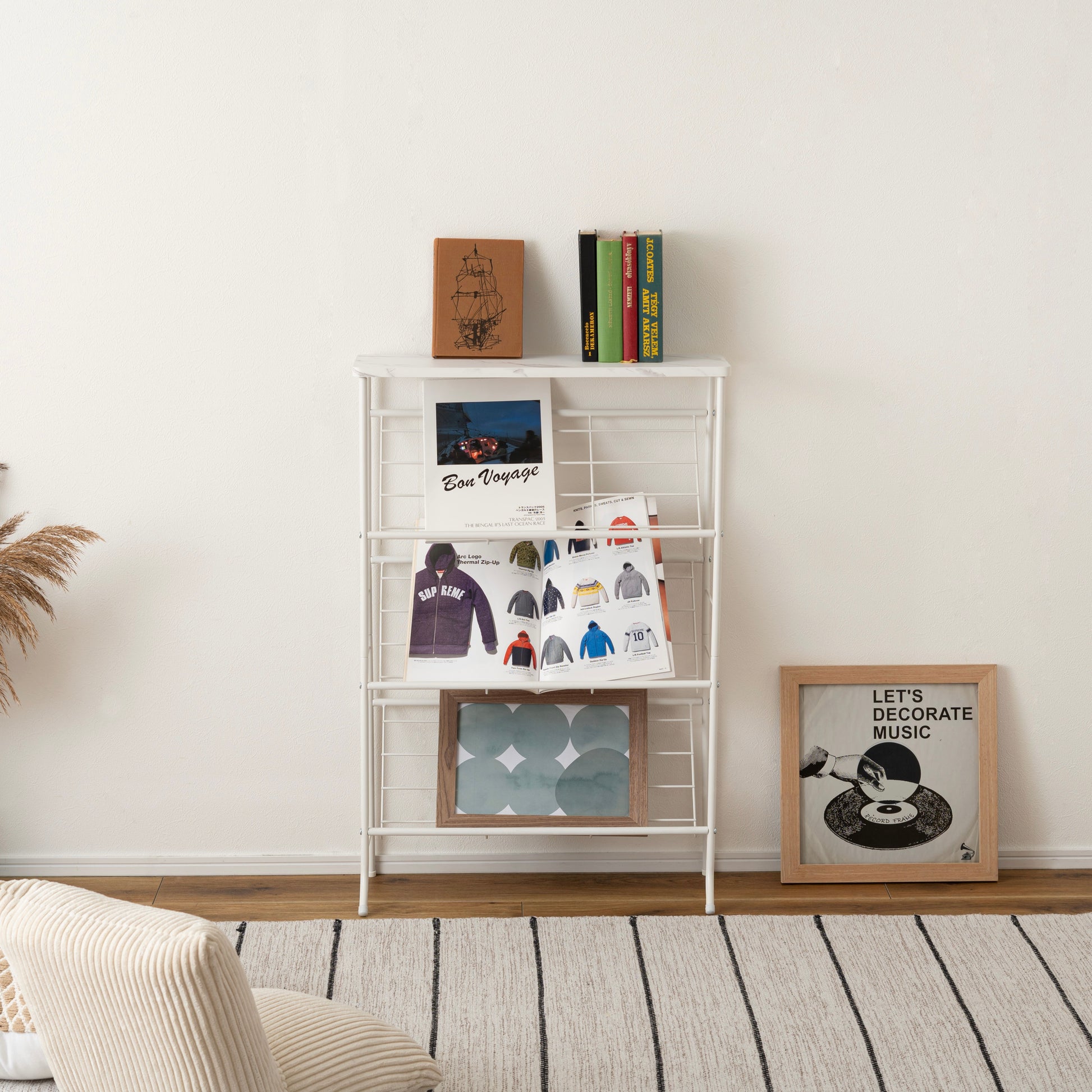 スチールフレームと石目調の棚板を組み合わせた、シンプルながら存在感のあるデザインです。カラーはダークグレーとホワイトの2色から選べます。