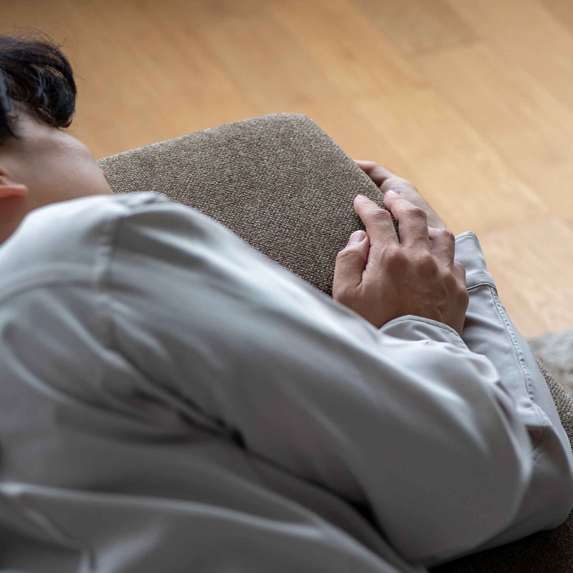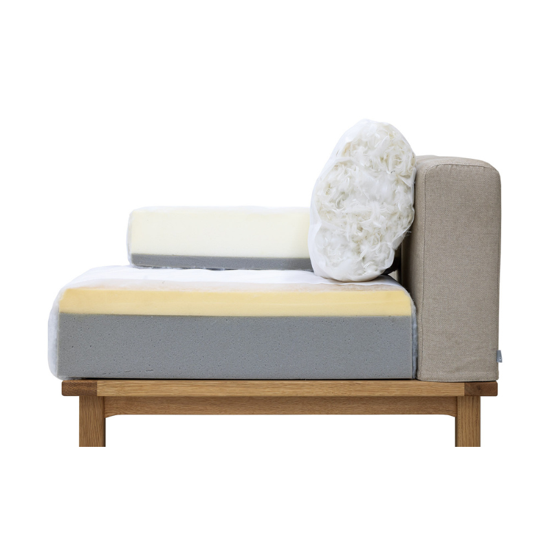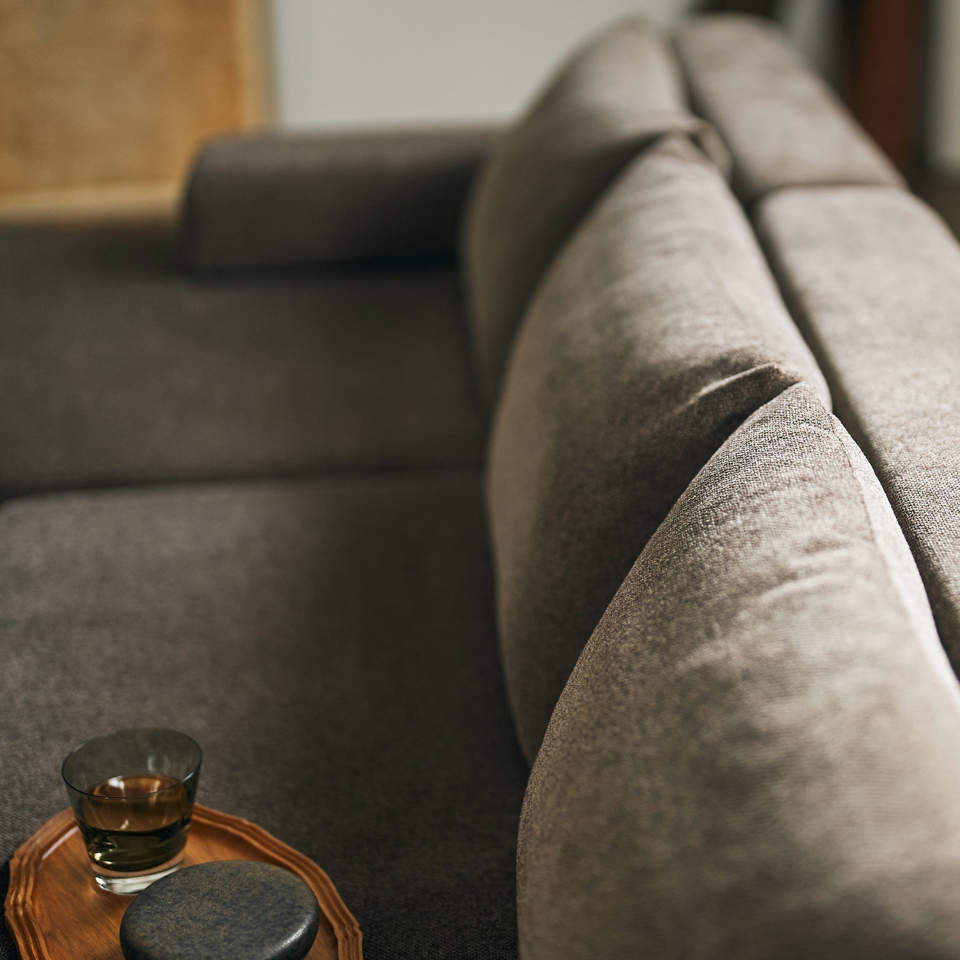 一見シンプルながら、座面はしっかりとした厚みと適度な弾力があり、長時間でも快適。映画を観たり、本を読んだり、うたた寝したり…と、つい時間を忘れてしまうような、ふわっとした座り心地です。