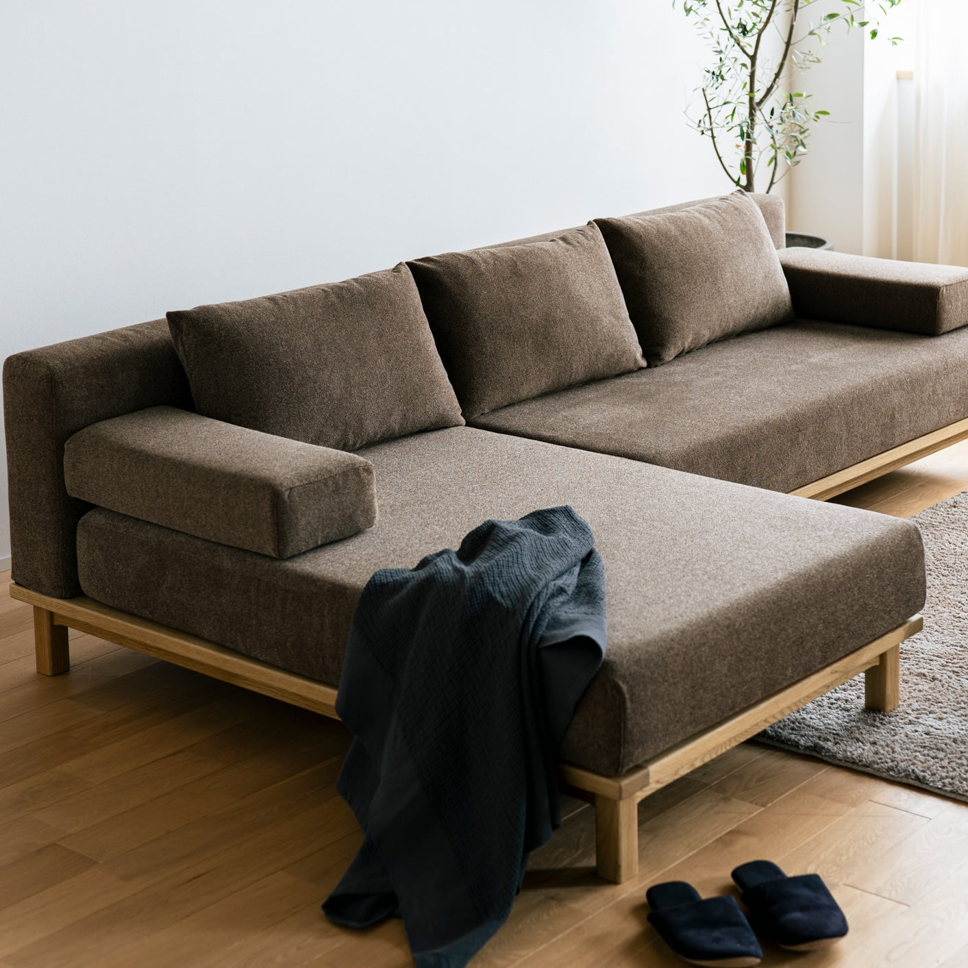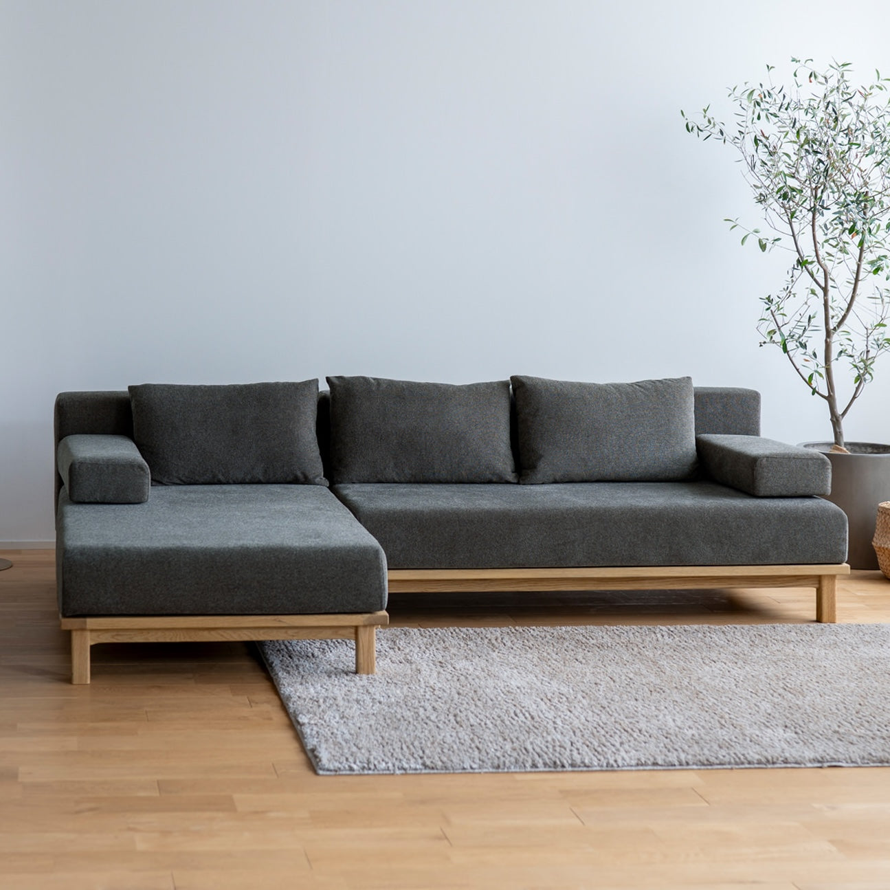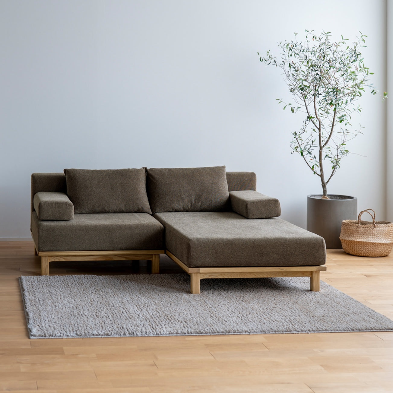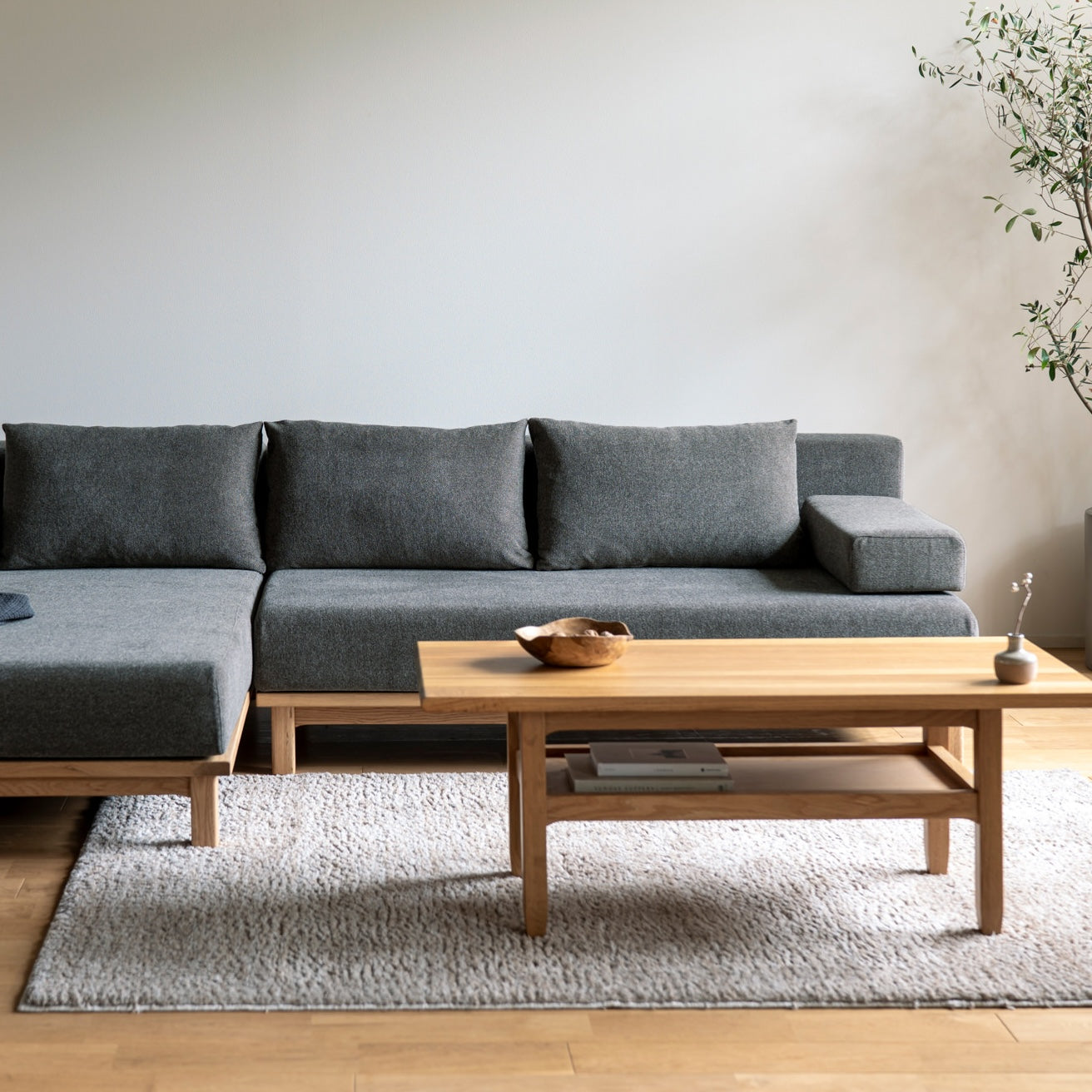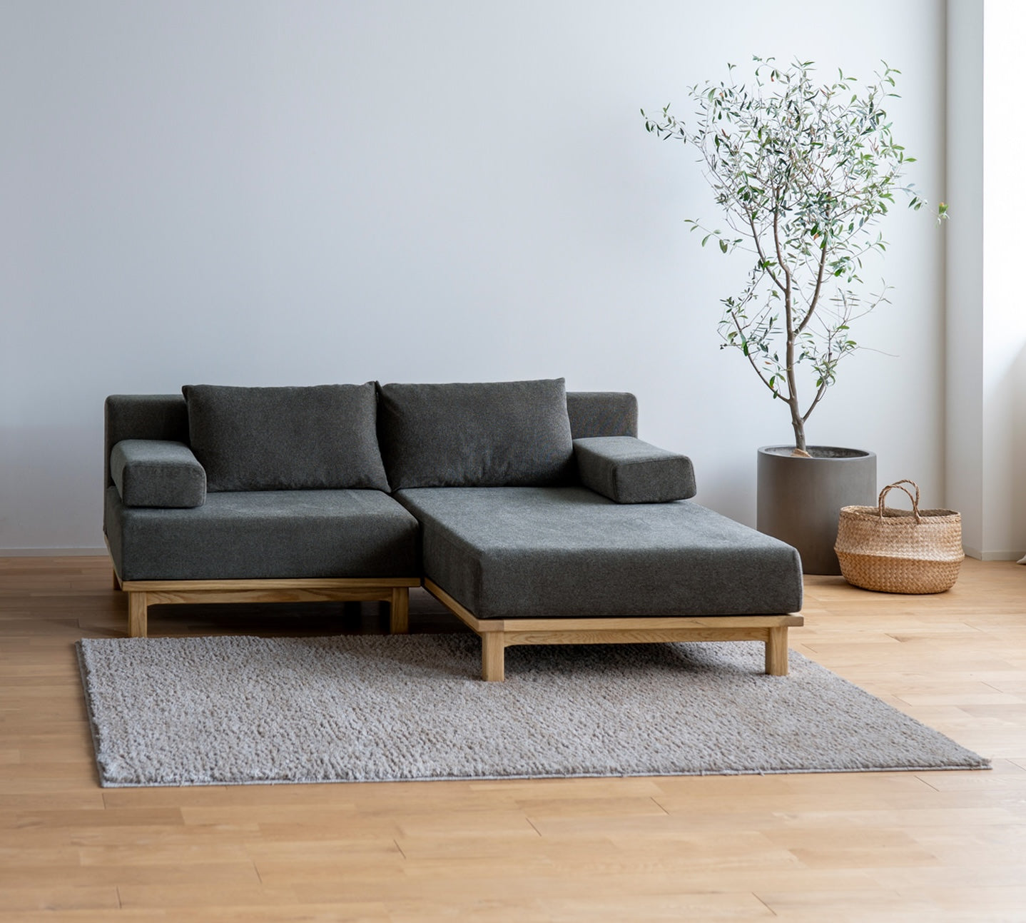 ナチュラルウッドのフレームと相まって、北欧系やナチュラルモダンな空間にもよく馴染みます。ドライクリーニング可能なカバーリング仕様で清潔感もキープできます。