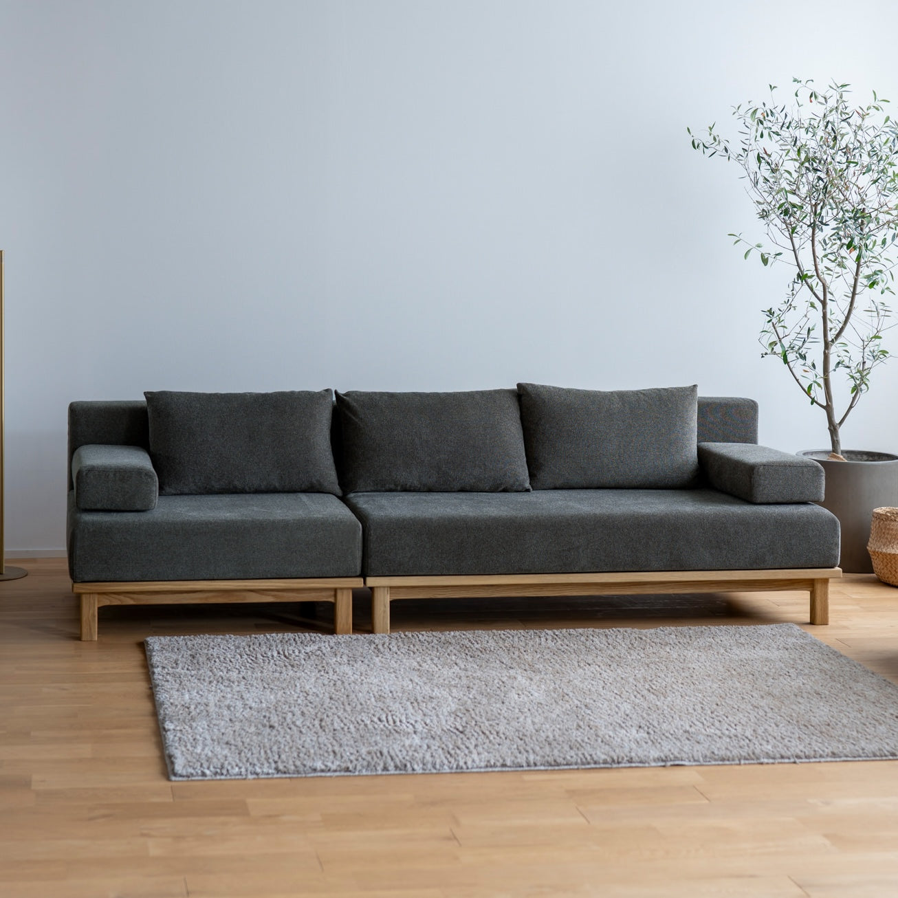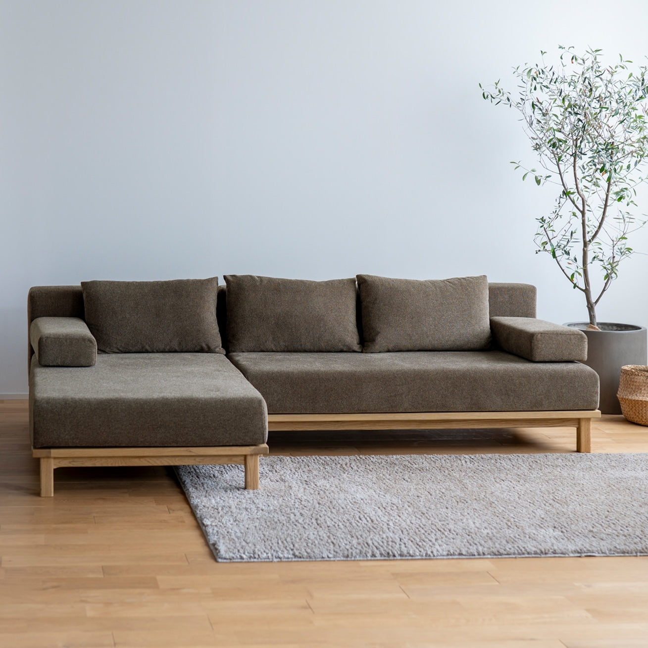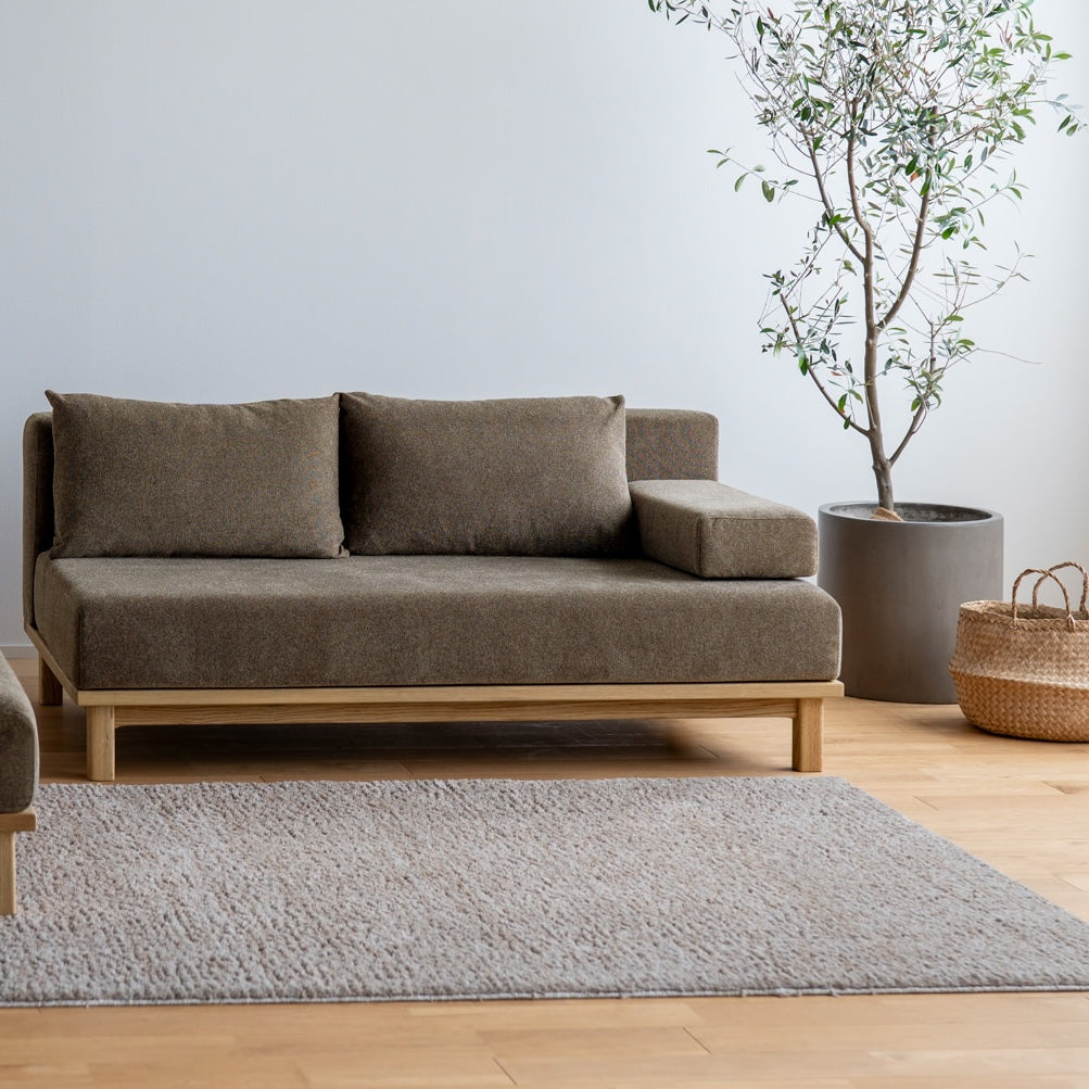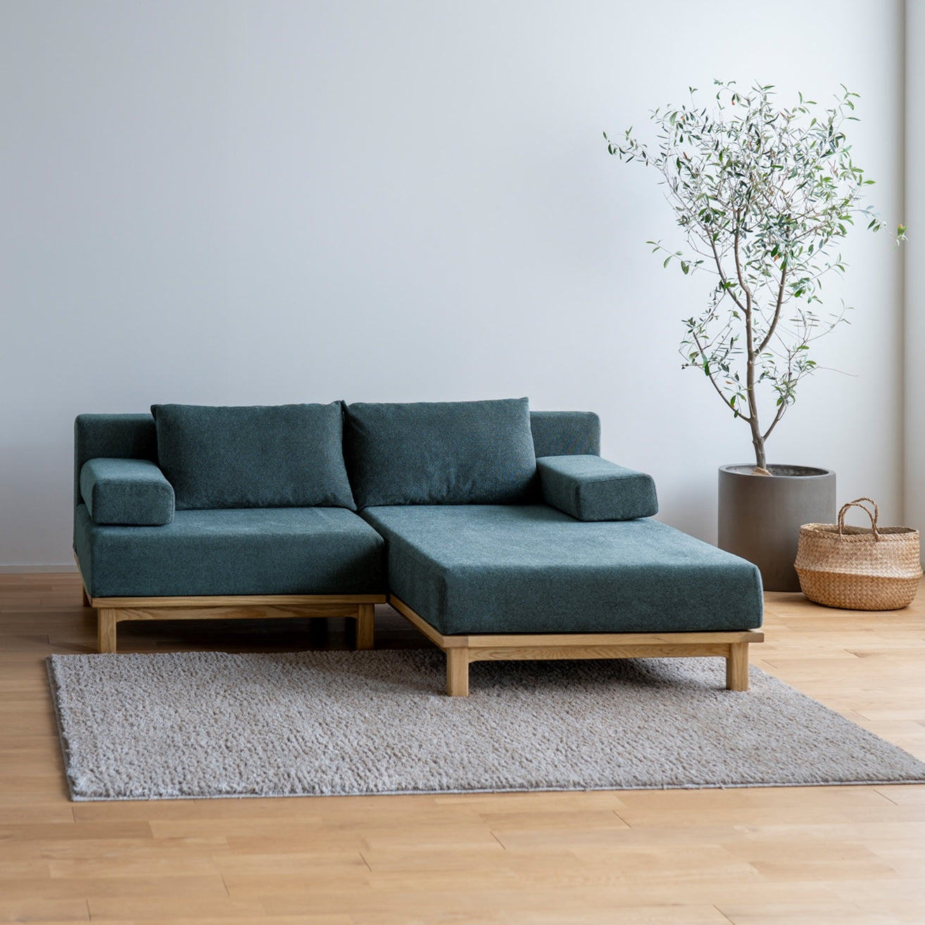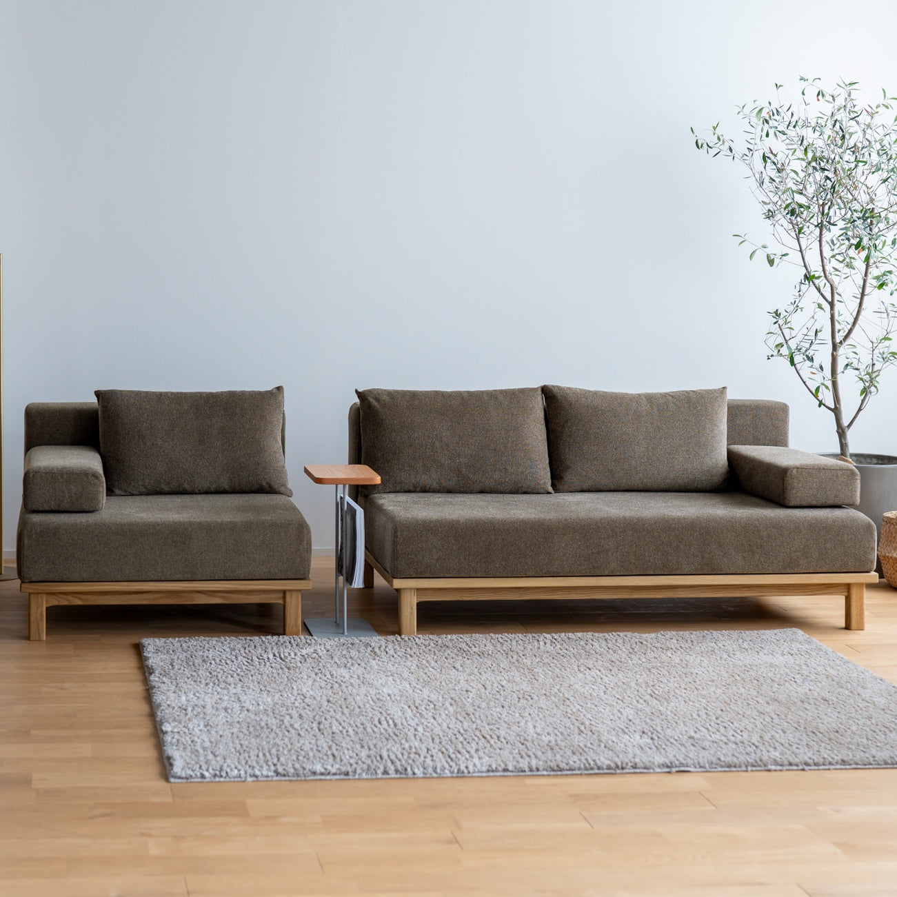 ナチュラルウッドのフレームと相まって、北欧系やナチュラルモダンな空間にもよく馴染みます。ドライクリーニング可能なカバーリング仕様で清潔感もキープできます。