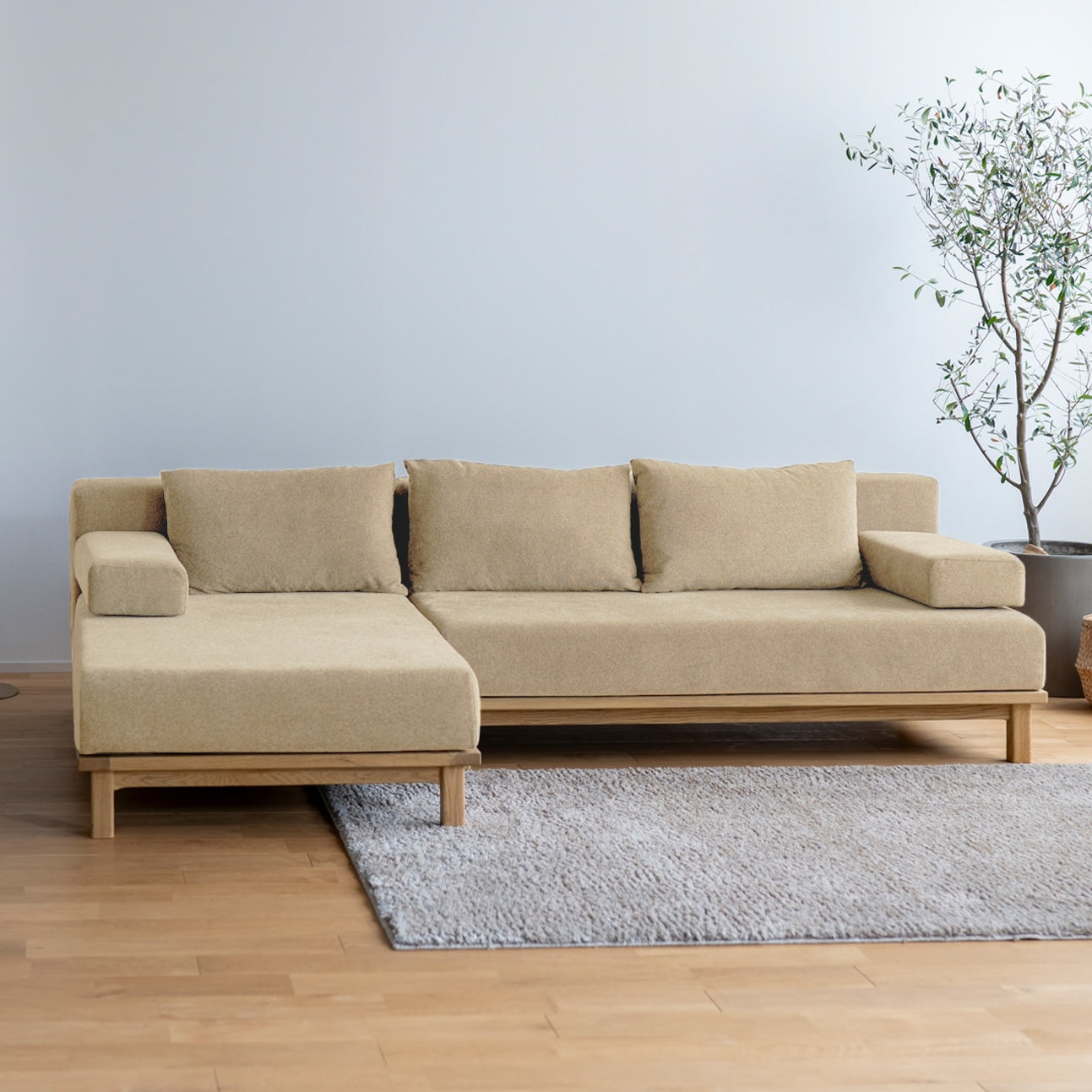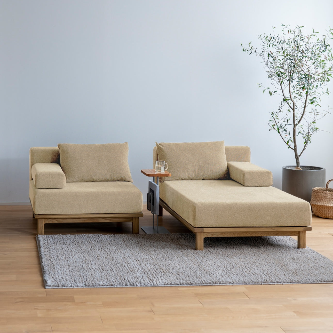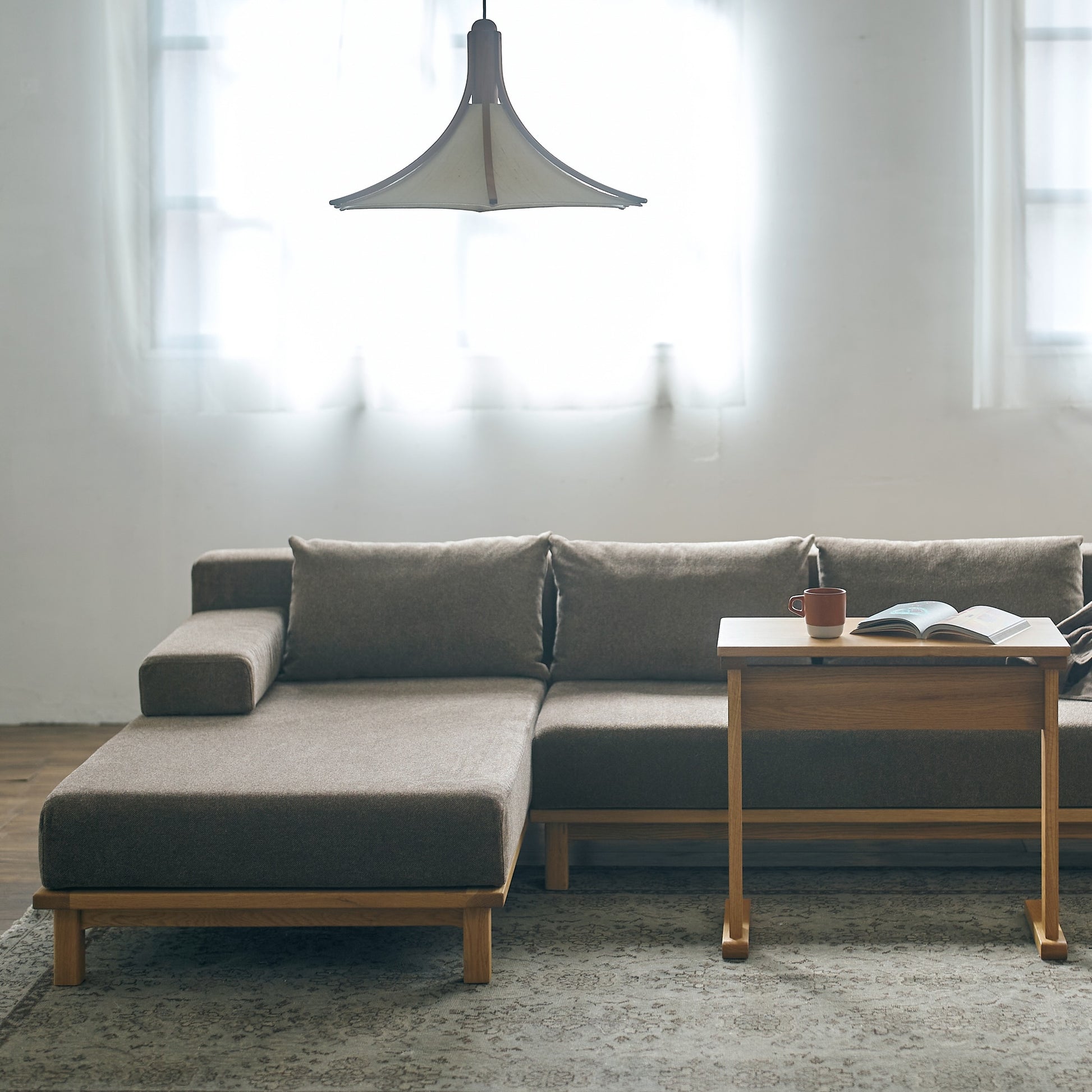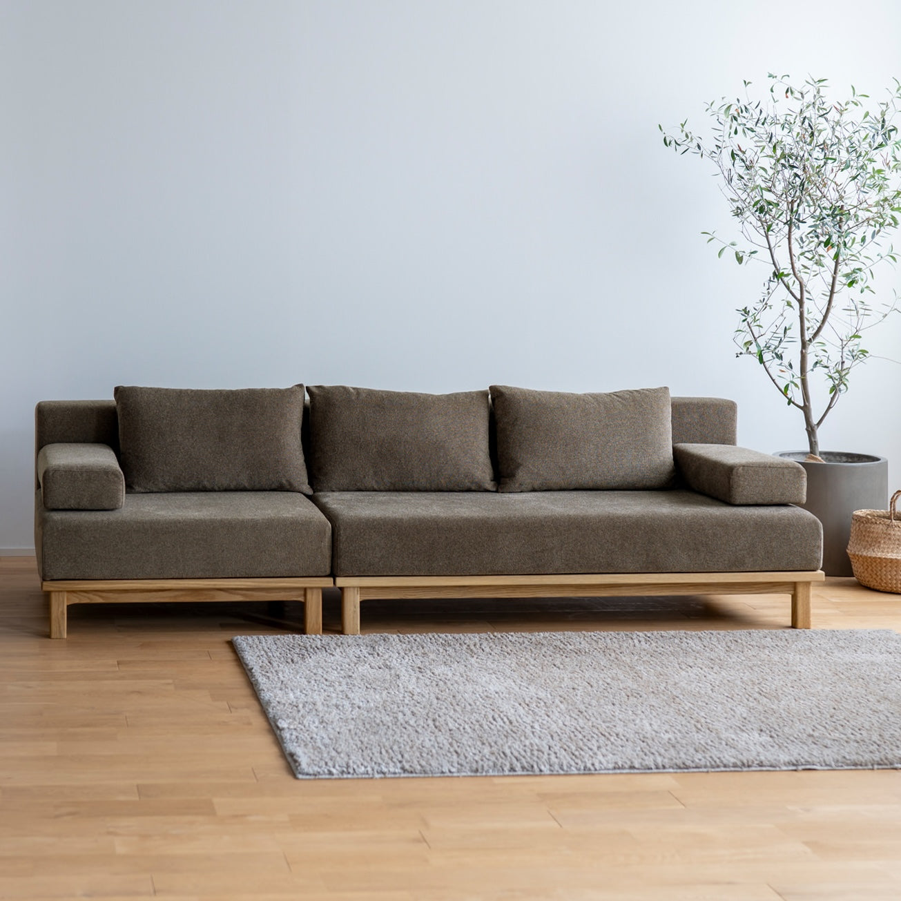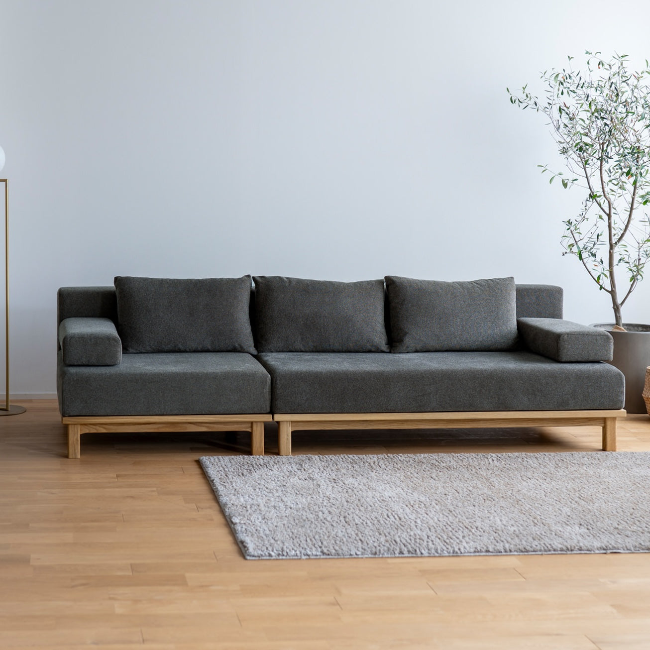 ナチュラルウッドのフレームと相まって、北欧系やナチュラルモダンな空間にもよく馴染みます。ドライクリーニング可能なカバーリング仕様で清潔感もキープできます。