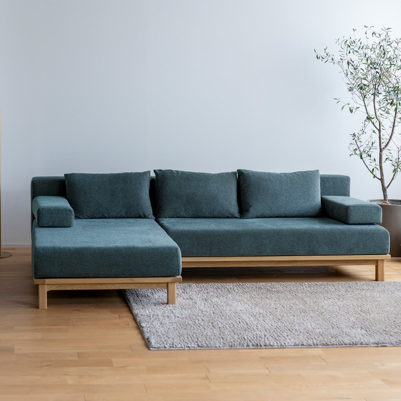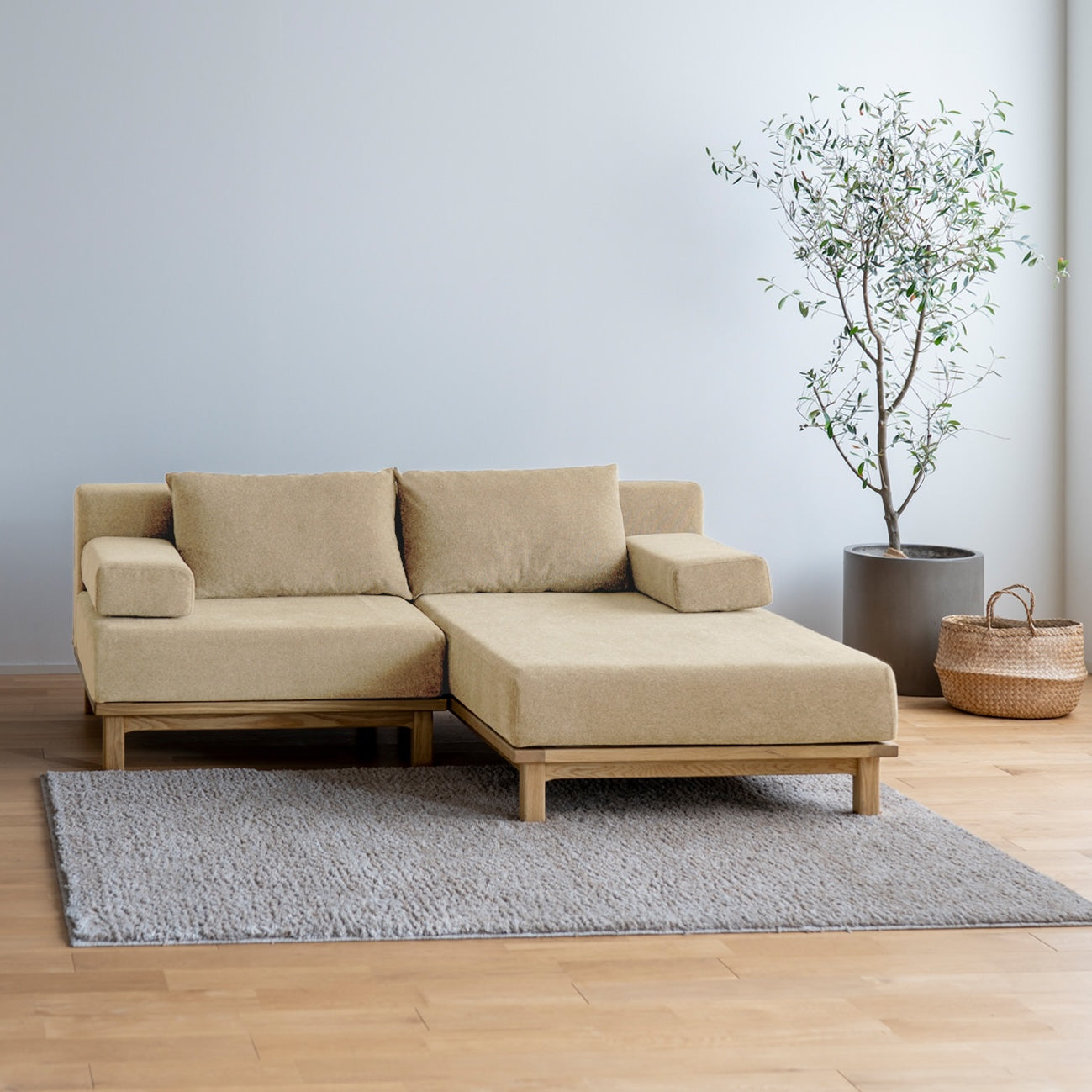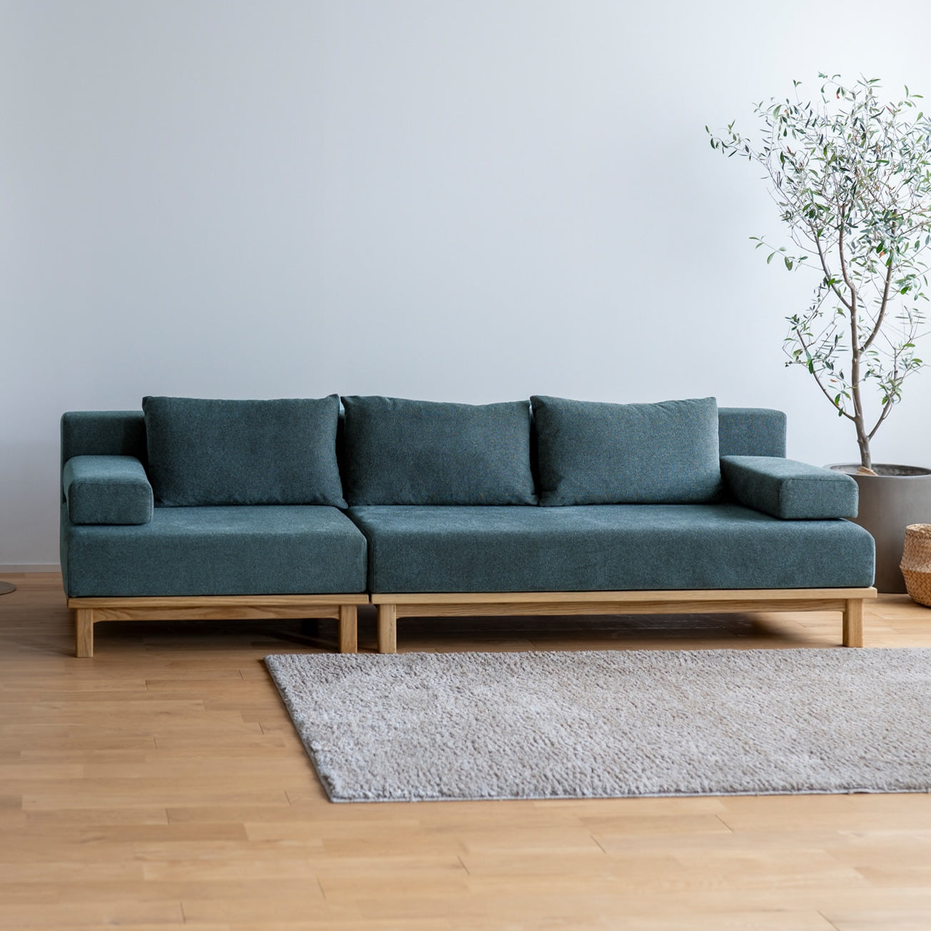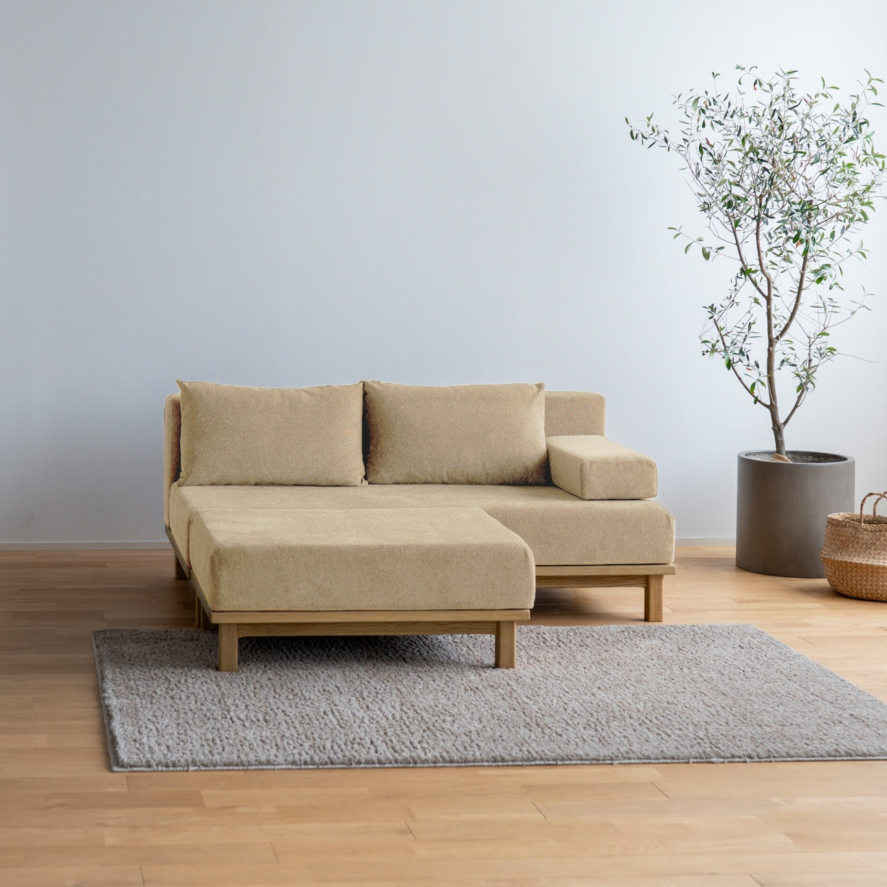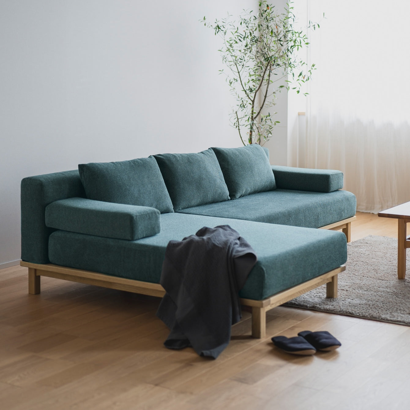ナチュラルウッドのフレームと相まって、北欧系やナチュラルモダンな空間にもよく馴染みます。ドライクリーニング可能なカバーリング仕様で清潔感もキープできます。