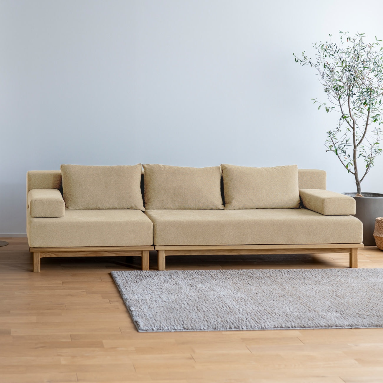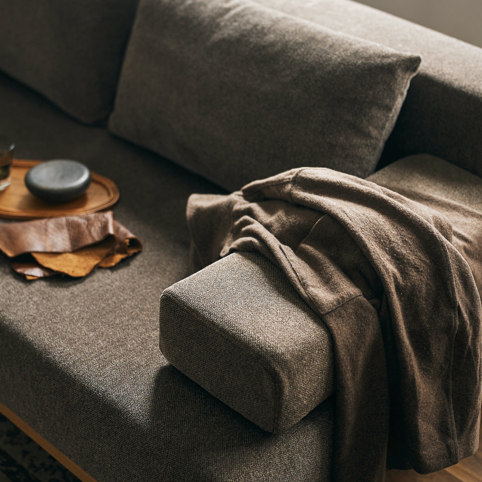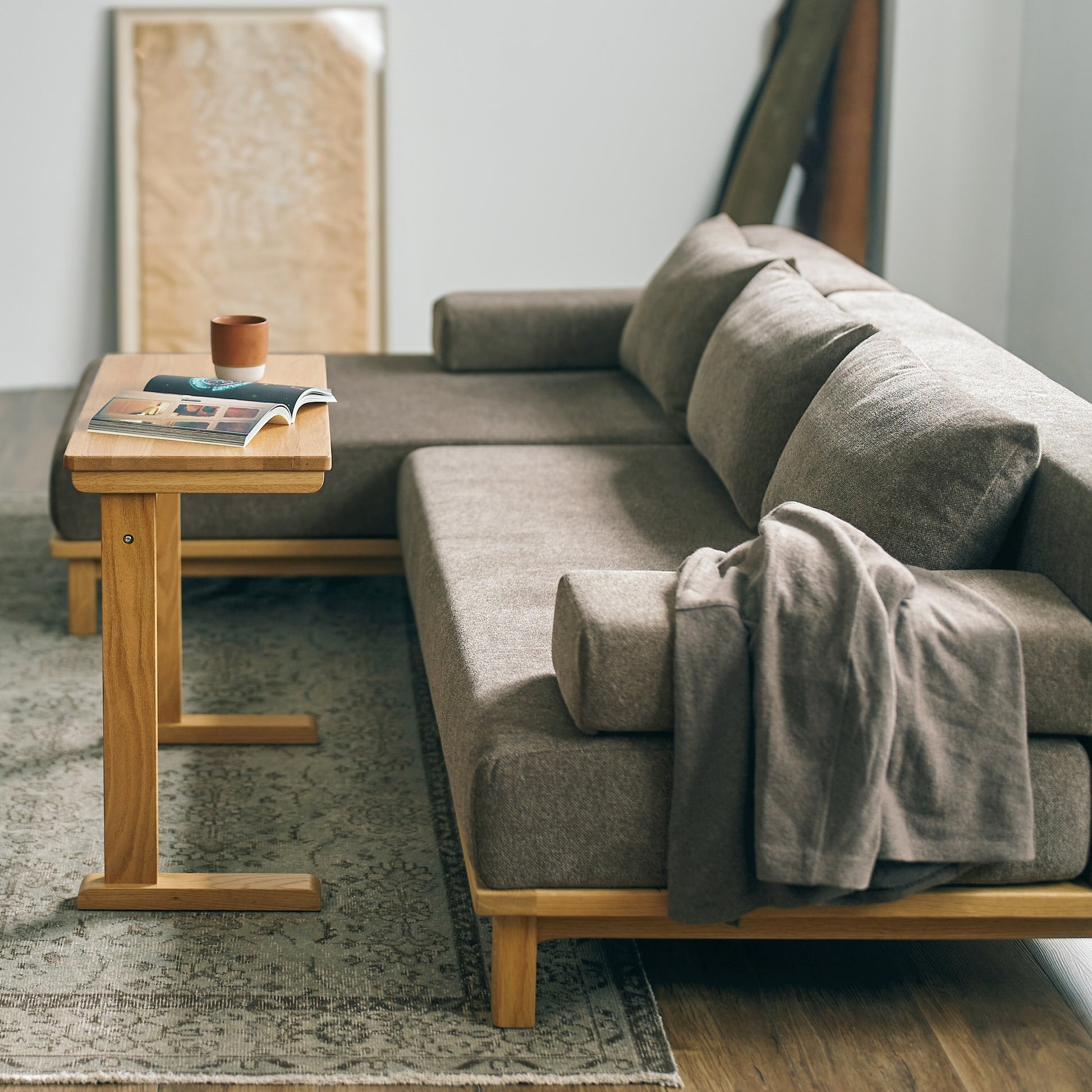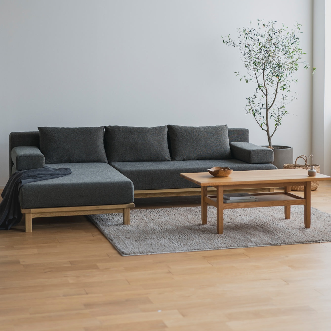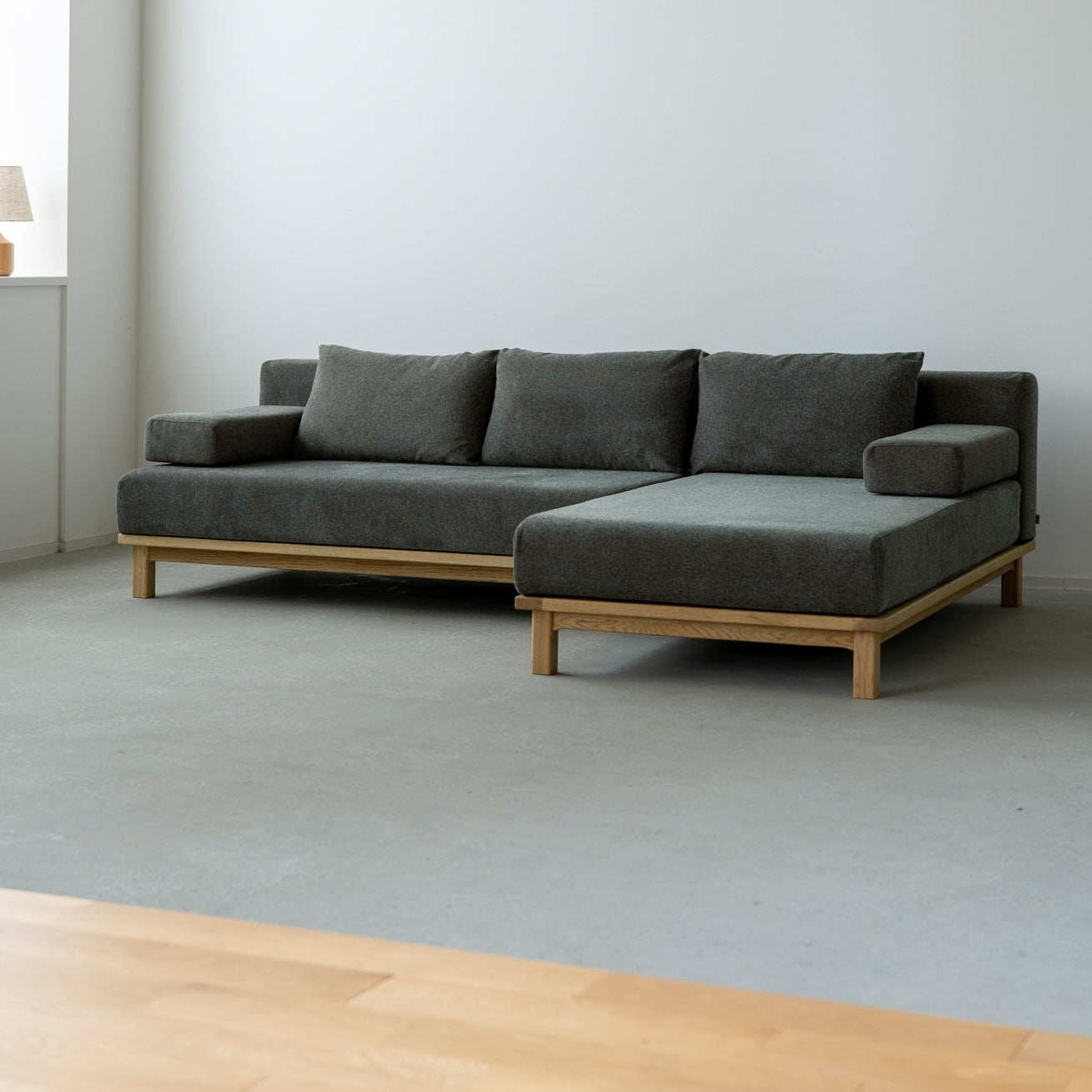ナチュラルウッドのフレームと相まって、北欧系やナチュラルモダンな空間にもよく馴染みます。ドライクリーニング可能なカバーリング仕様で清潔感もキープできます。
