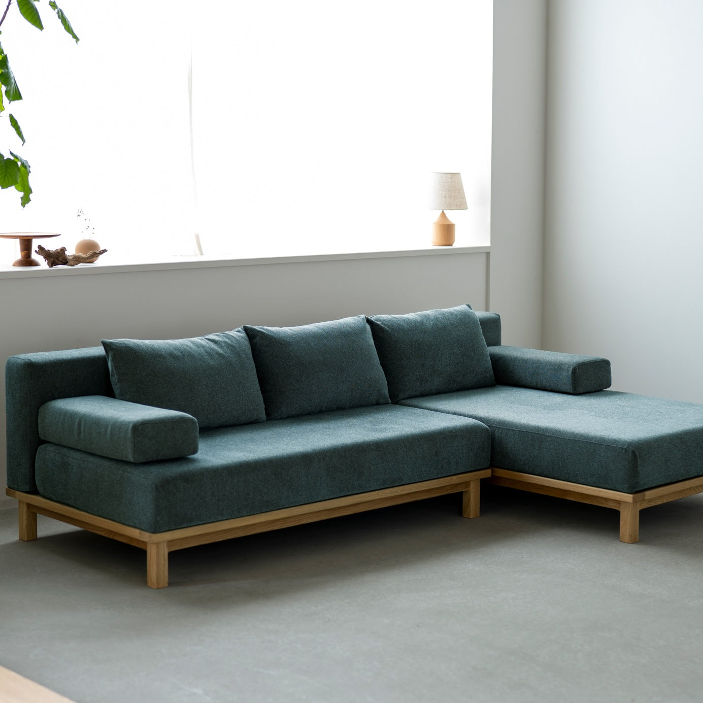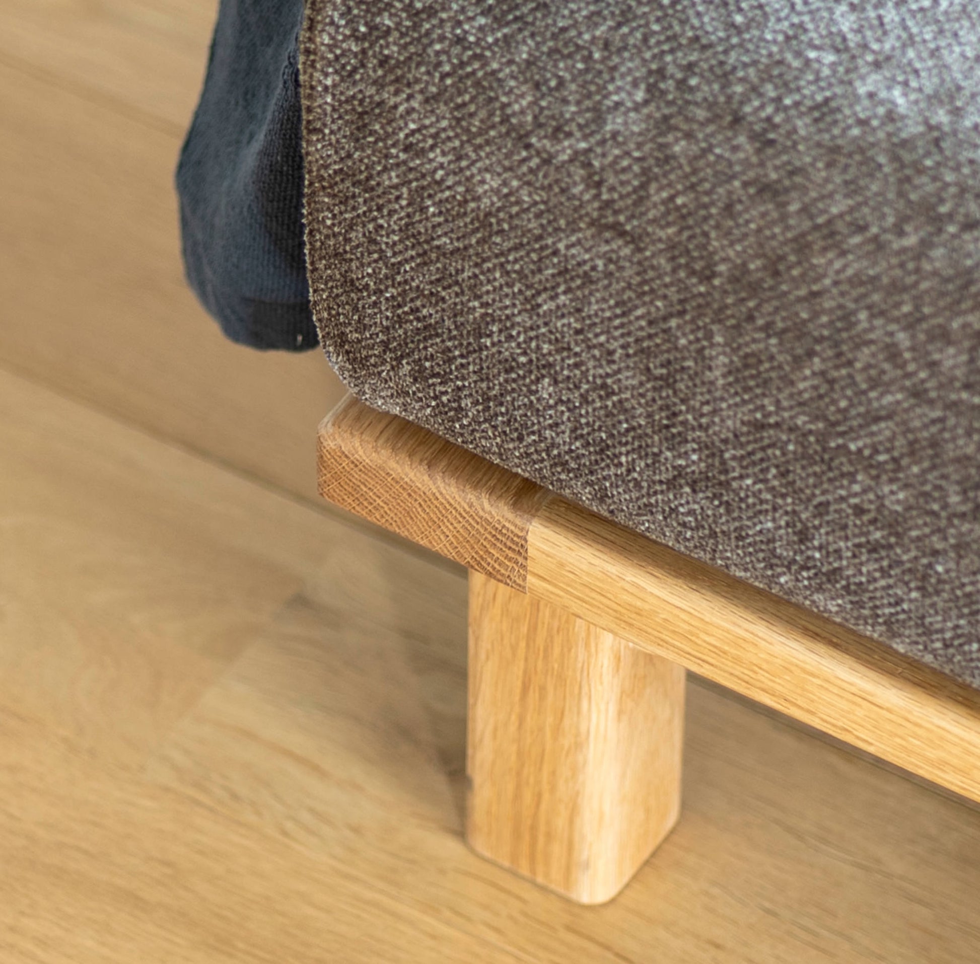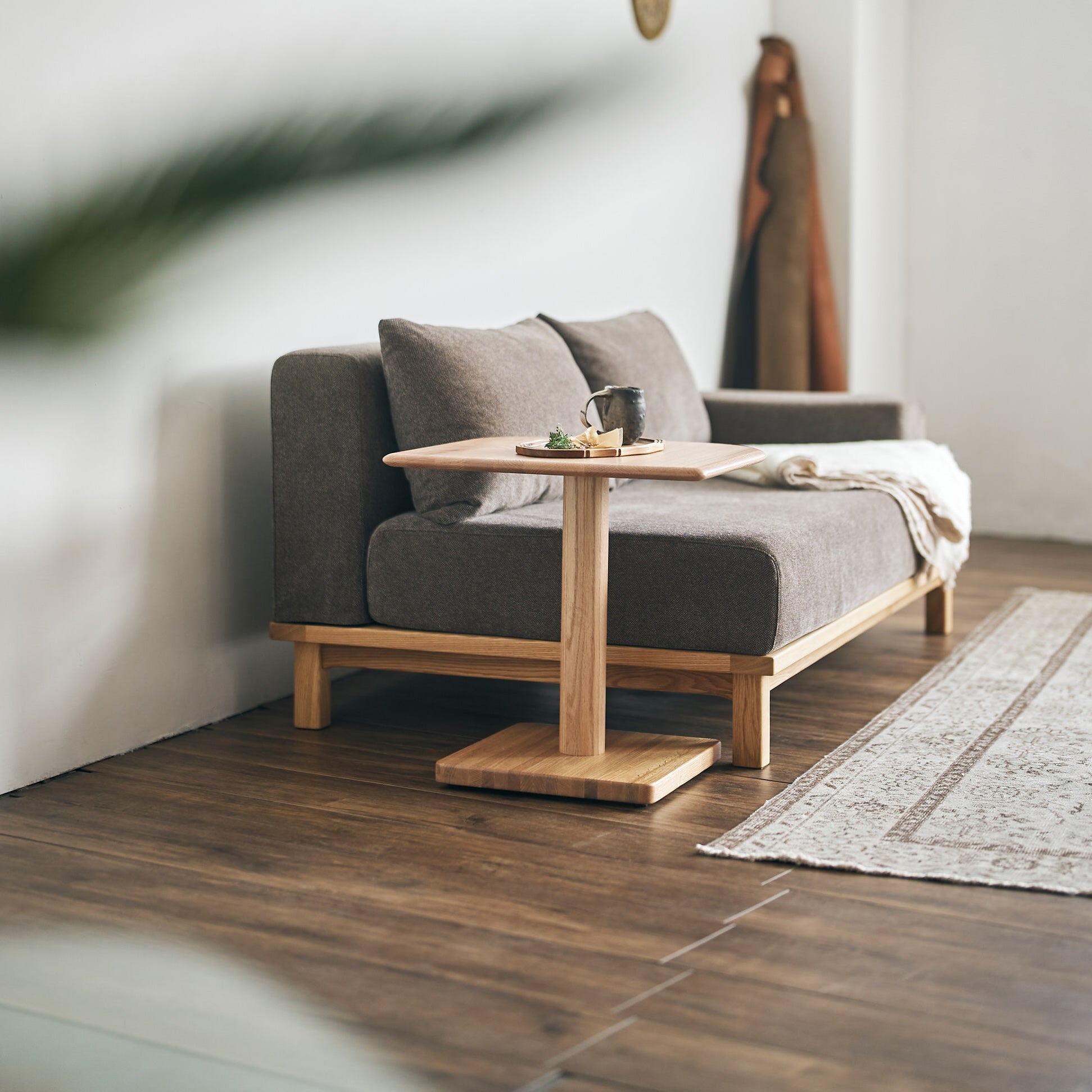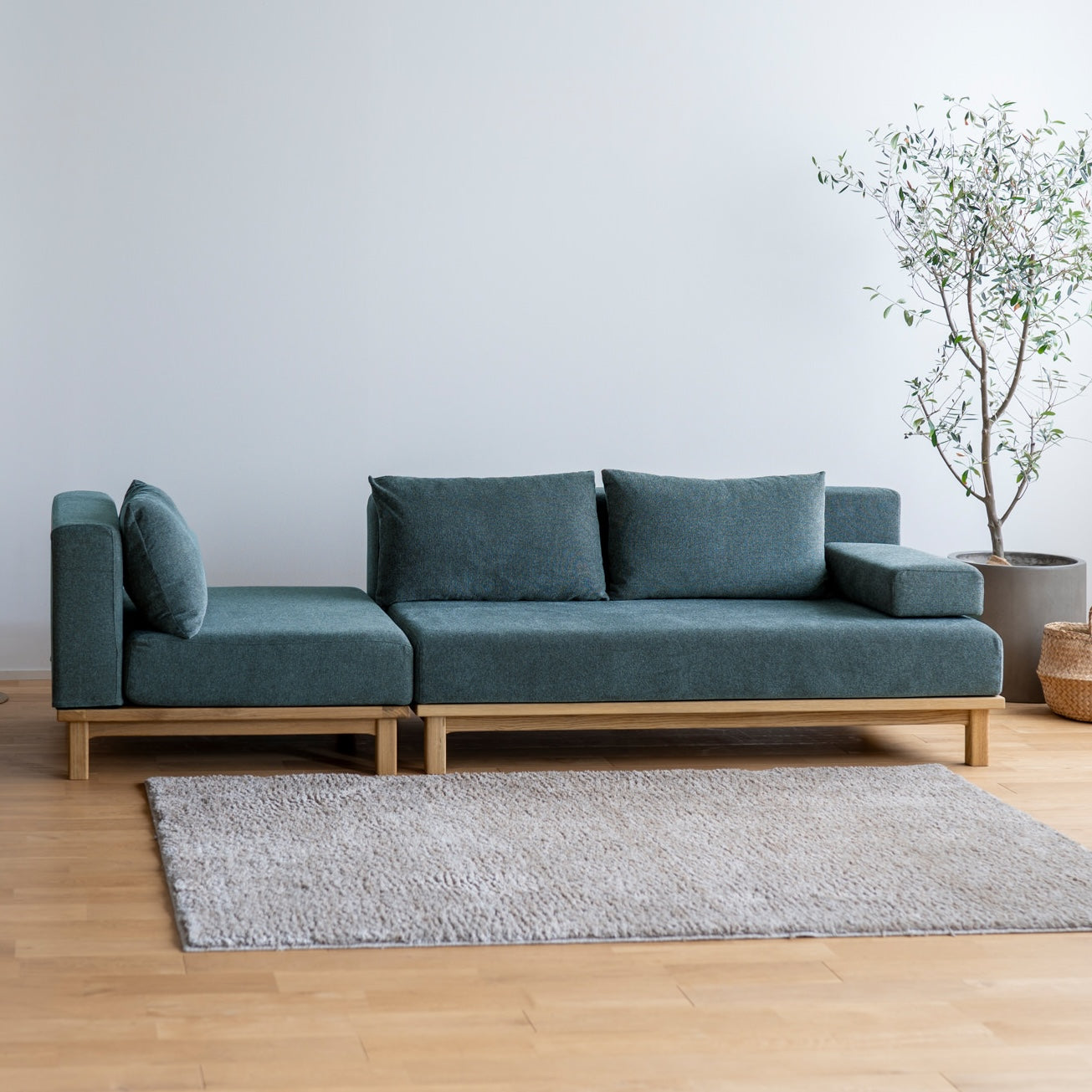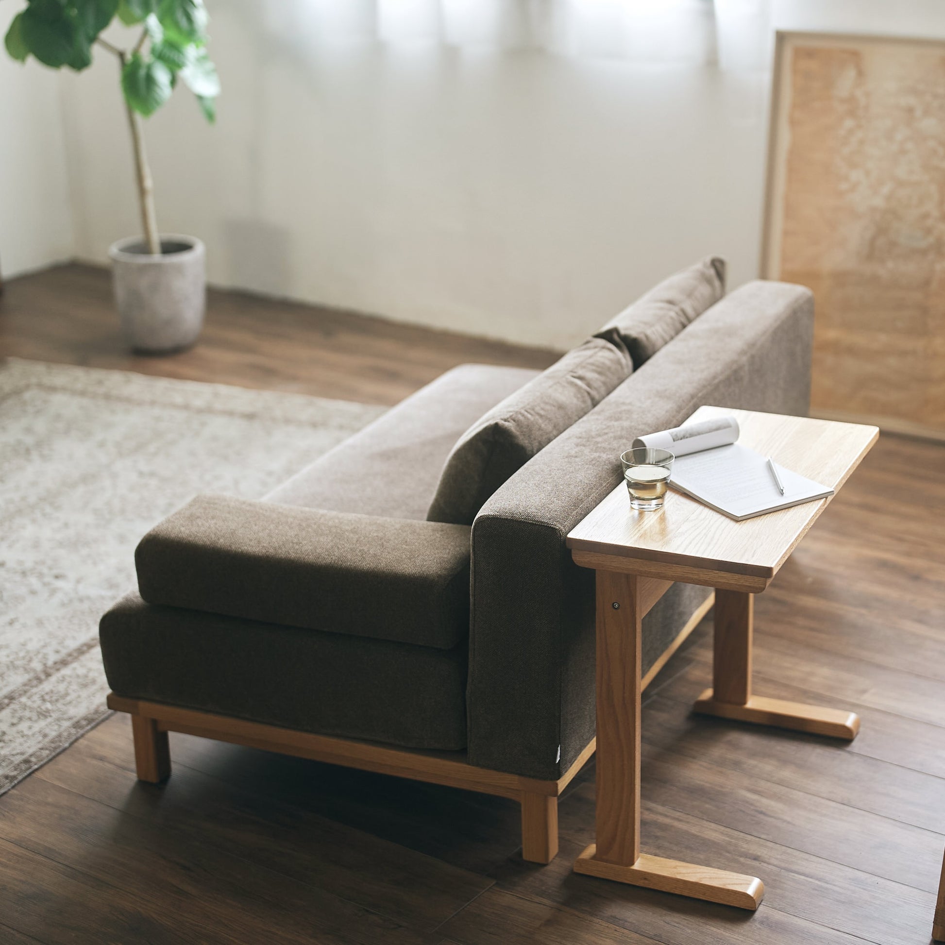 ナチュラルウッドのフレームと相まって、北欧系やナチュラルモダンな空間にもよく馴染みます。ドライクリーニング可能なカバーリング仕様で清潔感もキープできます。