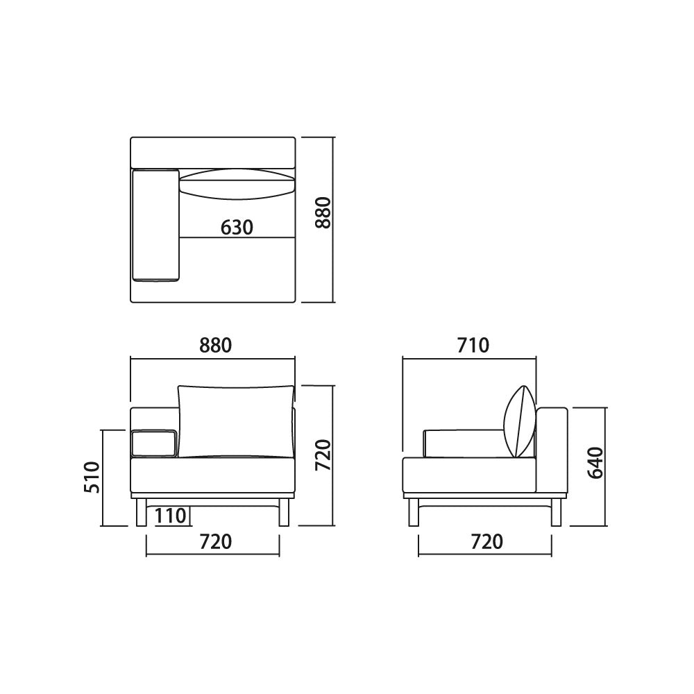 サイズ ・1人掛け 幅約88cm×奥行き約88cm×高さ約72cm×座高約36cm×肘高約51cm   ・ワイド 幅約152cm×奥行き約88cm×高さ約72cm×座高約36cm×肘高約51cm   ・ロング 幅約88cm×奥行き約152cm×高さ約72cm×座高約36cm×肘高約51cm