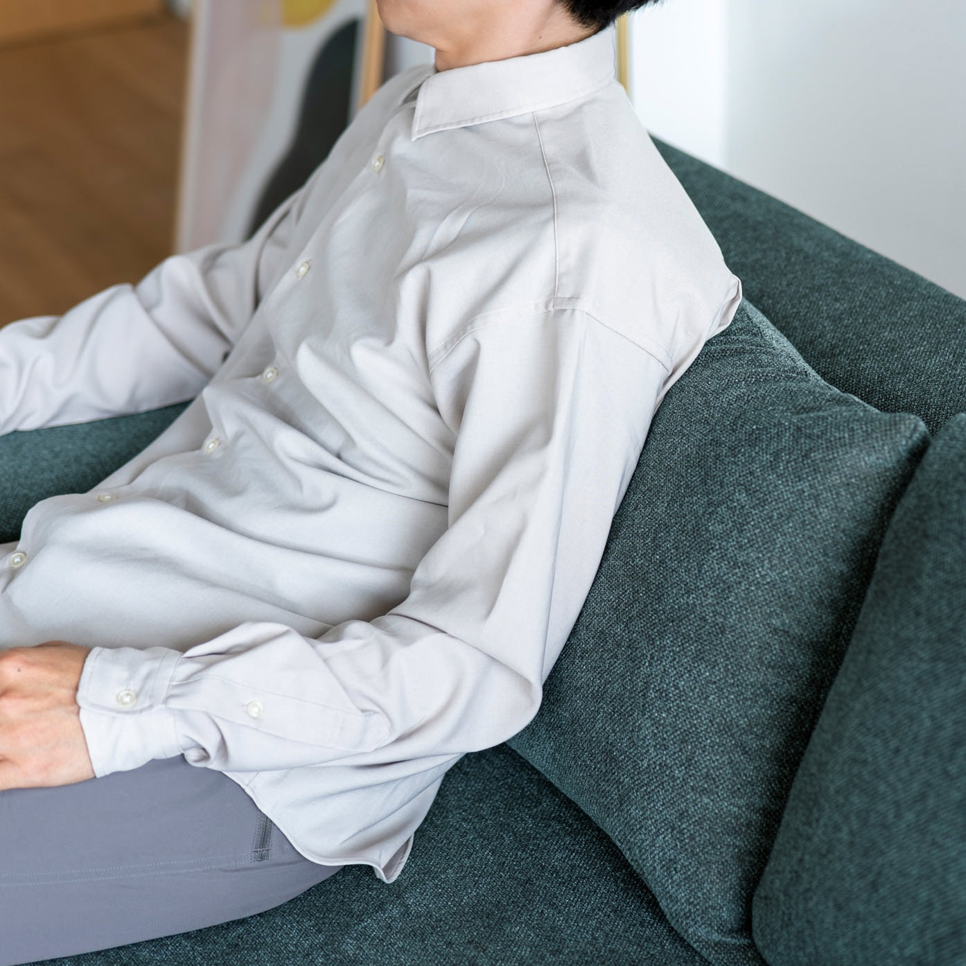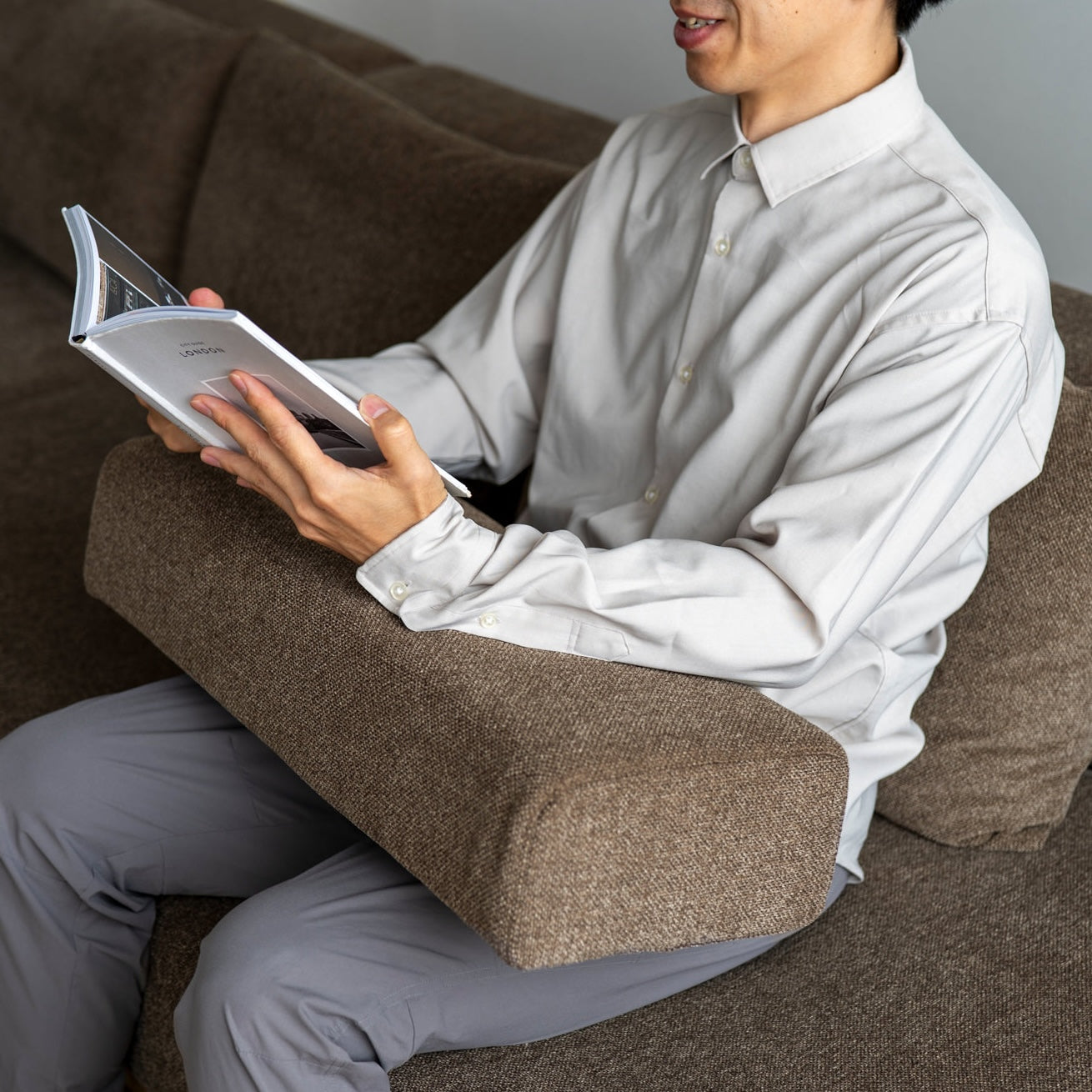 各ユニットには背クッション・肘クッションが付属しており、好みに合わせて配置できるため、“ちょうどいい”フィット感が得られます。