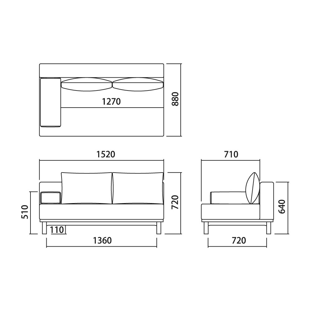 幅約88cm×奥行き約152cm×高さ約72cm×座高約36cm×肘高約51cm