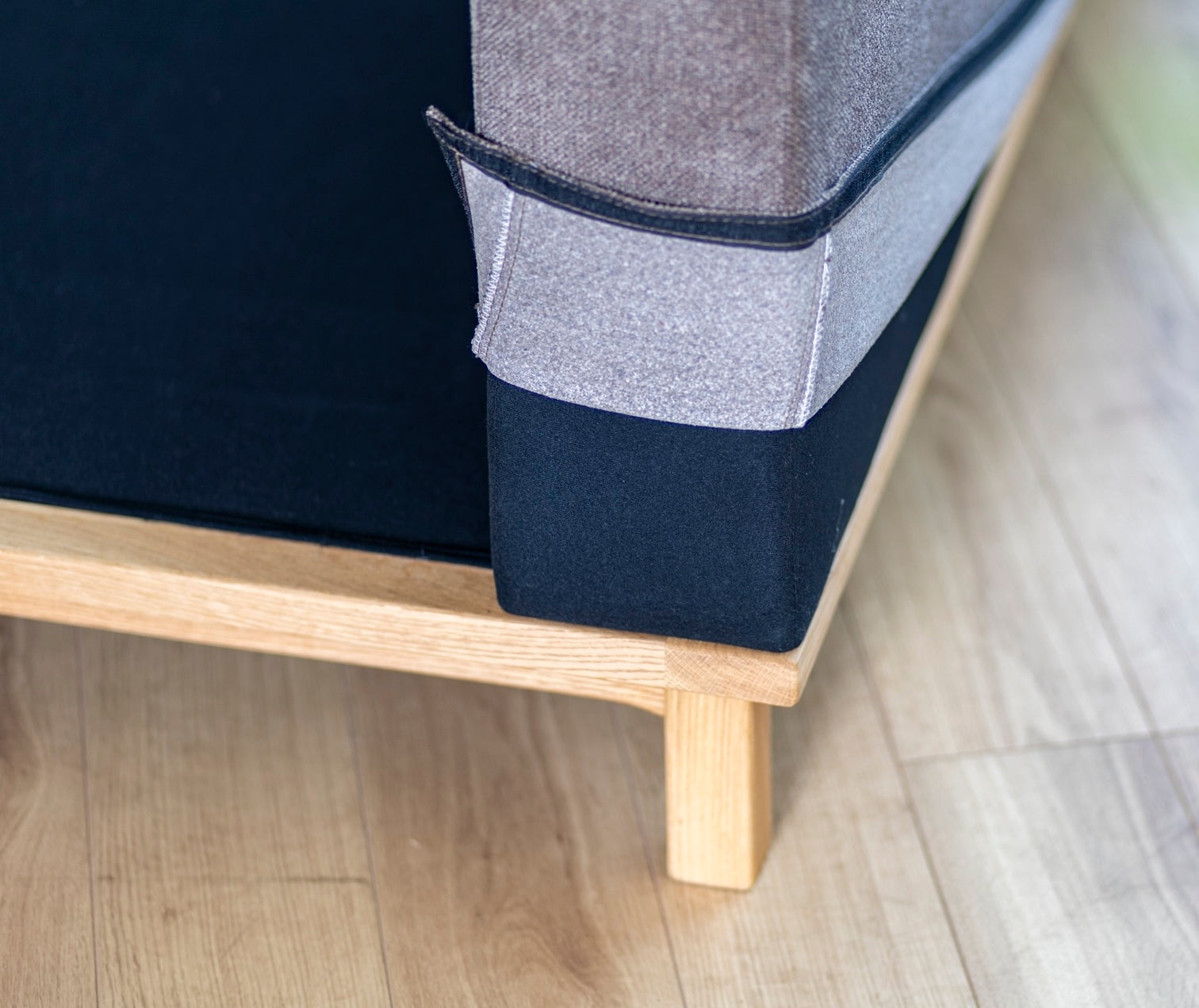 また、座面下のフレームはすっきりとした木製デザインで、視覚的にも圧迫感が少なく、お部屋を広く見せてくれる効果も。