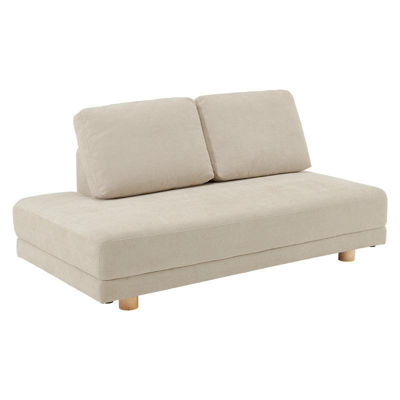 座面が広く、身体をしっかり預けられるフラットタイプのソファです。リビングや客間など、室内の中心に置いても圧迫感が出にくく、空間に馴染みやすい設計です。脚を付けた状態でも、外してロータイプとしても使えます。