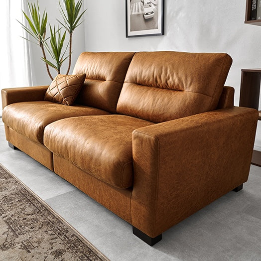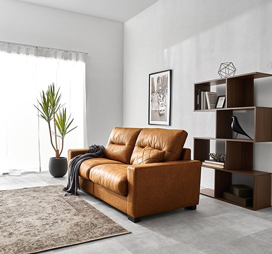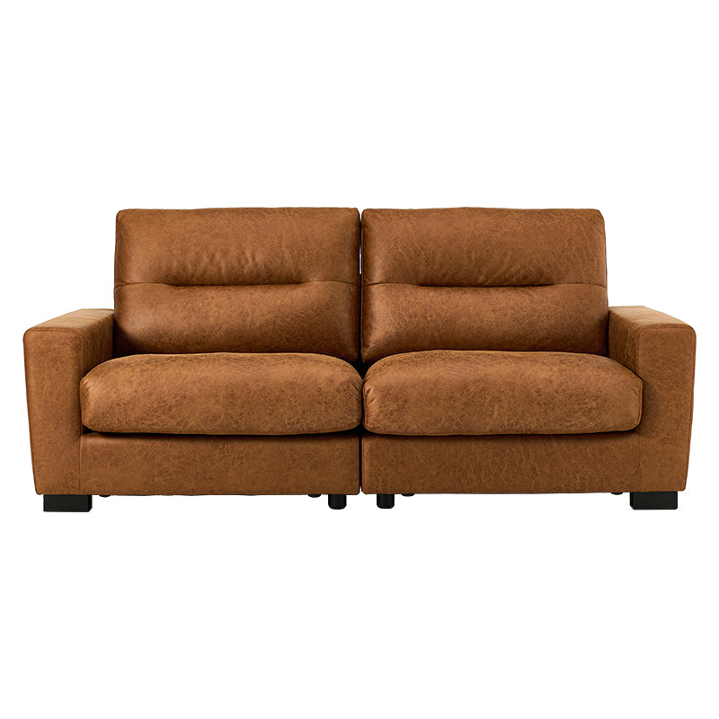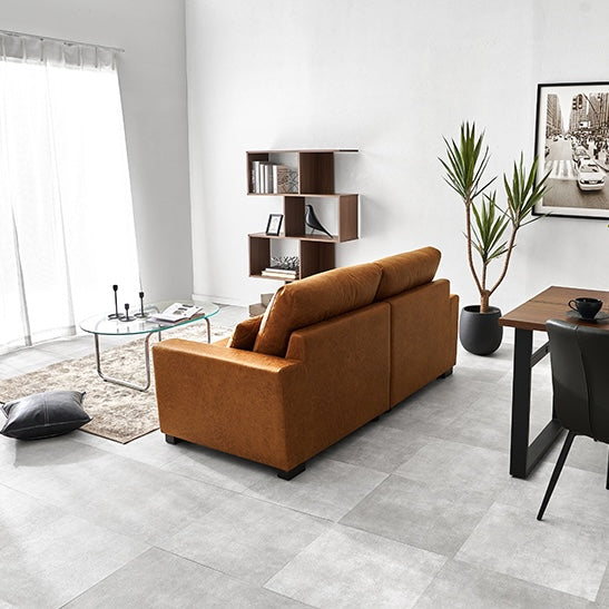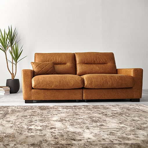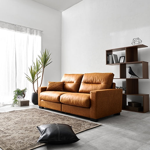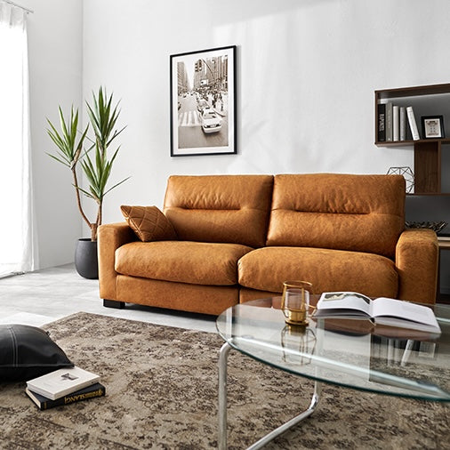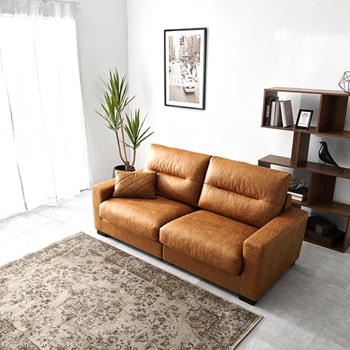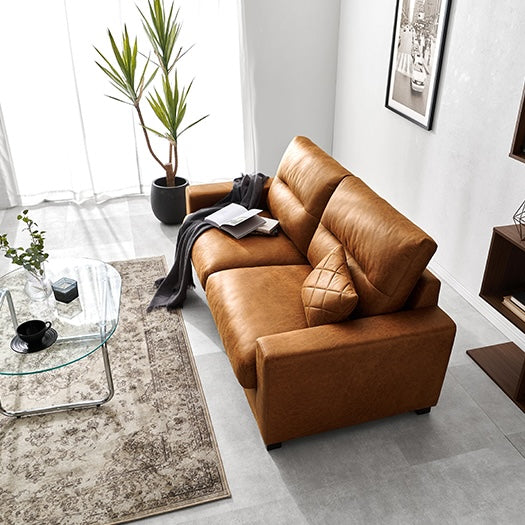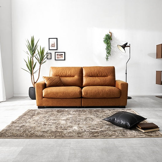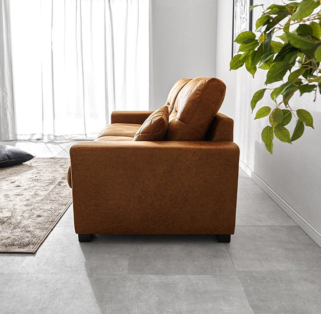 幅180cmのワイドサイズで、ゆったり座れる設計です。厚みのある座面と背もたれで、リビングや客間に置いても存在感があります。フェイクレザー素材を使用しており、日常使いしやすい点も特徴です。