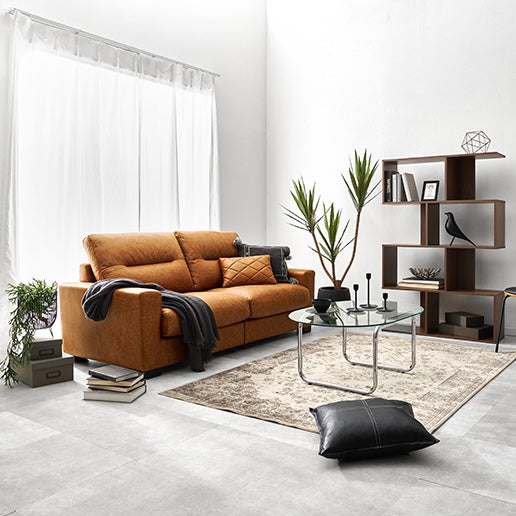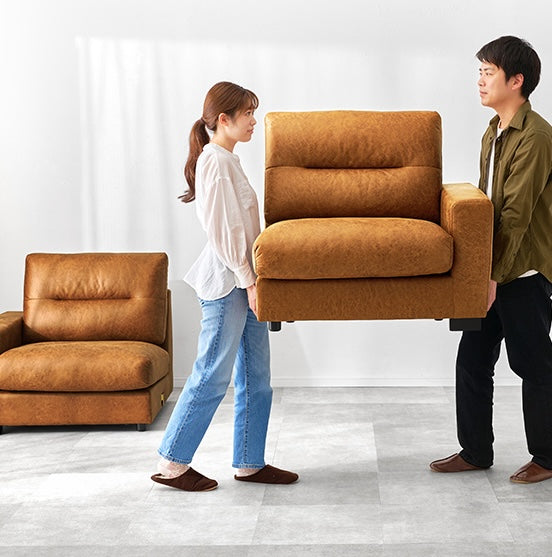 座ると身体を包み込むように支えられ、家族で並んで過ごす時間や、読書、休憩の場として使えます。二人で座って会話をしたり、リラックスして過ごすのにも向いています。分割式のため、セパレートして対面に配置することも可能です。