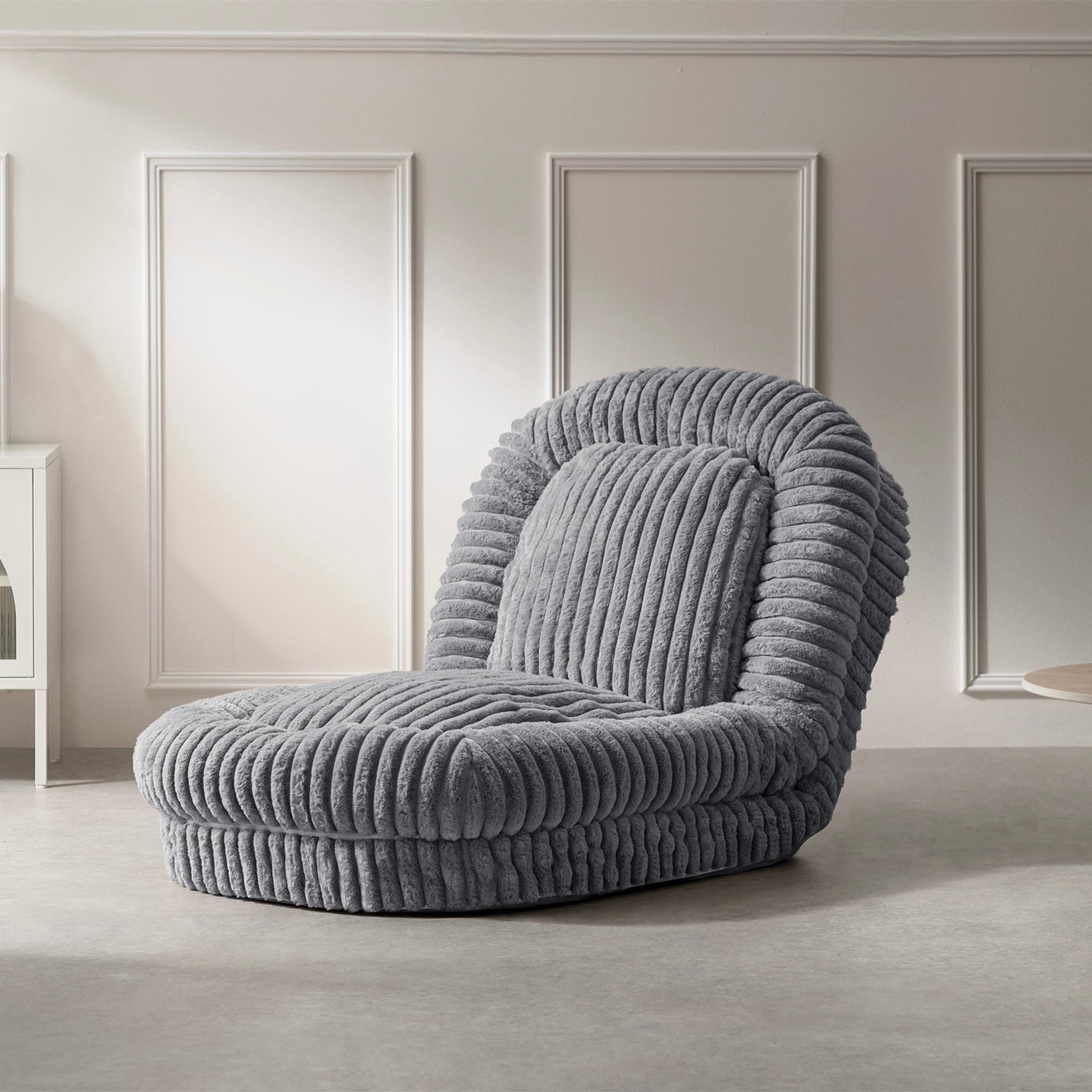 マイクロファイバー生地とふかふかクッションが全身を包み込み、思わずそのまま眠ってしまいそうな心地よさです。カラーはホワイト・グレージュ・グレーの3色。お部屋になじみやすいニュアンスカラーで、どんな空間にも自然と馴染みます。